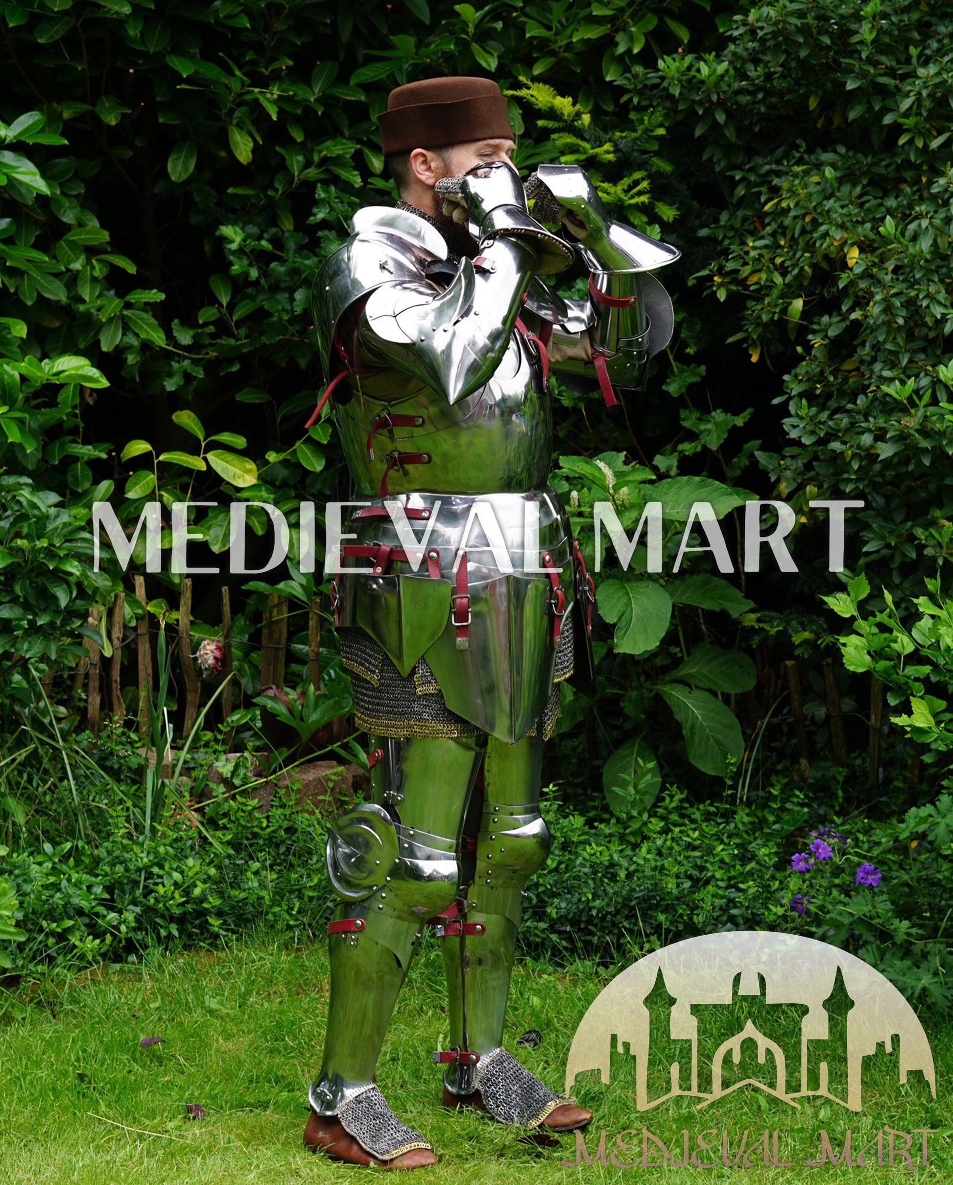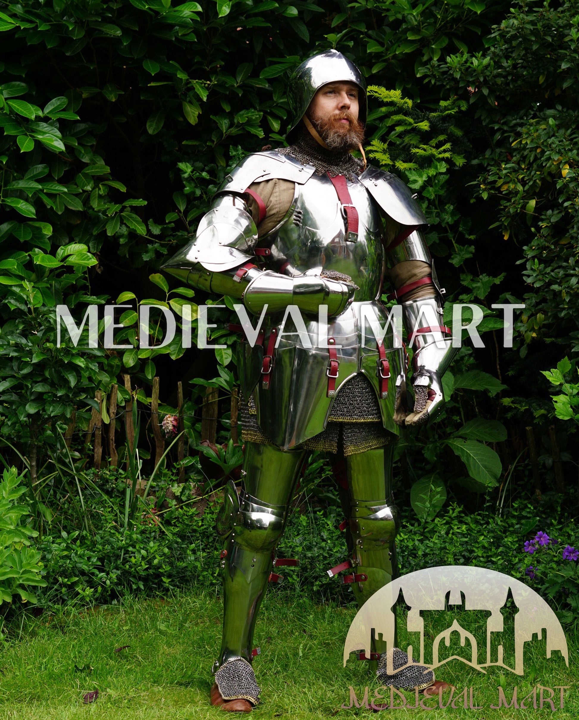 Découvrez l’armure de parade gothique du XVe siècle MEDIEVALMART, une somptueuse armure complète conçue pour refléter l’excellence de l’artisanat de la fin du Moyen Âge et le prestige cérémoniel des chevaliers.