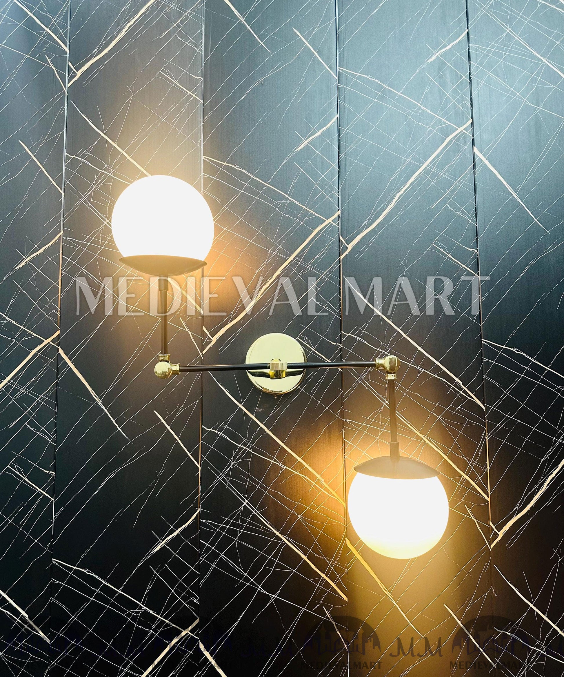 Chaque luminaire est méticuleusement fabriqué à la main en laiton massif, lui conférant un éclat luxueux et une durabilité à toute épreuve. Le design à double globe offre un éclairage doux et équilibré, idéal pour les salles de bain, les miroirs de coiffeuse ou les espaces de maquillage qui méritent une touche de luxe.