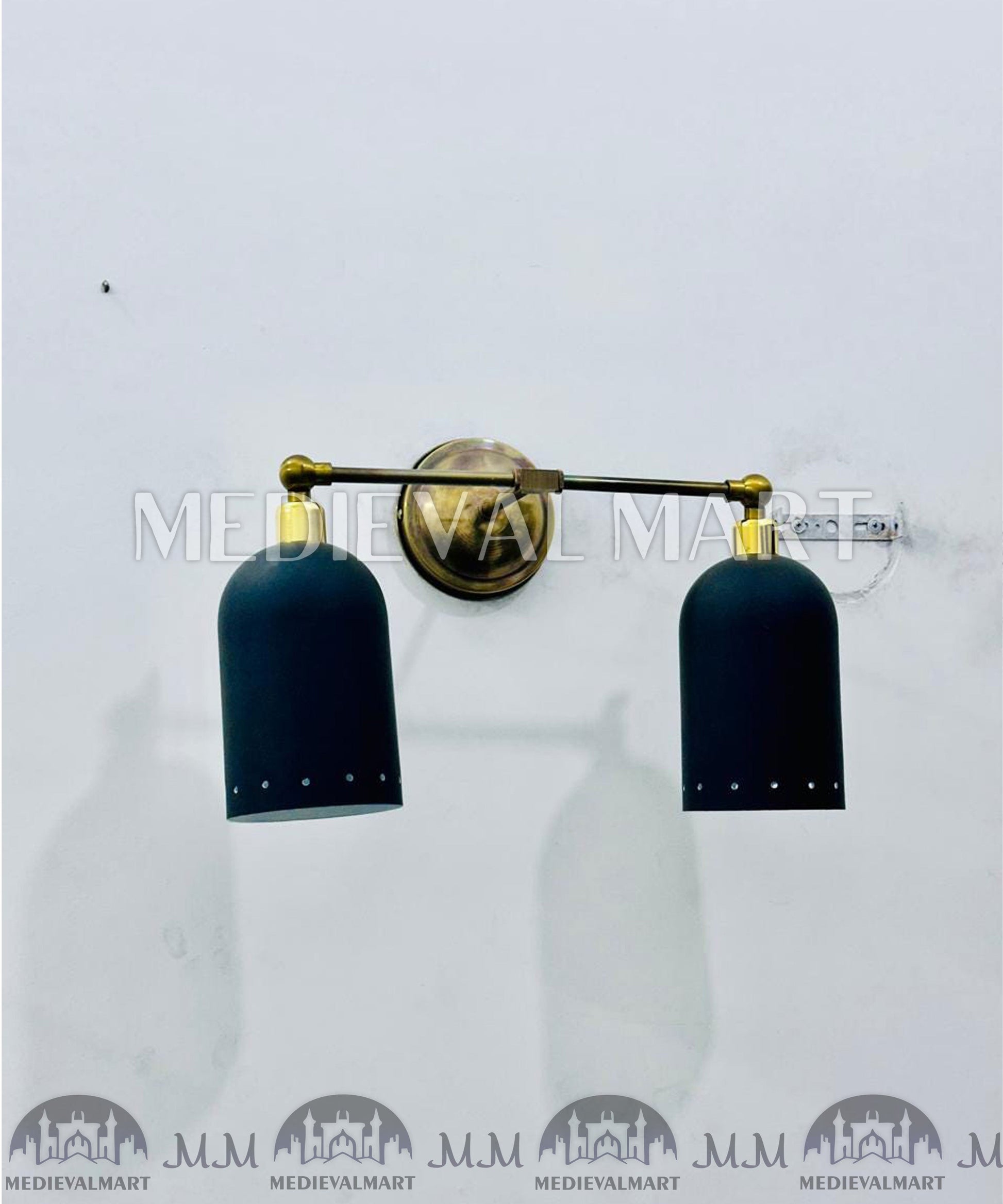 Apportez une élégance intemporelle à votre intérieur avec l’applique murale de coiffeuse en laiton sur mesure MEDIEVALMART, une superbe applique murale Moderne Mid-Century avec finition noir mat et laiton poli.