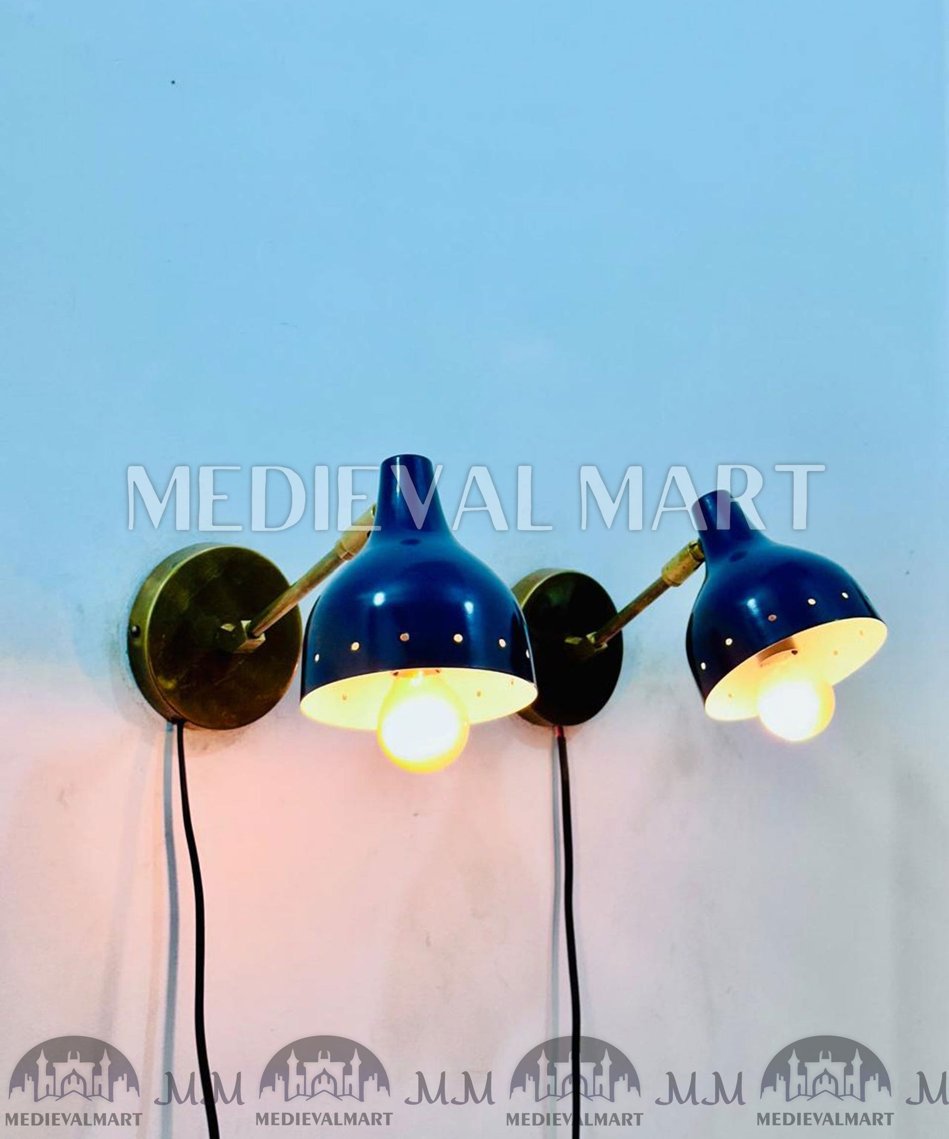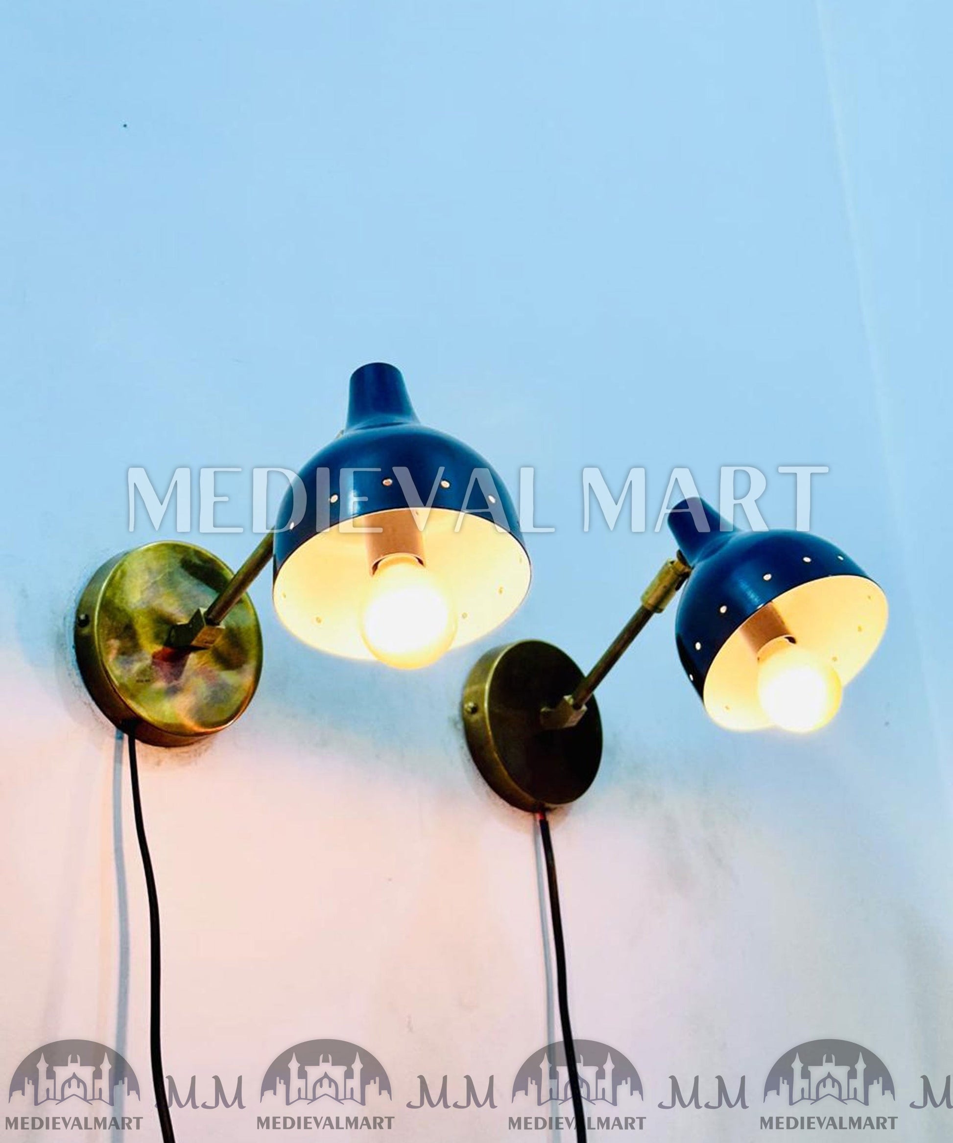 Fabriquée en laiton massif avec une finition bleu marine saisissante, chaque applique dispose d’un design réglable, vous permettant d’orienter la lumière exactement là où vous en avez besoin. Parfaites comme lampes de lecture de chevet, éclairages de coiffeuse, appliques de couloir ou accents de salon, elles offrent à la fois un éclairage pratique et un style intemporel.