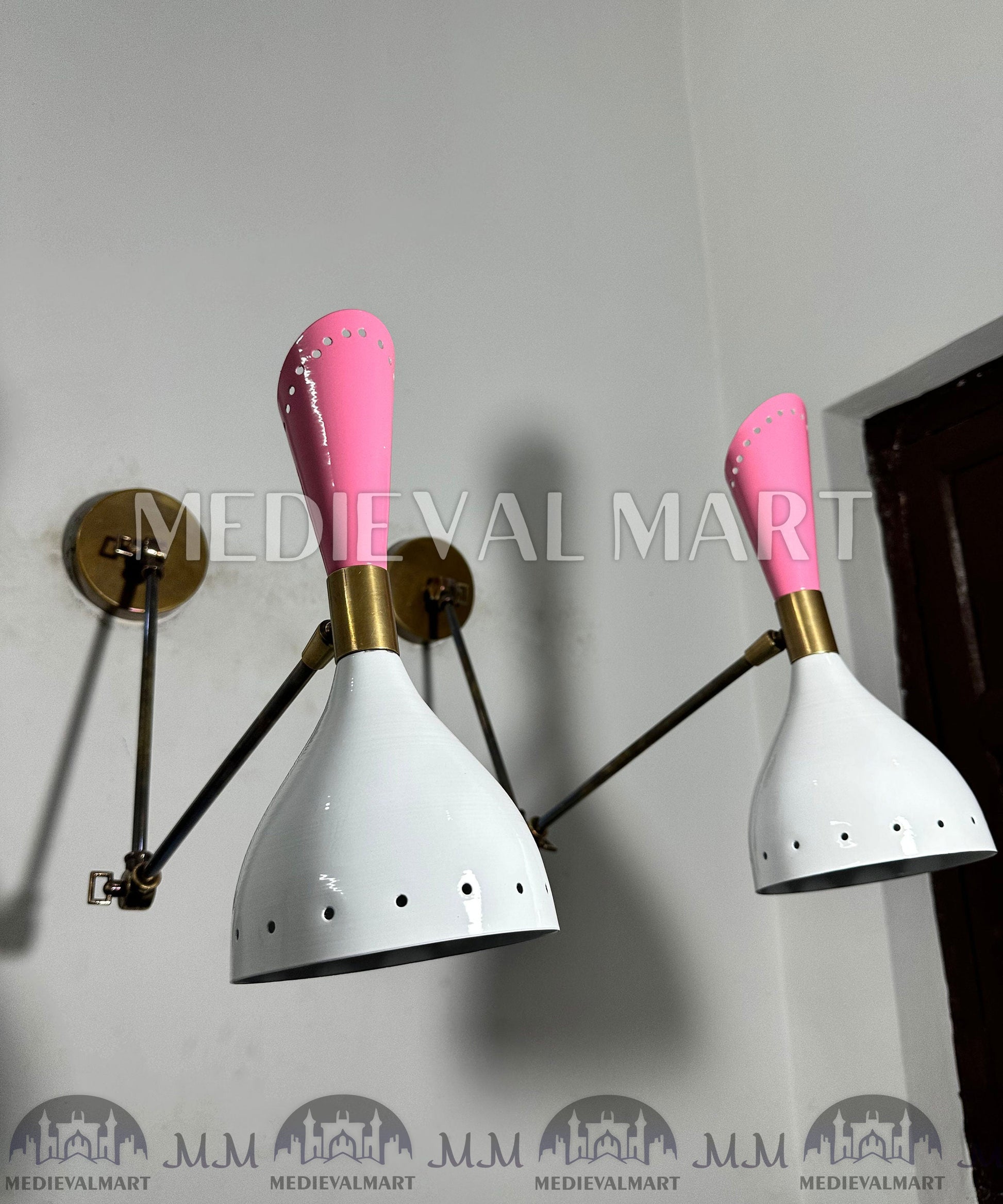 Ajoutez une touche de sophistication rétro à votre intérieur avec l’applique murale italienne en laiton MEDIEVALMART, un superbe luminaire Moderne Mid-Century doté d’une finition bleu brillant éclatante.