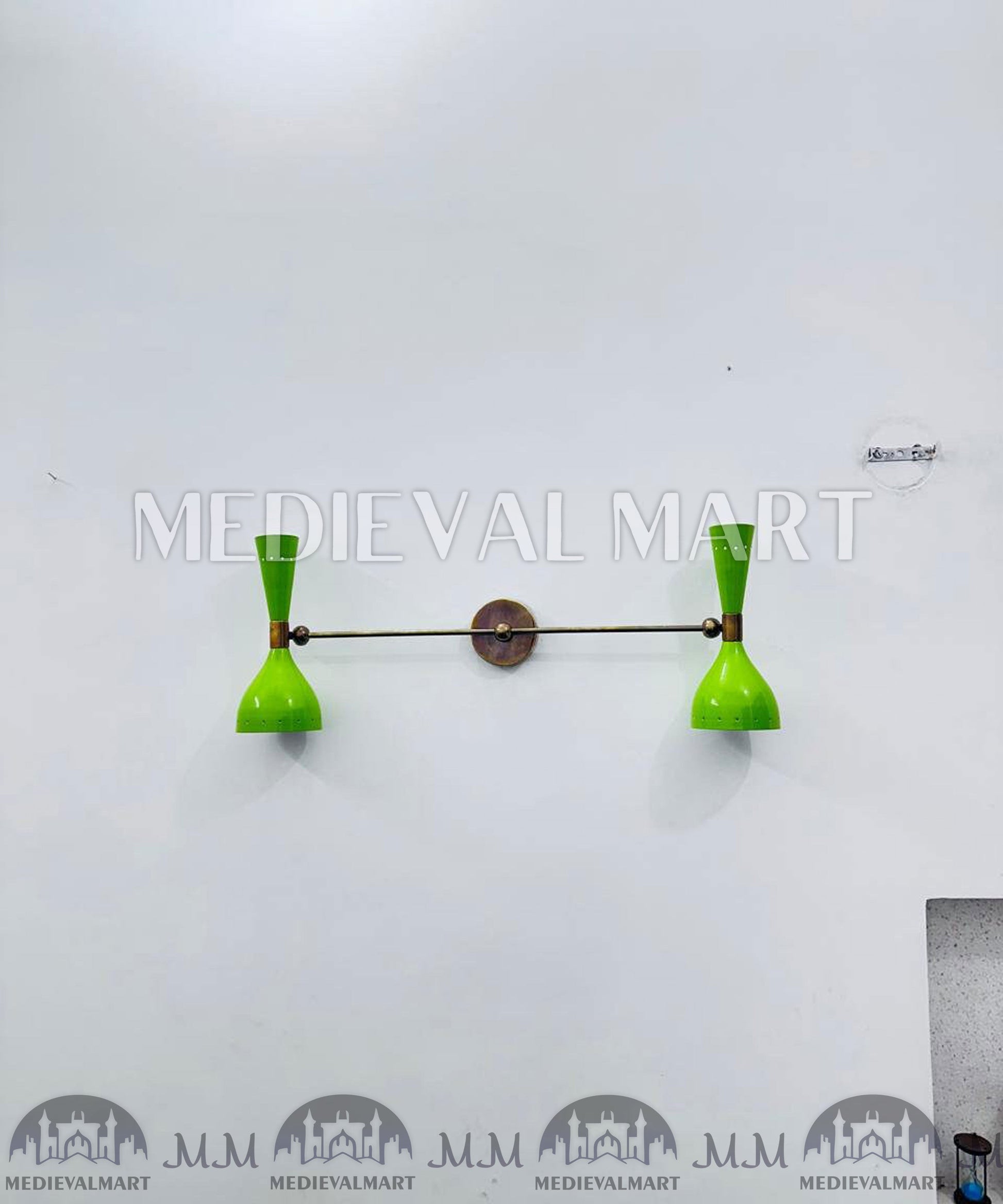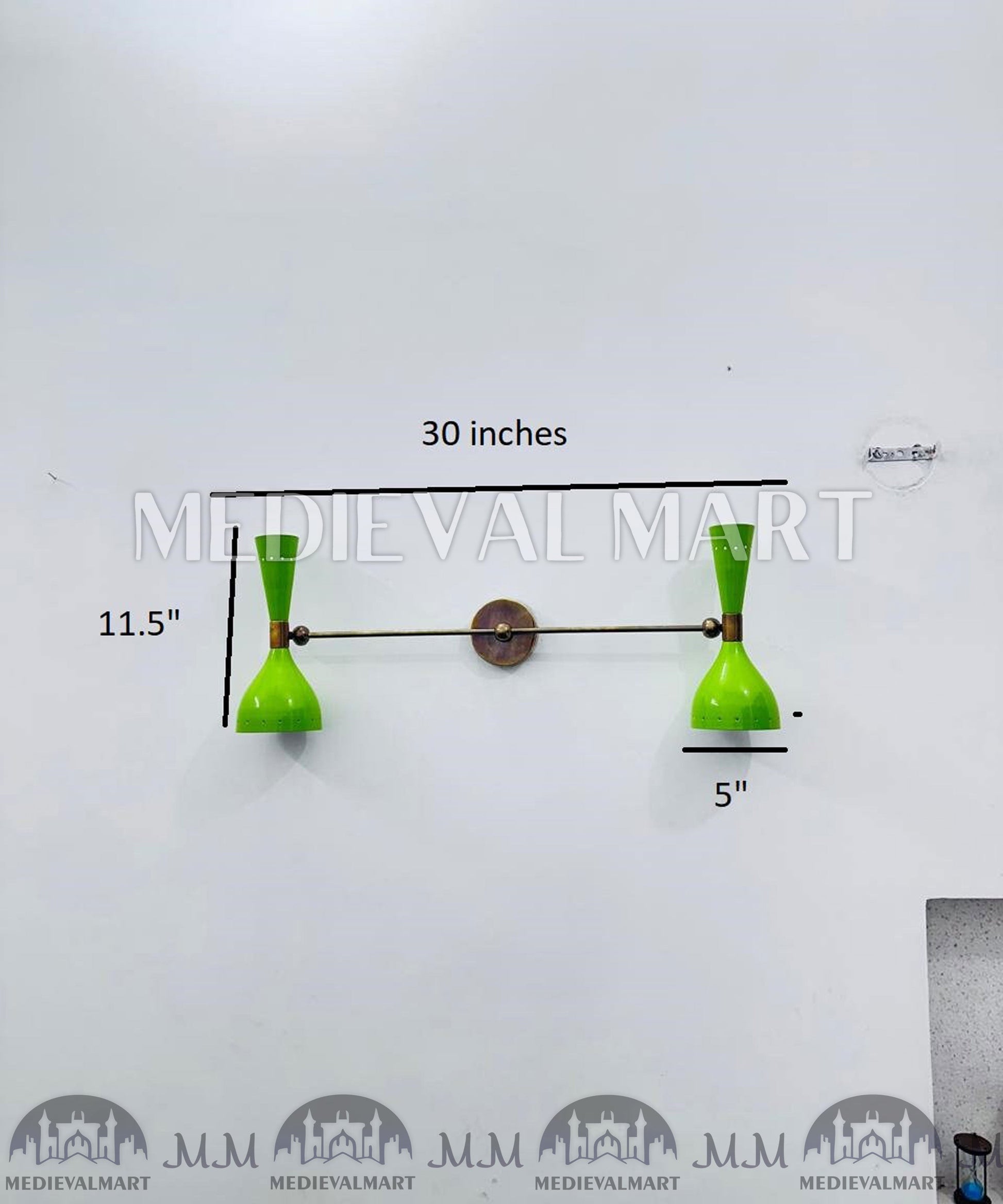 Apportez un charme intemporel à votre intérieur avec l’Applique Murale Diabolo Vert Olive MEDIEVALMART, un luminaire en laiton italien mid-century conçu pour capturer la sophistication du décor des années 1950. Cette applique murale fabriquée à la main présente le design italien emblématique Diabolo à double cône, reconnu pour sa silhouette élégante et sa lumière d’ambiance.