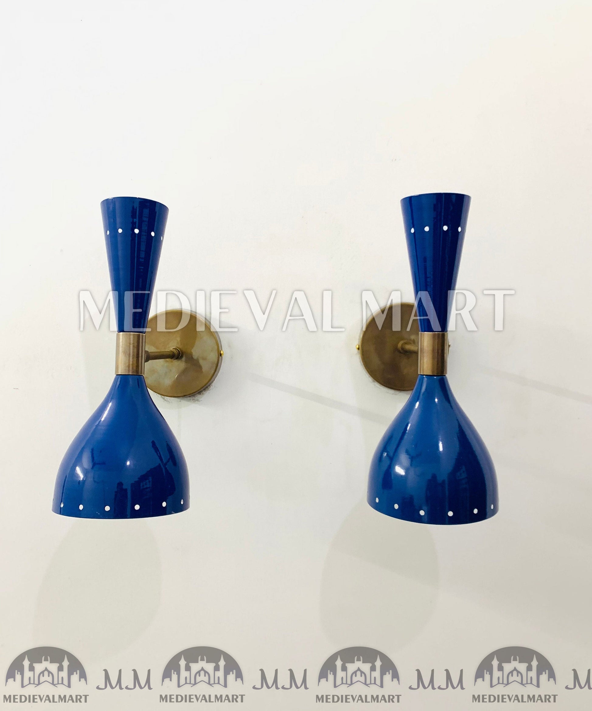 Ajoutez une touche de sophistication rétro à votre intérieur avec l’applique murale italienne en laiton MEDIEVALMART, un superbe luminaire moderne mid-century doté d’une finition bleu brillant éclatante.