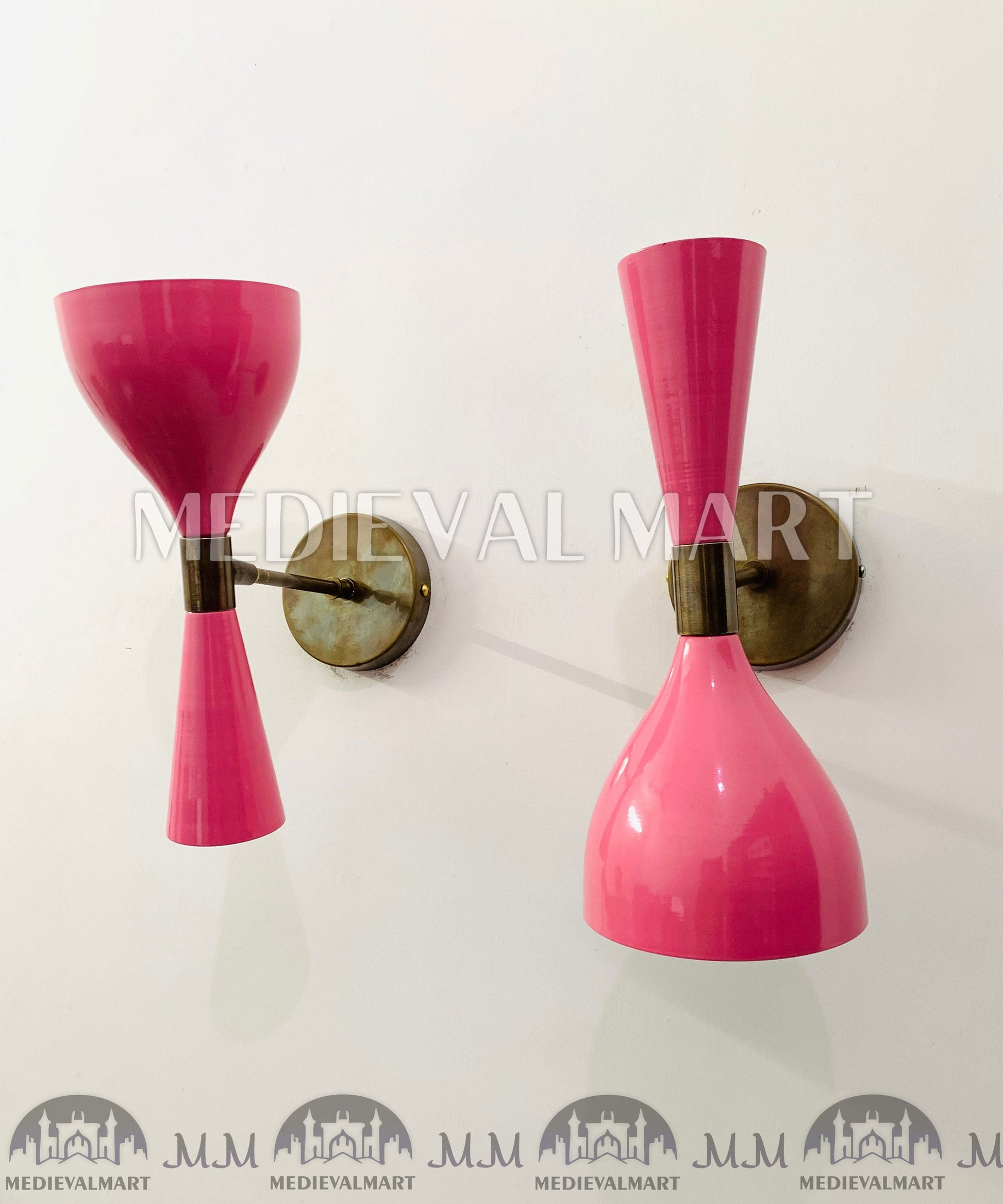 MEDIEVALMART FR Applique Murale À Double Cône En Laiton Marron, Lampe De Coiffeuse Fabriquée À La Main