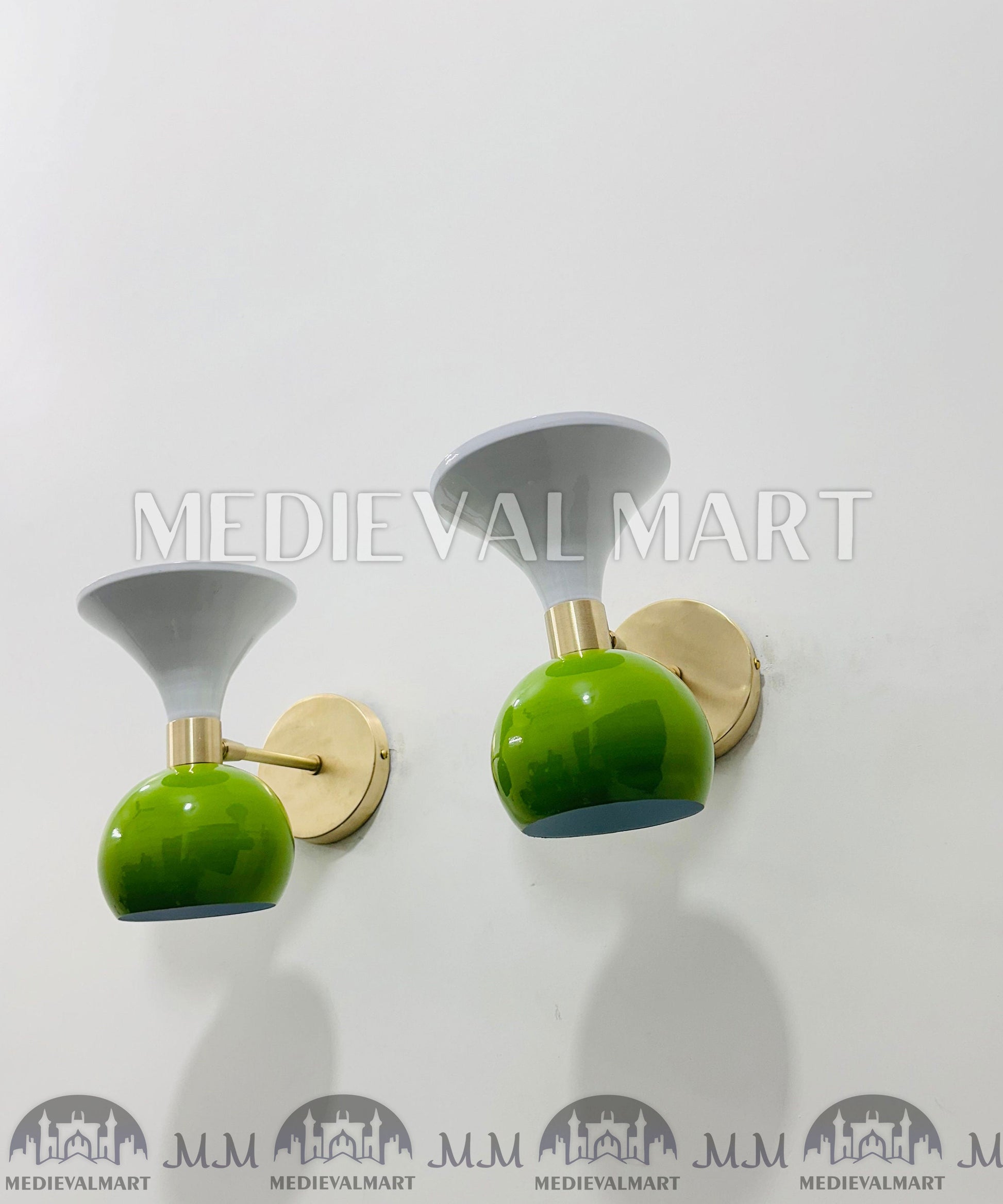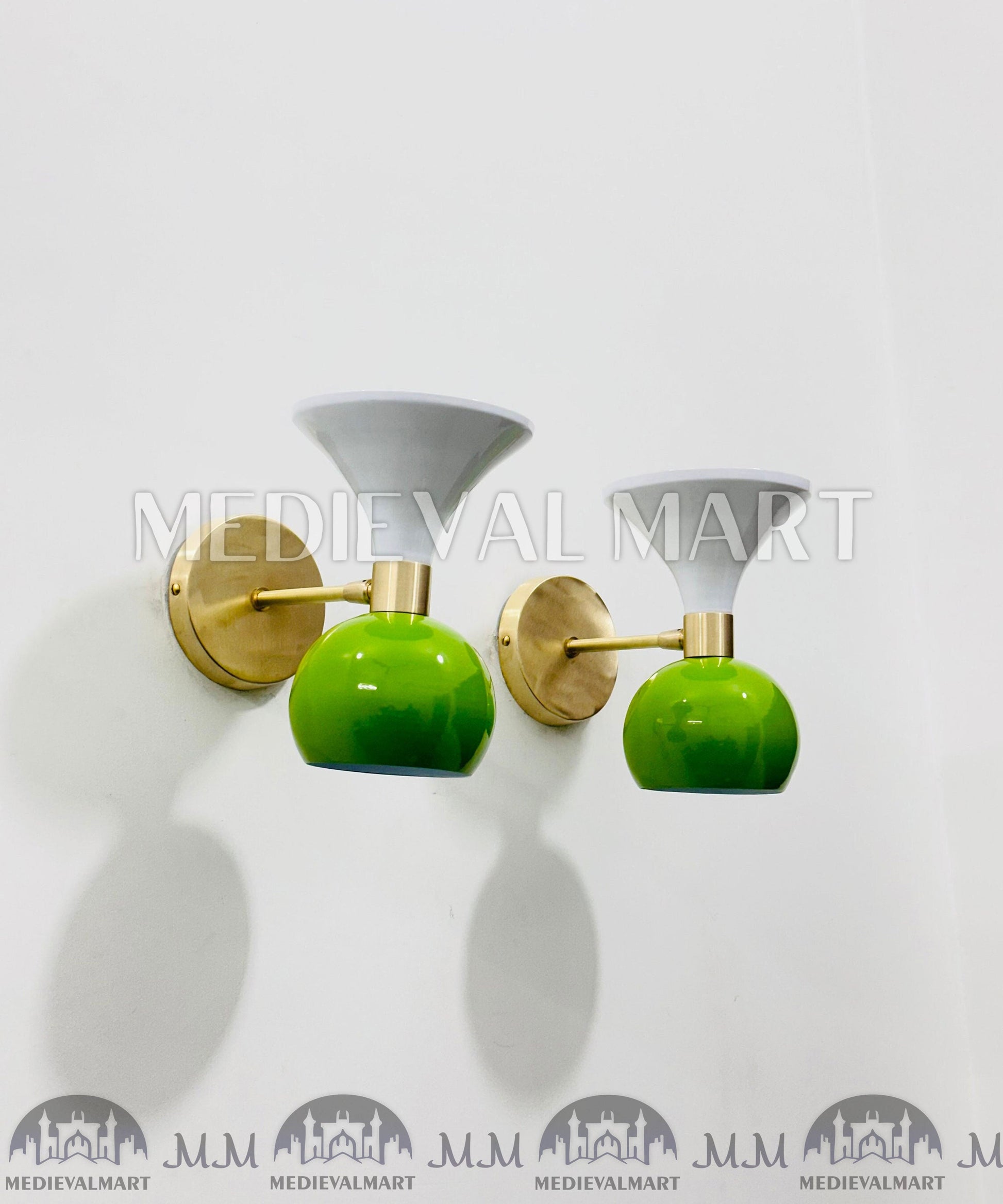 Apportez un charme mid-century raffiné à votre intérieur avec la Paire d’Appliques Murales Diabolo Modernes Mid-Century en Laiton MEDIEVALMART. Finition élégante en vert et blanc émaillé, ces luminaires fabriqués à la main associent le design italien Diabolo à un savoir-faire intemporel en laiton.