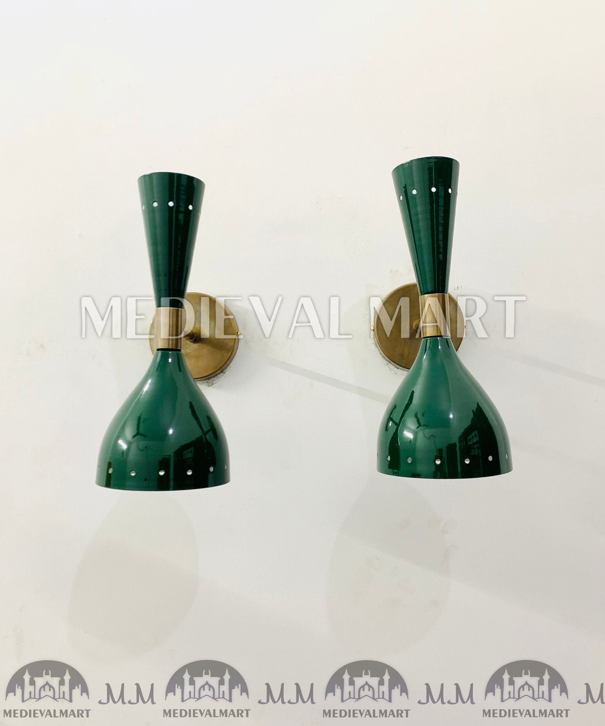 MEDIEVALMART FR Applique Murale À Double Cône En Laiton Marron, Lampe De Coiffeuse Fabriquée À La Main