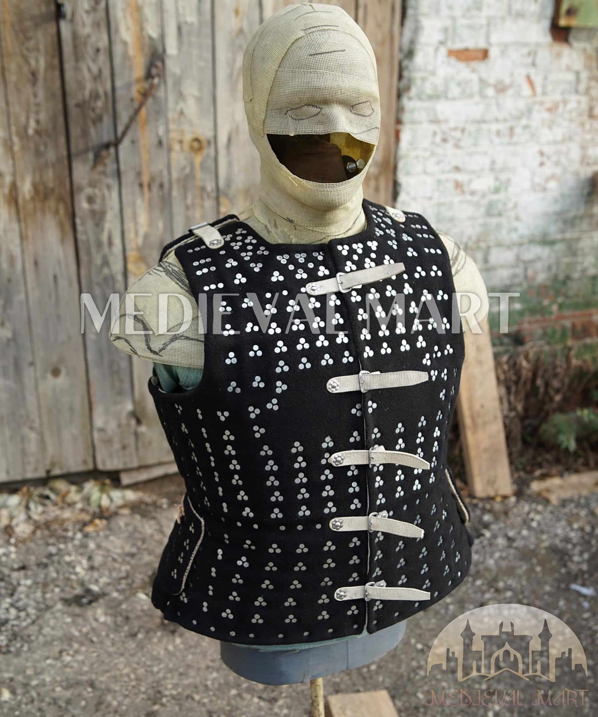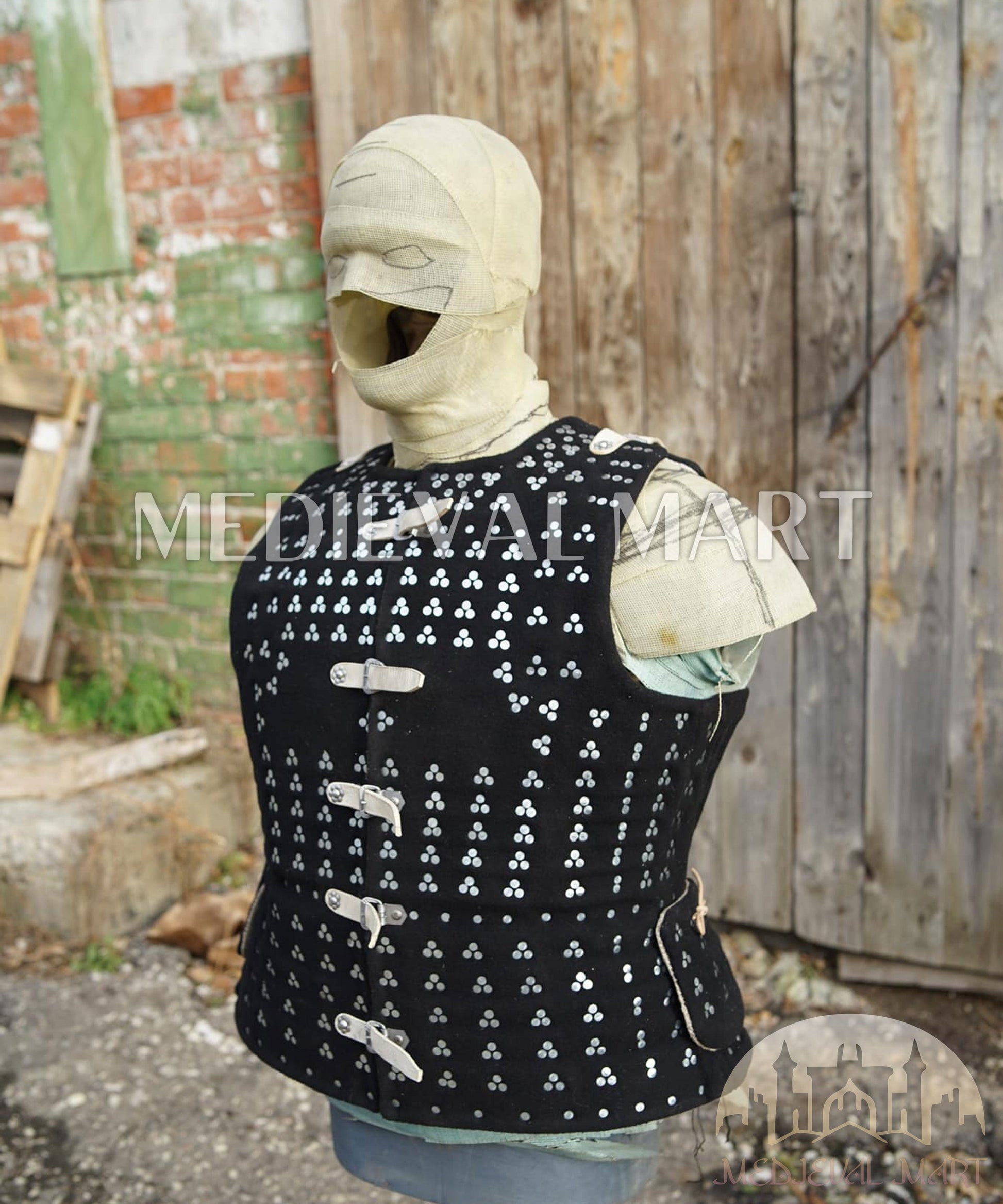MEDIEVALMART Armure Brigandine Historique de la Renaissance – PREMIUM Noir – Veste avec Épaulières de Brigandine