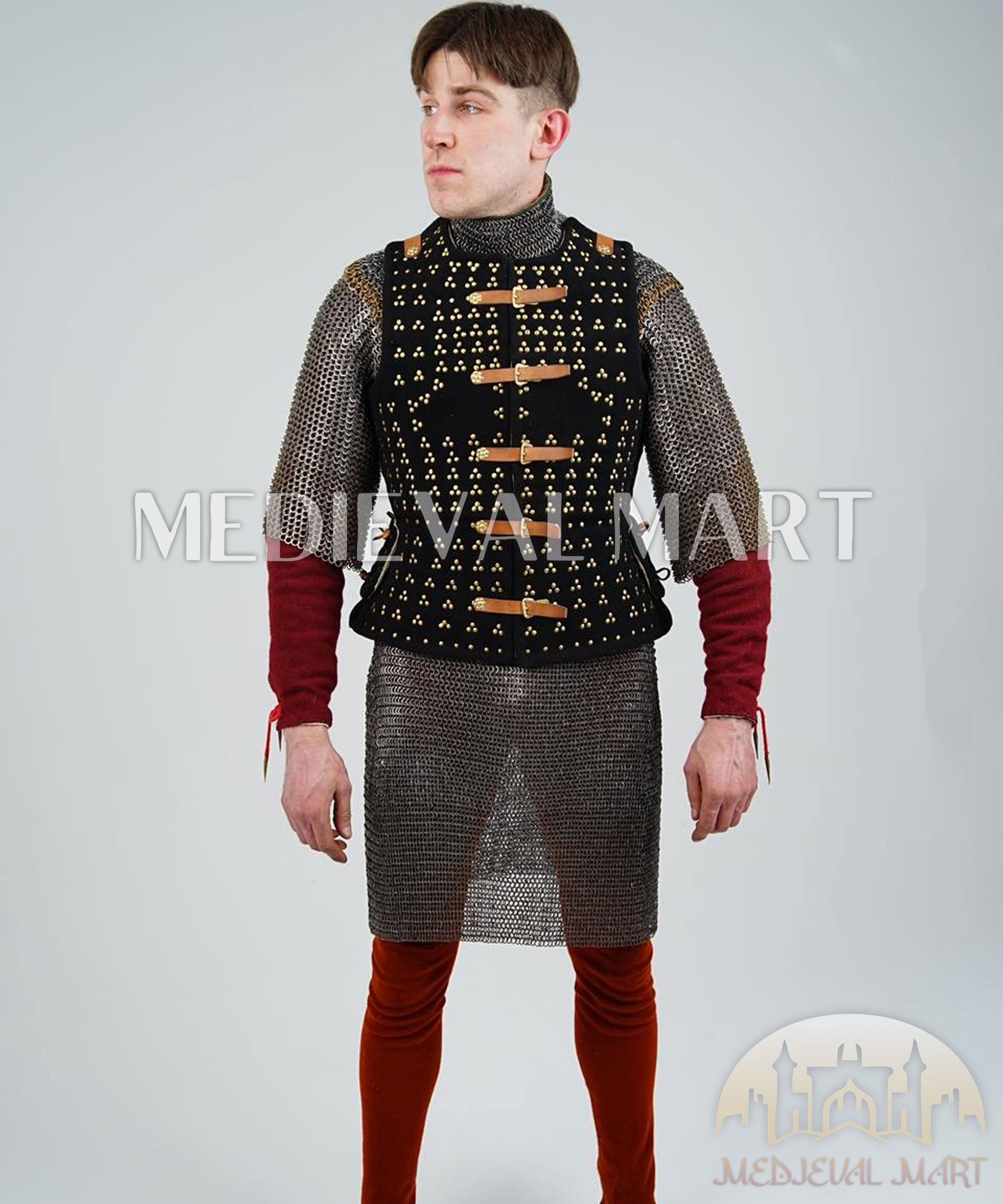 MEDIEVALMART Armure Brigandine Renaissance Espagnole Simplifiée – PREMIUM Noir – Veste avec Cotte de Mailles