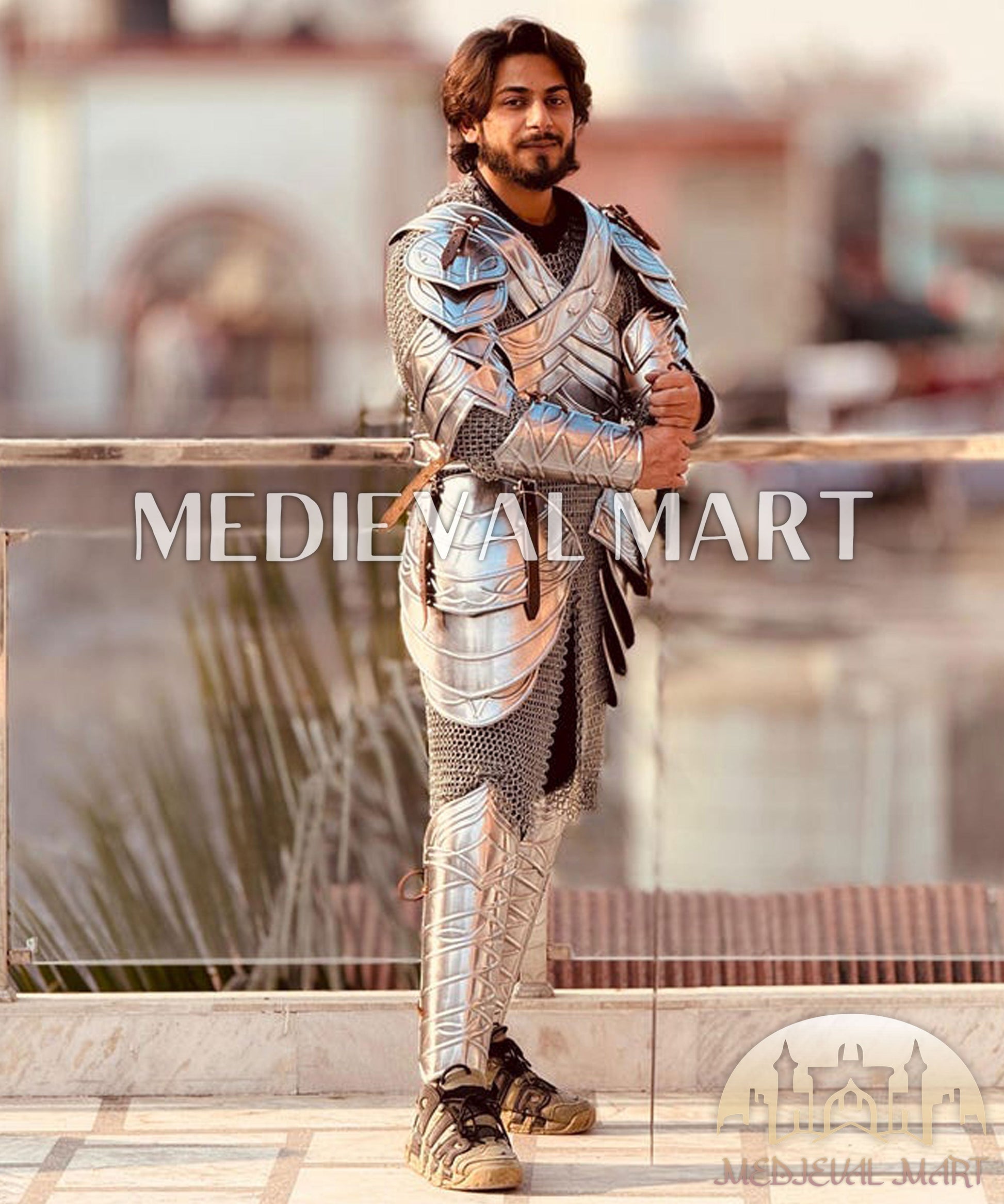 L’armure complète elfique du Second Âge par MEDIEVALMART est un véritable chef-d’œuvre d’artisanat, inspiré des guerriers légendaires des royaumes anciens. Cet ensemble comprend une cuirasse, des brassards, des grèves de jambes et des épaulières, offrant une protection complète tout en conservant une légèreté et une agilité idéales pour les combattants elfes.