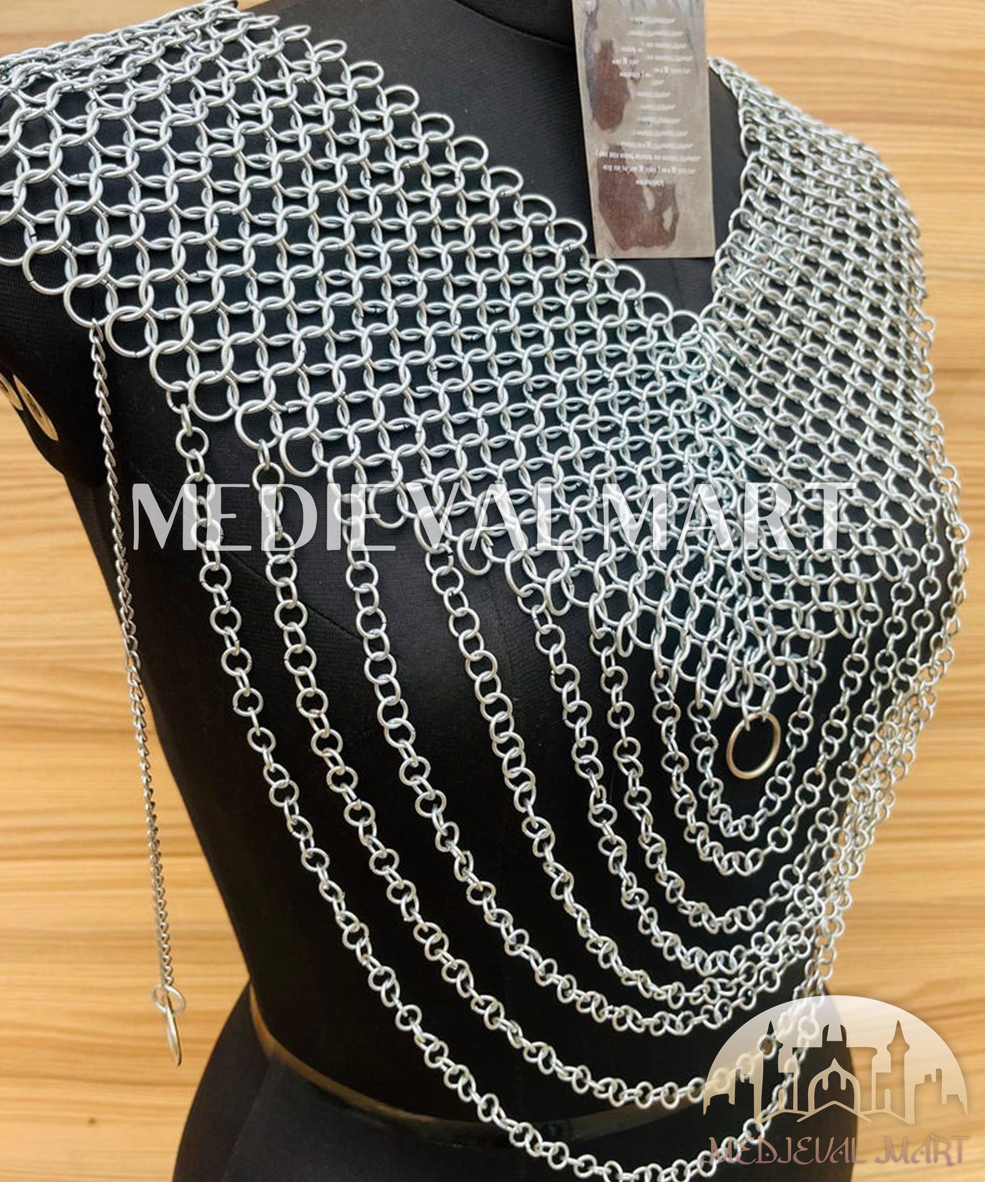 L’armure en cotte de mailles argentée MoonFire pour femme de MedievalMart sans jupe est un mélange saisissant d’élégance et d’artisanat prêt au combat. Fabriquée à partir d’anneaux en acier de haute qualité avec finition argentée, cette armure offre une durabilité supérieure, une grande flexibilité et un confort léger. Conçue pour le LARP, le cosplay, les combats SCA et les reconstitutions médiévales, elle assure à la fois protection et liberté de mouvement. La cotte de mailles MoonFire incarne la grâce d’une guerrière tout en conservant un aspect poli et accrocheur. Que vous soyez porte-bouclier, guerrière elfique ou chevalière noble, cette armure est parfaite pour donner vie à votre fantasy médiévale avec une authenticité et un style incomparables.