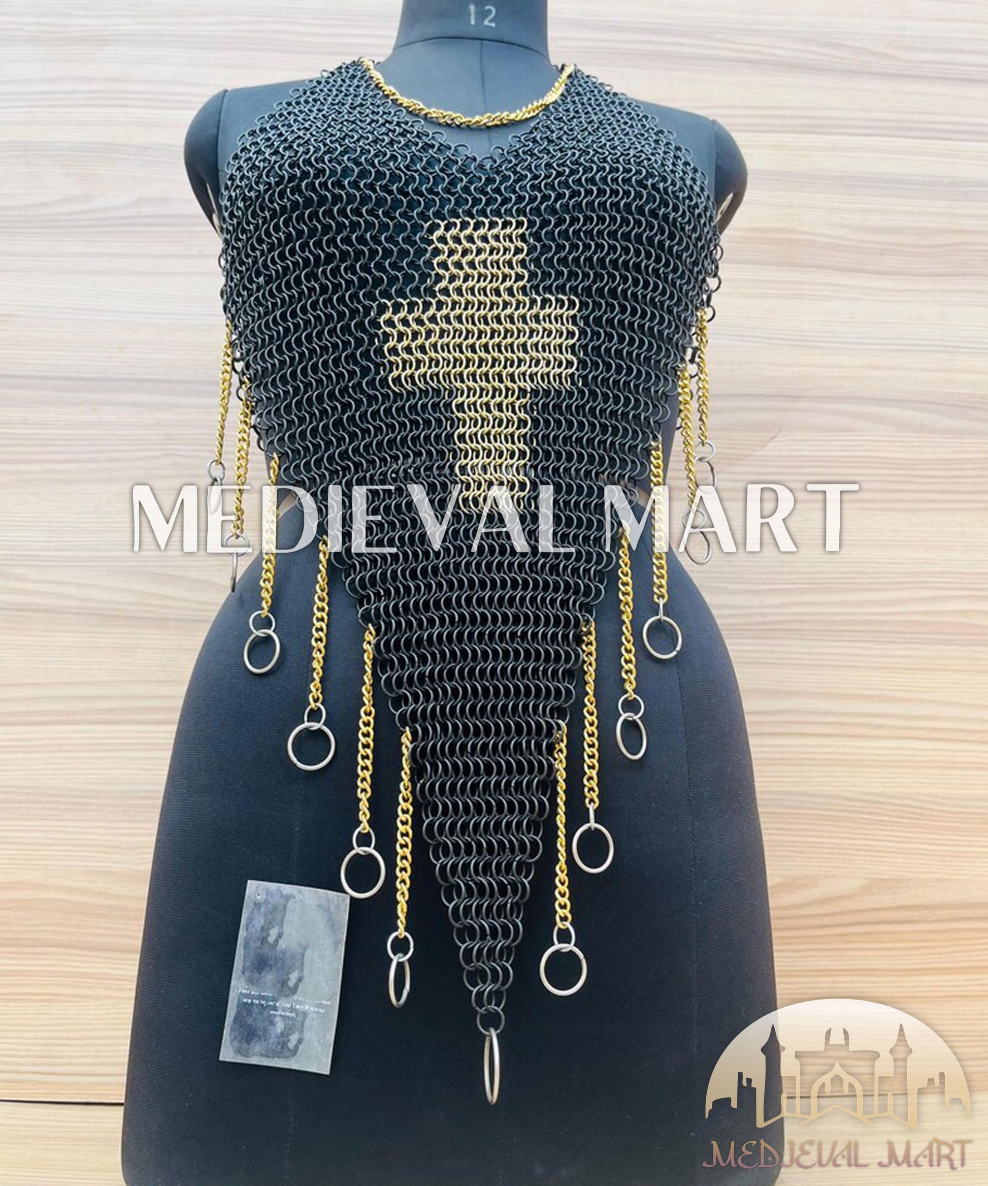 L’armure féminine en cotte de mailles noire (Dragonfang) Jesus MEDIEVALMART avec jupe est un chef-d’œuvre de l’artisanat guerrier, conçu pour allier force et élégance. Fabriquée à partir d’anneaux en acier noirci de qualité premium, cette cotte de mailles offre une durabilité exceptionnelle et une grande flexibilité, garantissant à la fois protection et confort au combat. La jupe en cotte de mailles intégrée améliore la mobilité tout en ajoutant une esthétique audacieuse et royale, parfaite pour les shieldmaidens et les guerrières féroces. Idéale pour le LARP, le cosplay, les combats SCA et les reconstitutions médiévales, cette armure capture l’essence des guerriers mythiques. Entrez au combat avec l’armure en cotte de mailles Dragonfang et incarnez l’esprit d’une véritable légende médiévale.