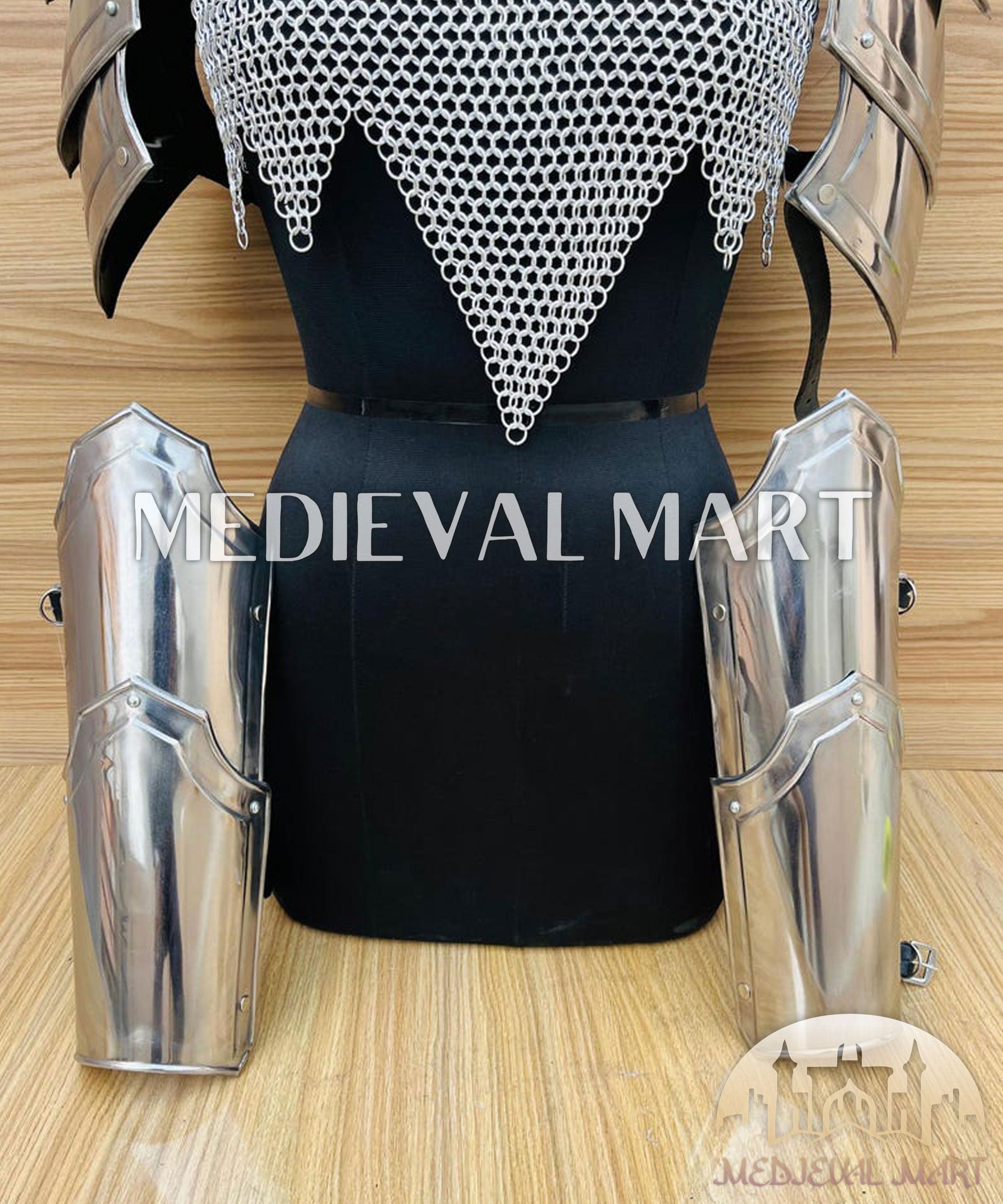 L’armure féminine MedievalMart (Isolara Dragonplate) avec cotte de mailles (Moonfire) + armure des bras avec jupe est une fusion spectaculaire de force et d’élégance. Cet ensemble d’armure fabriqué à la main est doté d’un placage Dragonplate durable, offrant une protection supérieure tout en conservant un design élégant et royal. La cotte de mailles Moonfire assure une flexibilité et un confort optimaux, la rendant idéale pour le combat ou l’exposition. L’armure des bras renforcée améliore la défense, tandis que la jupe fluide ajoute une touche de noblesse. Que ce soit pour le LARP, le cosplay, les reconstitutions médiévales ou les collectionneurs, cet ensemble d’armure incarne l’esprit intrépide d’une reine guerrière, alliant authenticité historique et esthétique fantastique.
