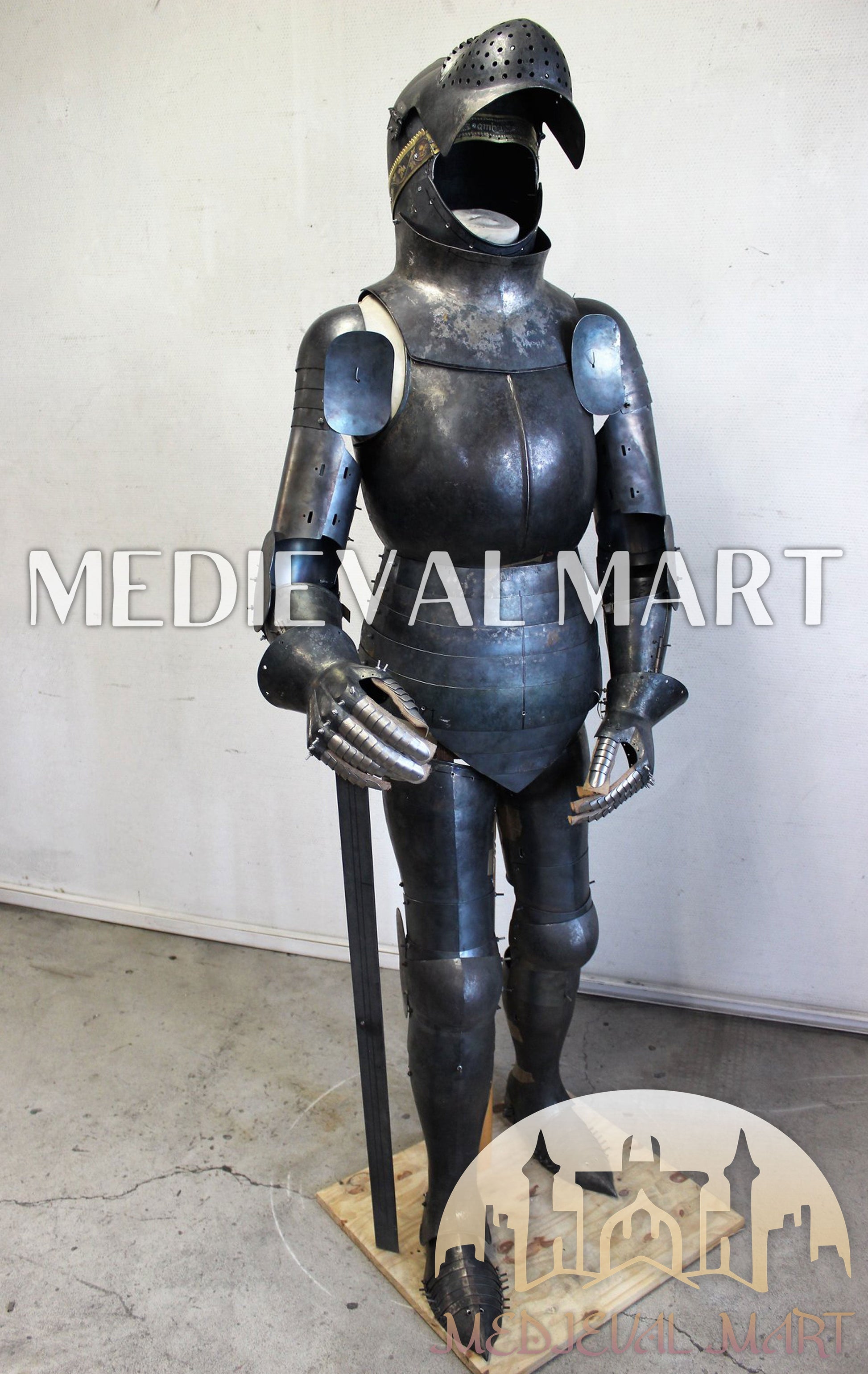 MEDIEVALMART FR Armure de Combat du XIVe Siècle – Ensemble Complet d’Armure de Buhurt avec Bassinet Klappvisor & Épée