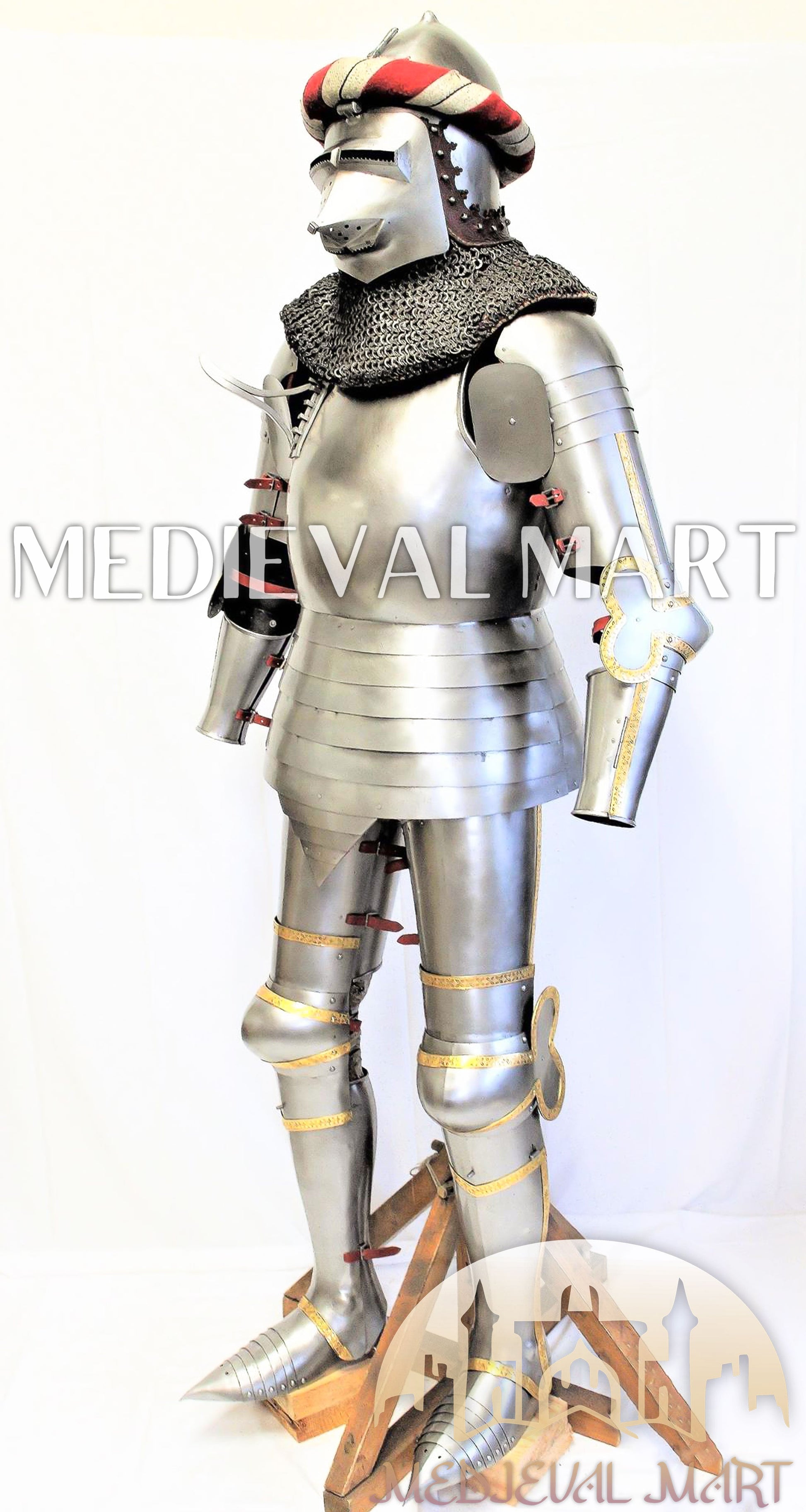MEDIEVALMART FR Armure de Combat du XIVe Siècle – Ensemble Complet d’Armure de Buhurt avec Bassinet Klappvisor & Épée