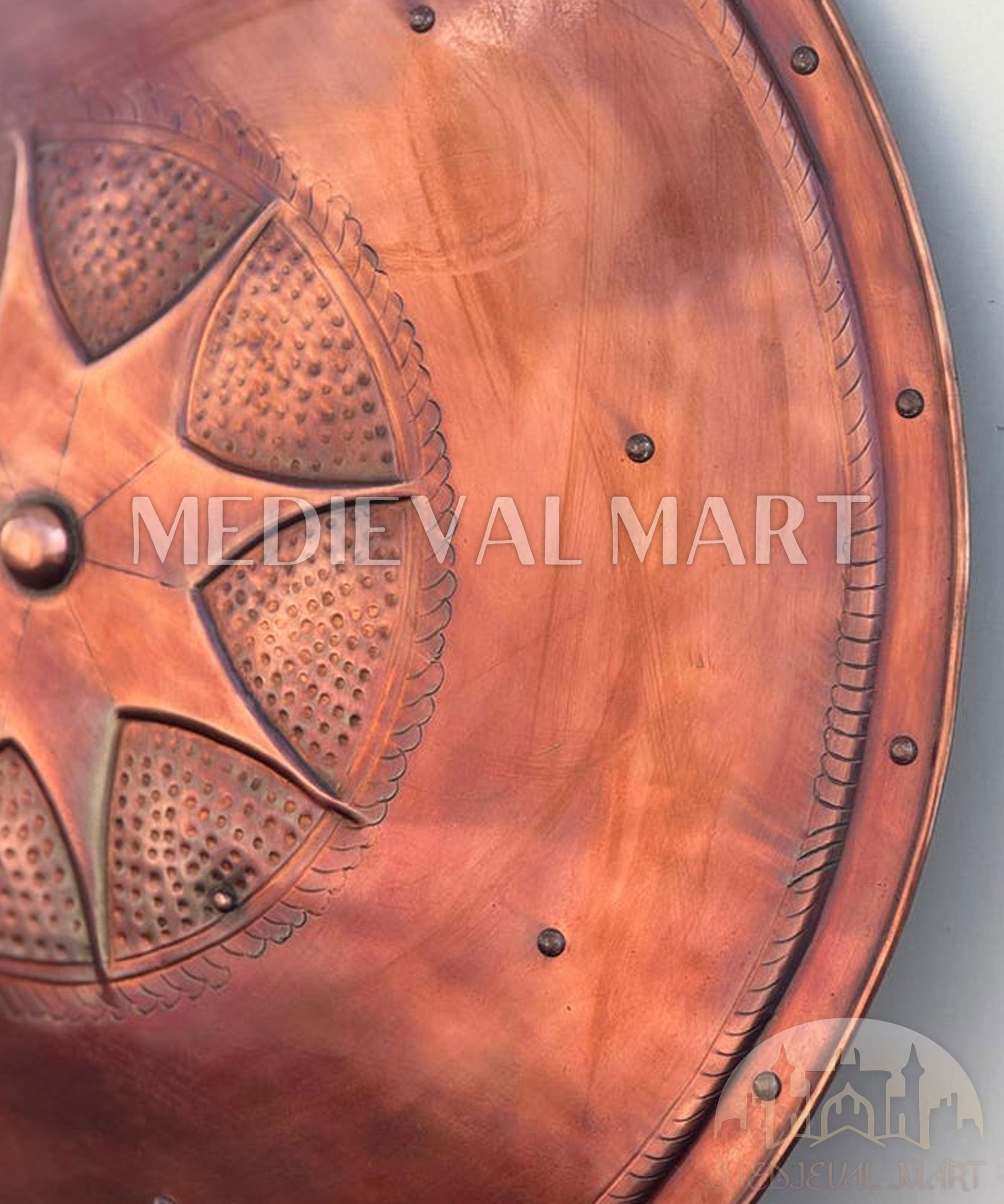 Plongez dans l’univers épique du film Kingdom of Heaven avec le bouclier rond MEDIEVALMART à finition cuivrée, inspiré des chevaliers et des batailles légendaires du Moyen Âge. Conçu pour capturer l’esthétique authentique des guerriers croisés, ce bouclier allie puissance visuelle, réalisme historique et finition artisanale.