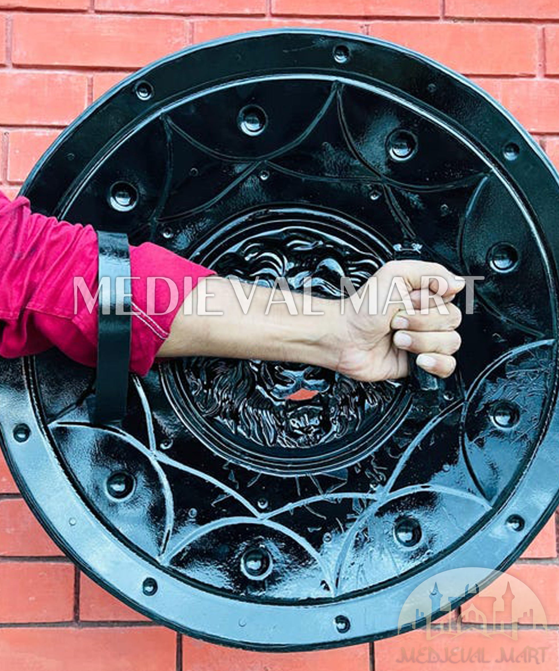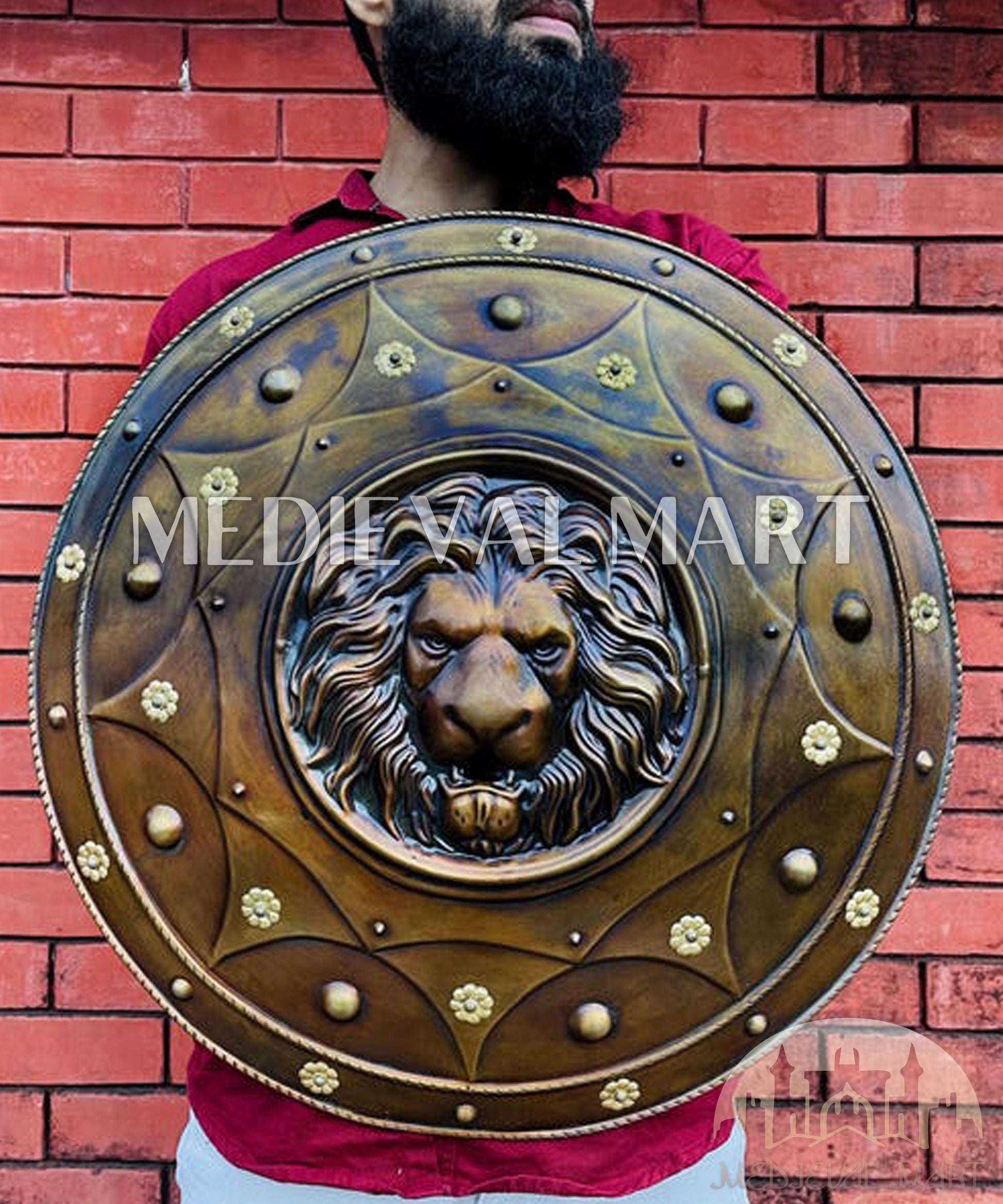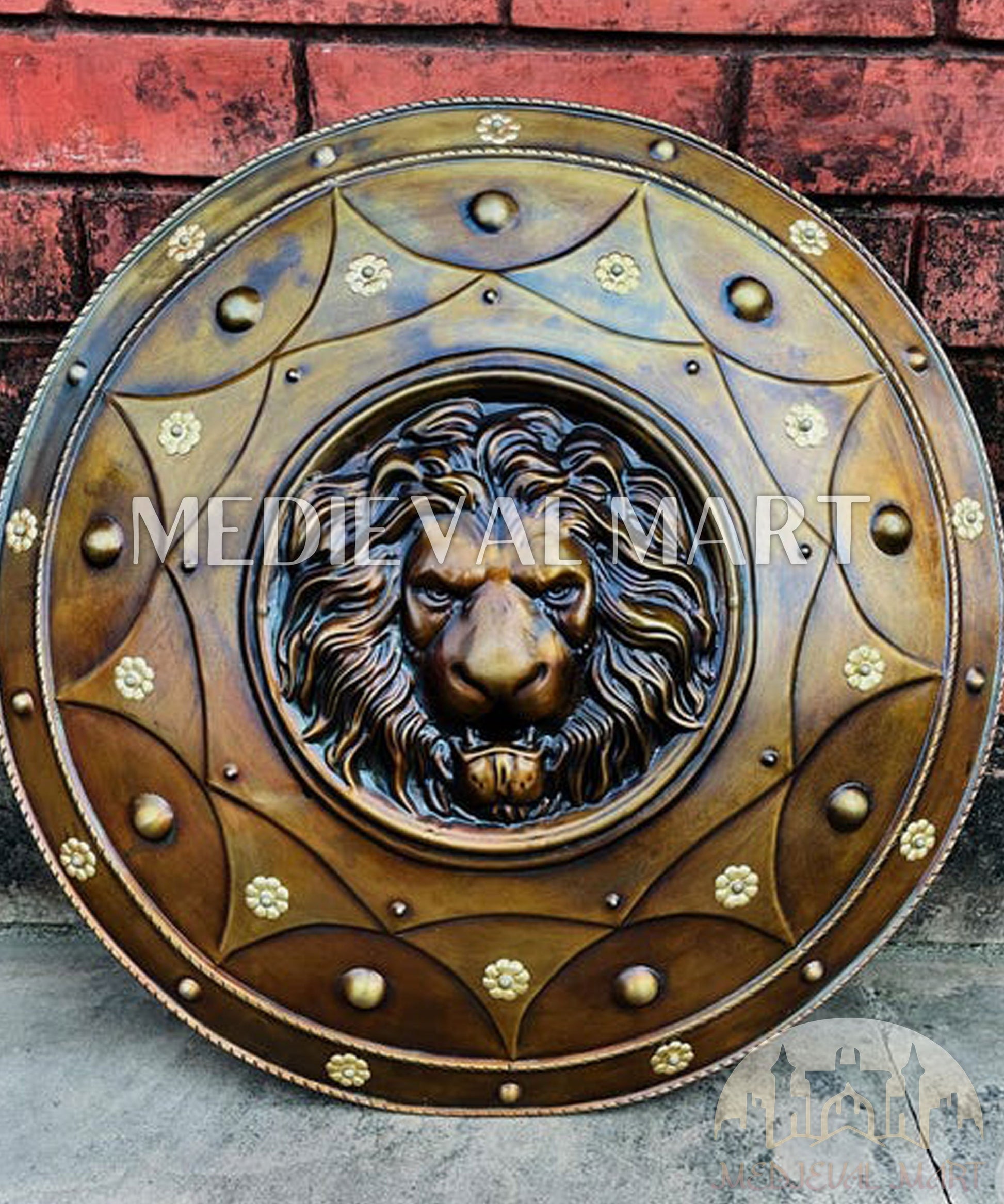 Affirmez votre autorité avec le bouclier spartiate à tête de lion MEDIEVALMART, doté d’une finition antique majestueuse. Arborant un emblème de lion puissant, ce bouclier incarne l’esprit intrépide des guerriers antiques — parfait pour les collectionneurs, le cosplay ou la décoration intérieure.