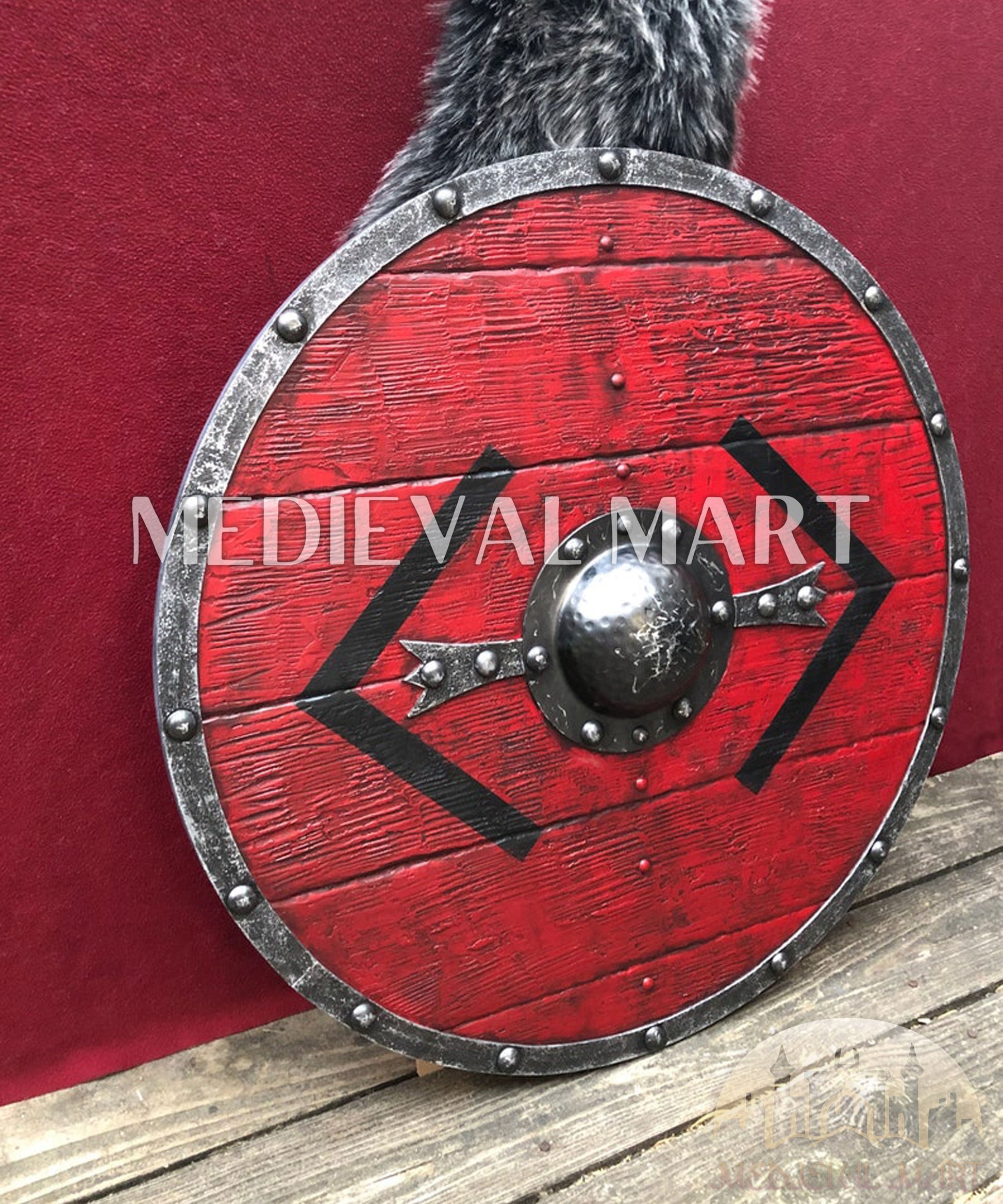 MEDIEVALMART FR Bouclier Viking Iconique Jarl Borg à Pointes en Fer – Bouclier Viking Battleworn | Cadeau pour Papa