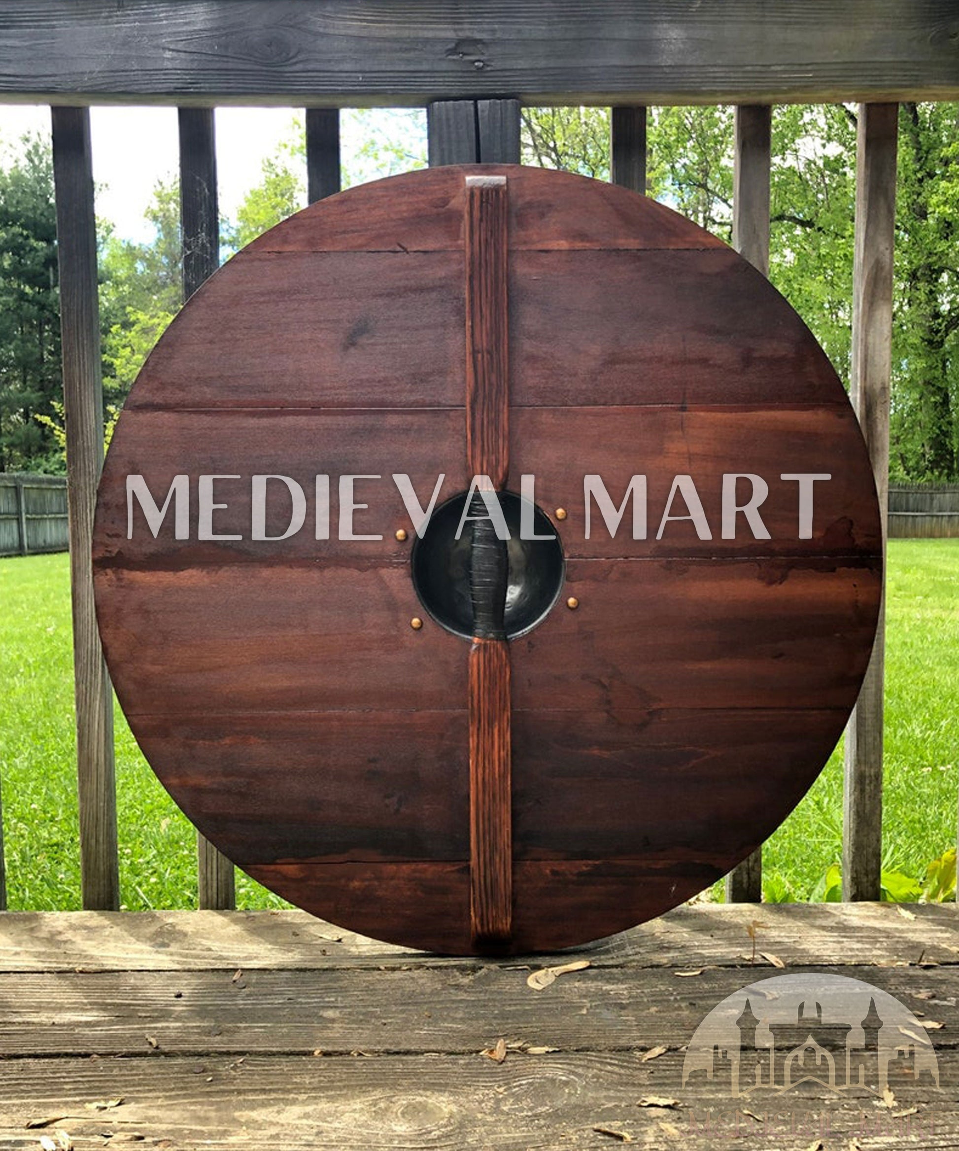 MEDIEVALMART FR Bouclier Viking Iconique Valhalla Noir/Gris – Ivar le Désossé avec Pointes en Fer | Cadeau pour Papa