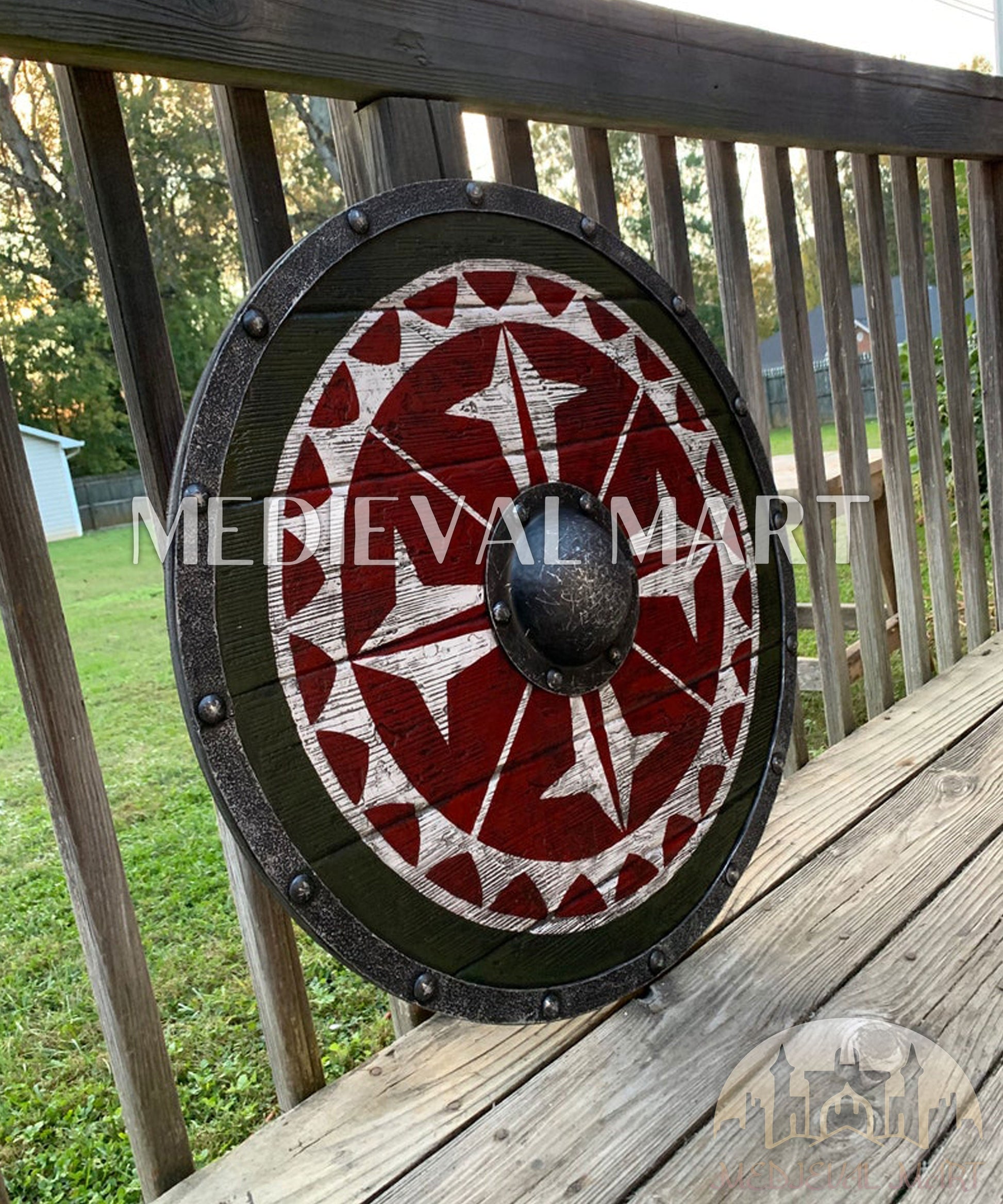 Entrez dans la légende avec le bouclier viking légendaire d’Uhtred de Bebbanburg MEDIEVALMART. Conçu pour refléter l’esprit intrépide du célèbre guerrier, ce bouclier iconique à l’aspect patiné par le combat présente une finition vieillie, des détails nordiques authentiques et une texture en bois robuste — un véritable hommage à la résilience, à l’honneur et à l’héritage viking.