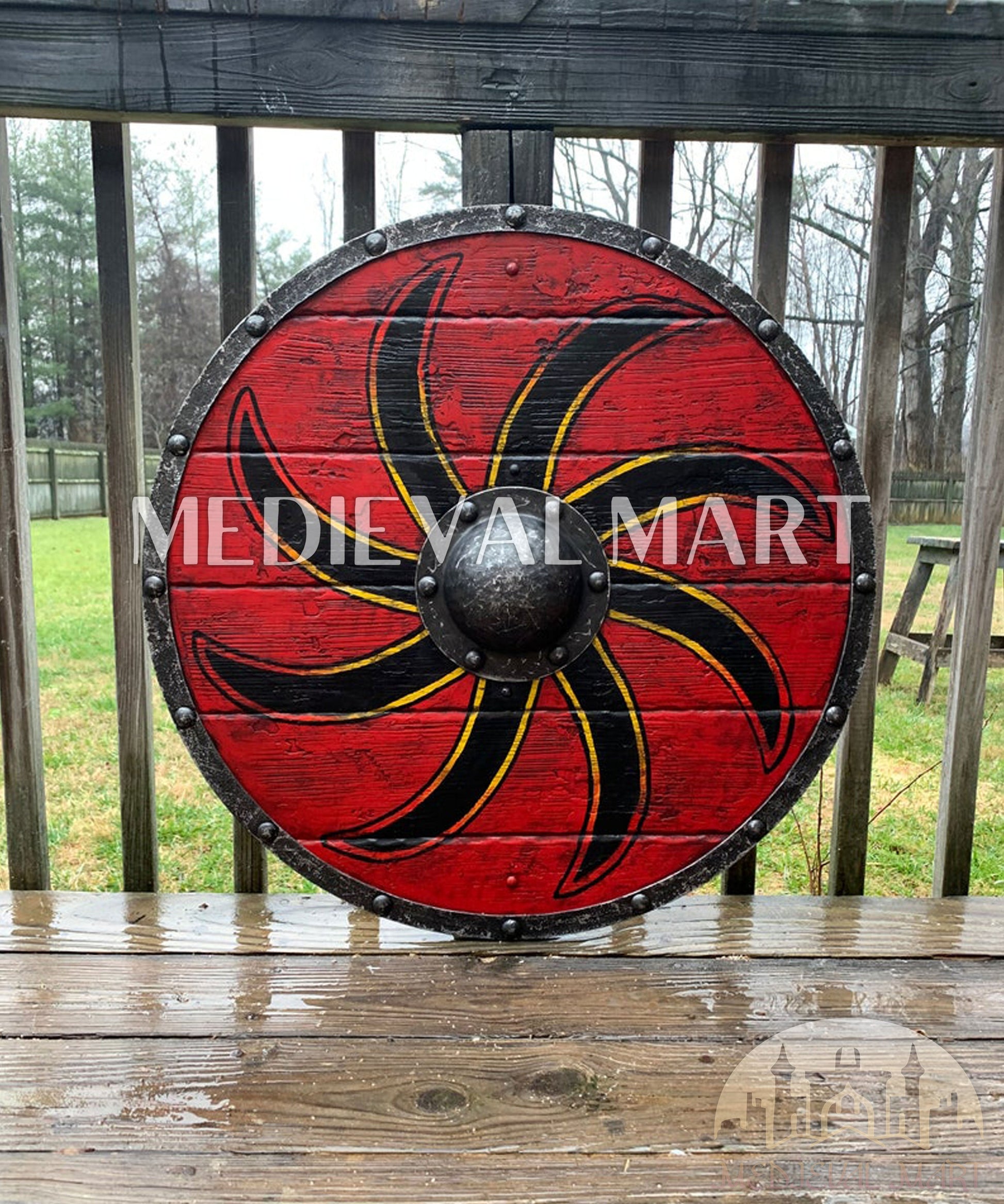 MEDIEVALMART FR Bouclier Viking Iconique Jarl Borg à Pointes en Fer – Bouclier Viking Battleworn | Cadeau pour Papa