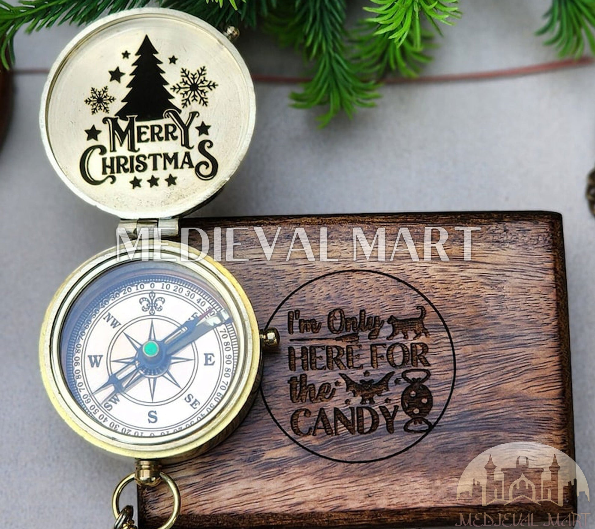 Illuminez Le Chemin En Cette Saison Des Fêtes Avec Cette Magnifique Boussole Nautique En Laiton, Conçue Pour Évoquer Les Étoiles Guides Des Marins Médiévaux. Forgée En Laiton Pur Avec Un Choix De Finition Or Lumineux Ou Bronze Chaleureux, Cette Boussole Entièrement Fonctionnelle De 50 mm Est Ornée De Gravures Détaillées, Rayonnant L’Esprit D’Exploration Et D’Espoir. Personnalisée Grâce À Des Gravures Sur Mesure, Elle Devient Un Souvenir Festif, Symbolisant La Guidance, L’Amour Et La Joie Du Partage. Nichée Dans Un Coffret En Bois Gen-2 Fabriqué À La Main (2,5 x 2,5 x 1 Pouce), Avec Son Grain Poli Et Sa Chaleur Raffinée, Ce Trésor Brille D’Un Charme Saisonnier. Parfaite Pour Noël, C’Est Un Cadeau Réconfortant À Partager Avec Vos Proches, Célébrant Le Voyage De La Famille Sous La Lumière Guide De L’Hiver.