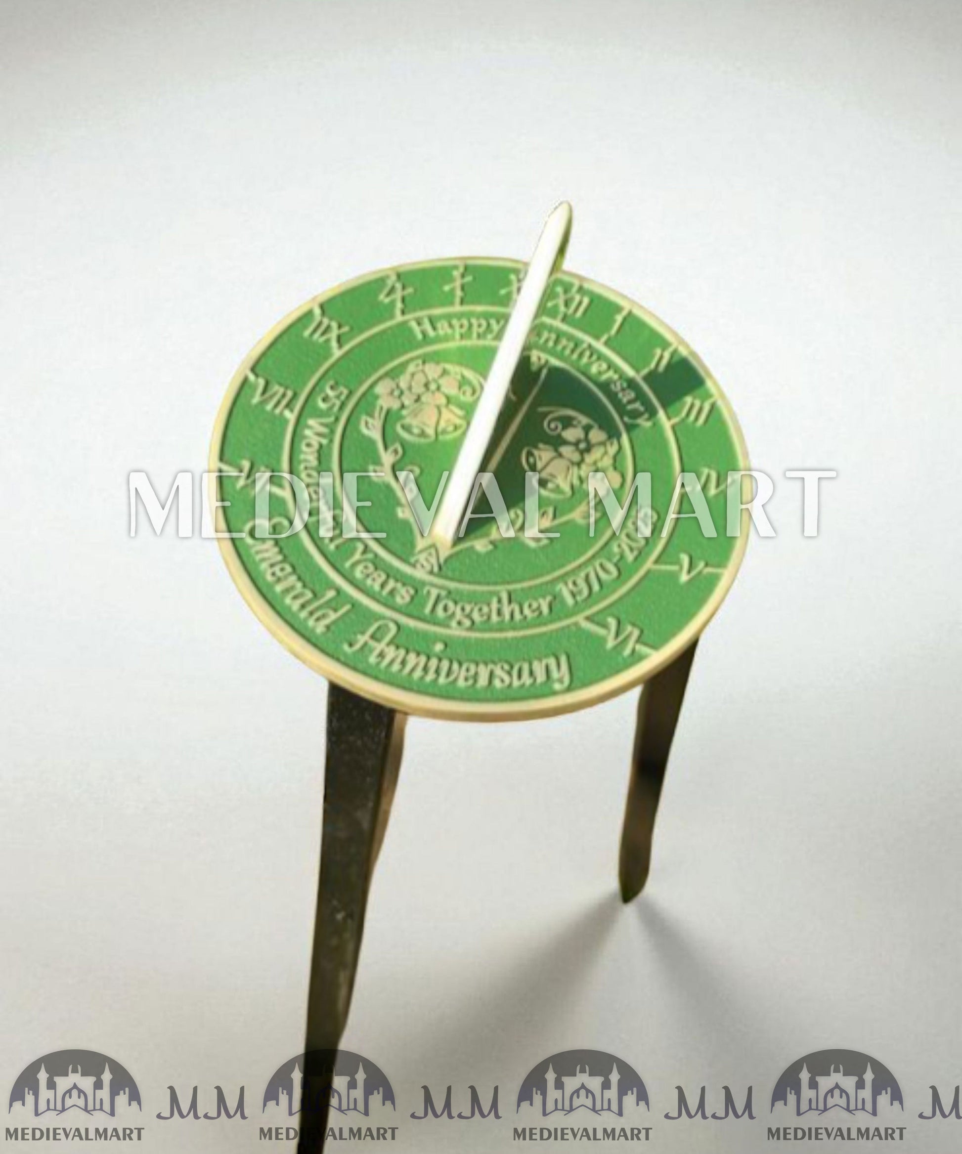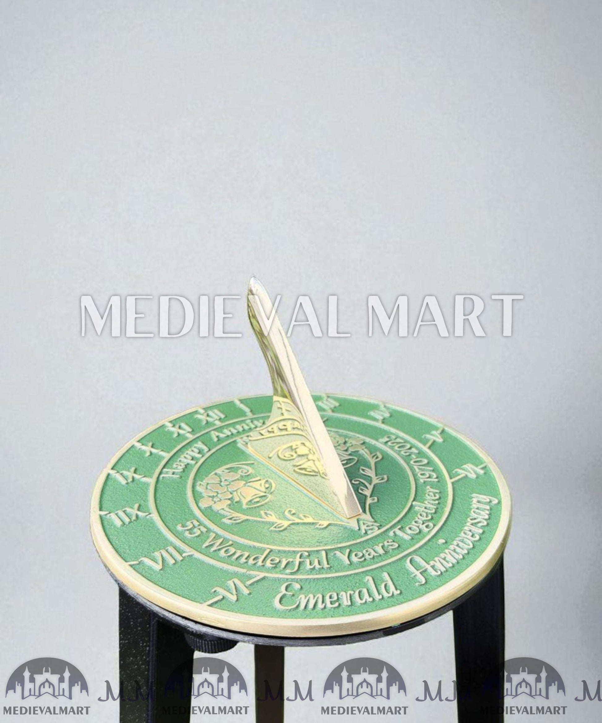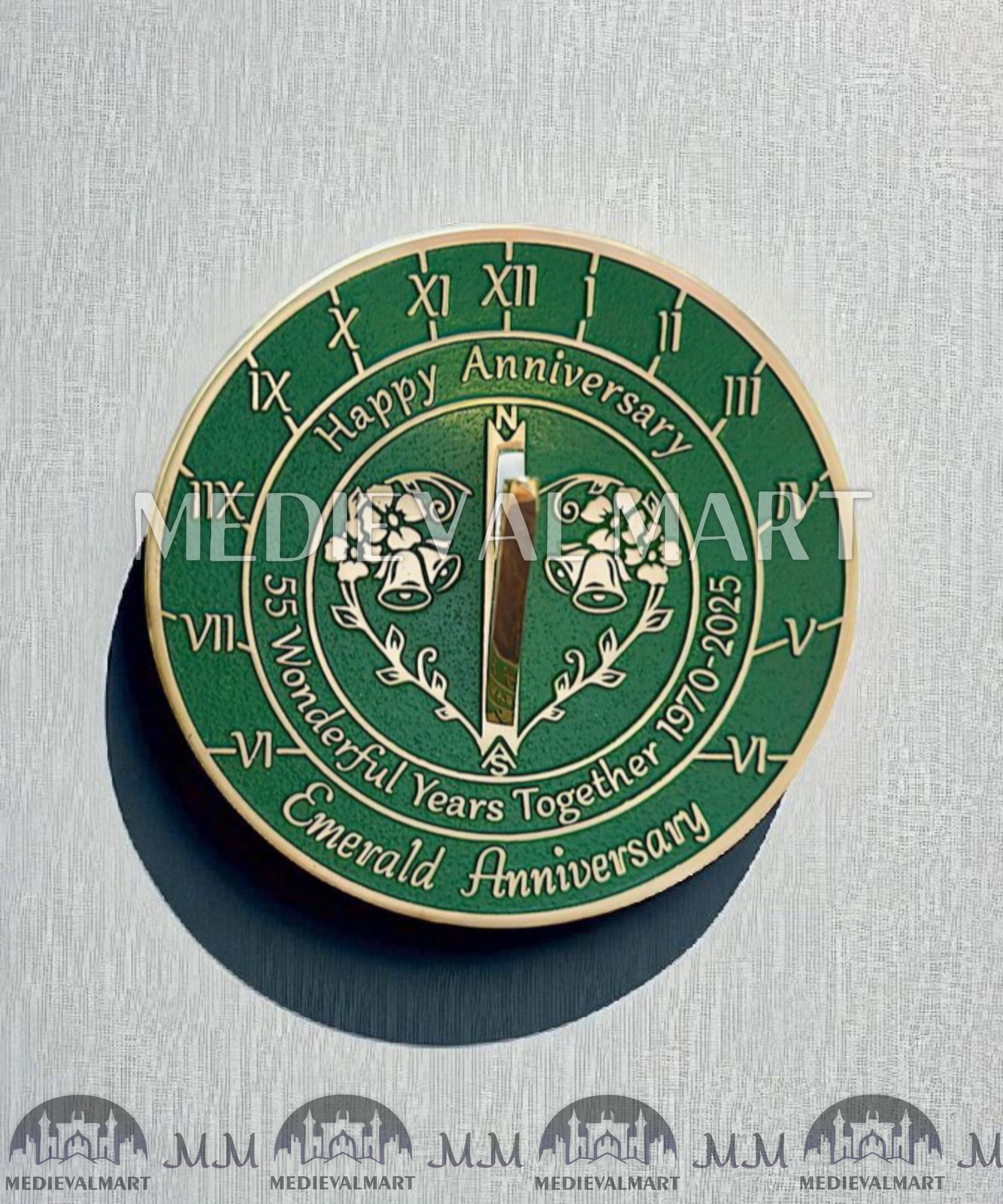 Célébrez cinquante-cinq années d’amour, de dévouement et d’innombrables souvenirs précieux avec le cadran solaire horloge anniversaire d’émeraude MEDIEVALMART 55ᵉ « Wonderful Years ». Conçu avec élégance et soin, ce cadran solaire exquis rend hommage au 55ᵉ anniversaire traditionnel, symbolisé par l’émeraude — rare, éclatante et durable, tout comme un amour qui s’est renforcé au fil de plus d’un demi-siècle passé ensemble.