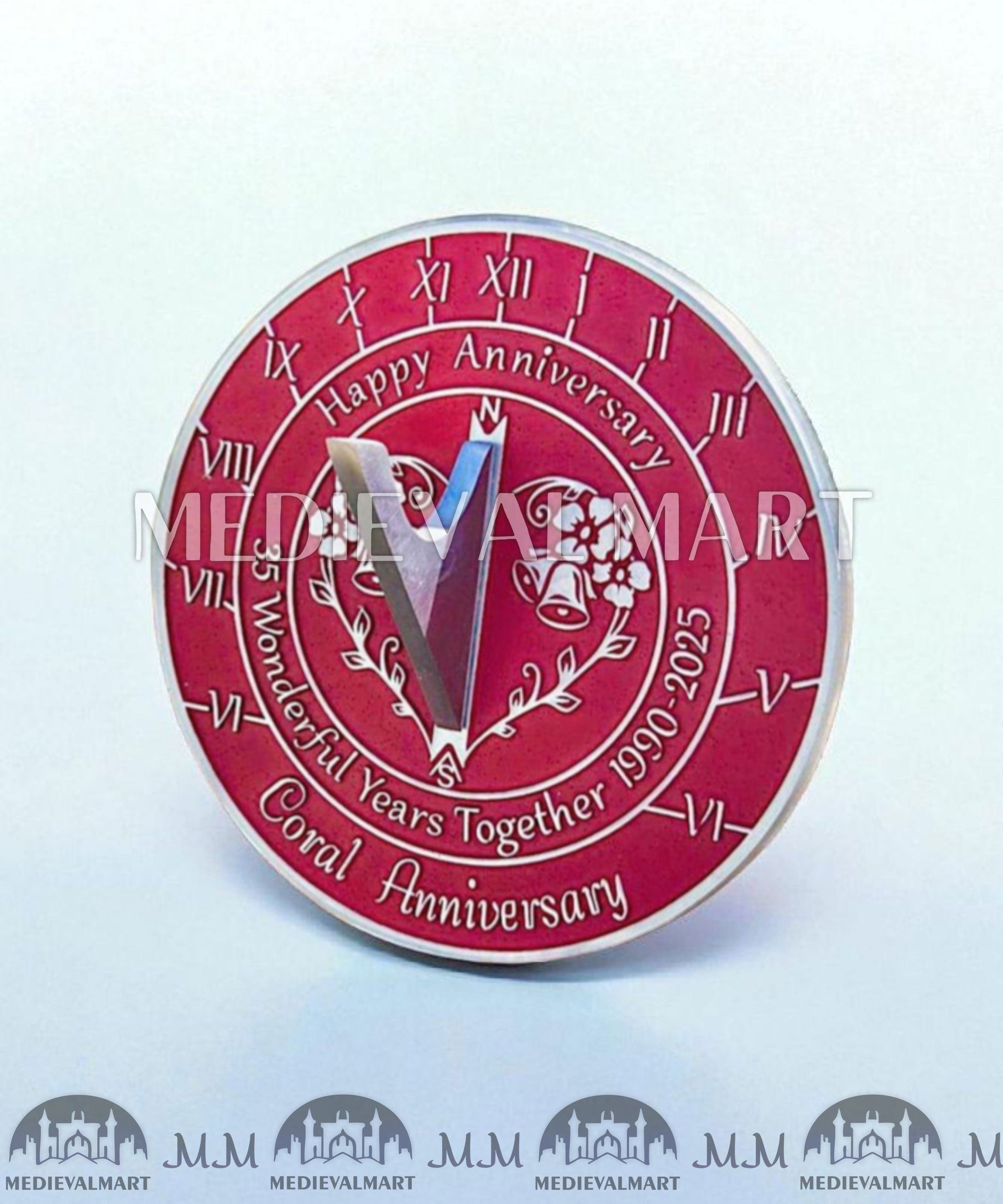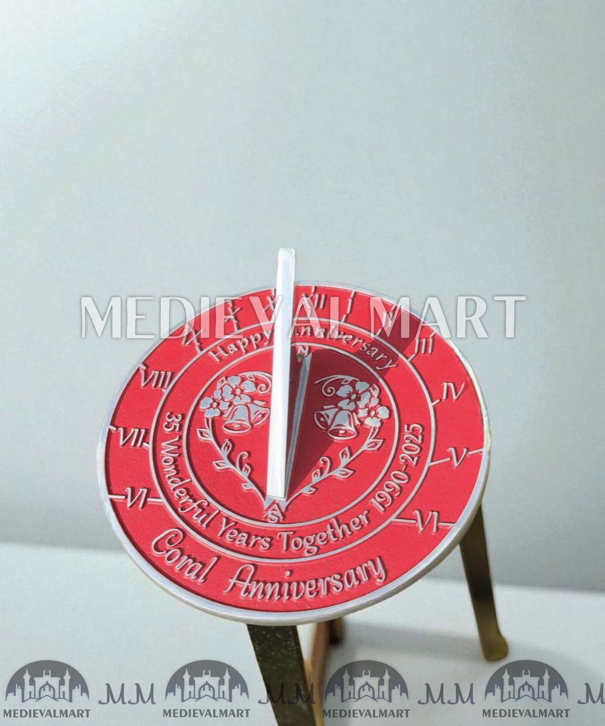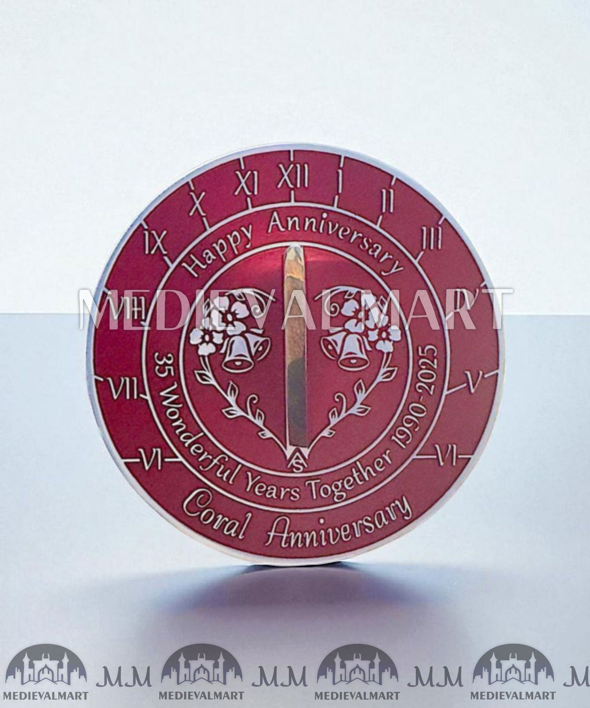 Célébrez trente-cinq années d’amour, de dévouement et de souvenirs partagés avec le cadran solaire horloge anniversaire de corail MEDIEVALMART 35ᵉ « Wonderful Years ». Conçu avec soin et élégance, ce cadran solaire rend hommage au 35ᵉ anniversaire traditionnel, symbolisé par le corail — vibrant, rare et durable, tout comme une relation qui s’est renforcée et embellie au fil des décennies.