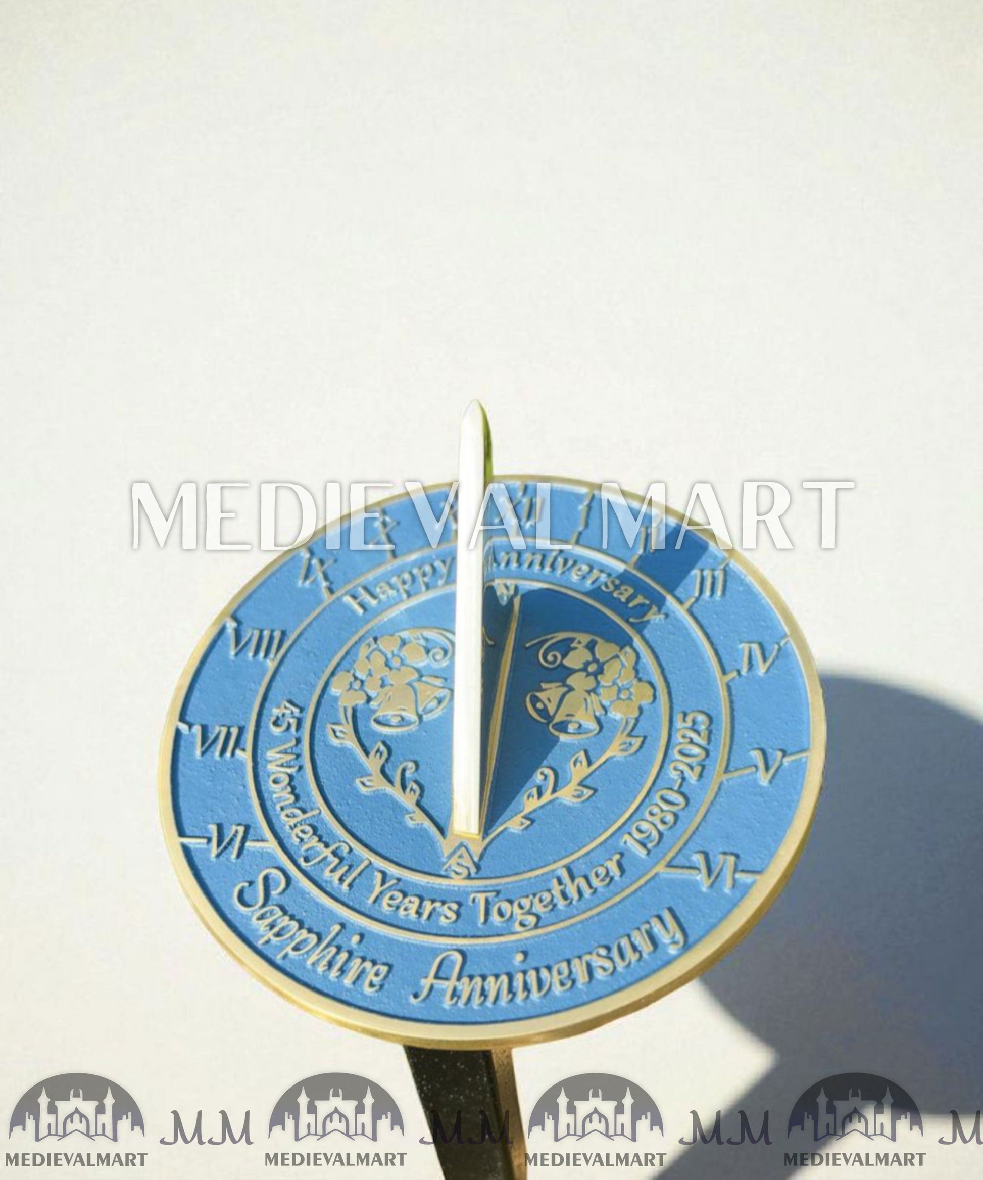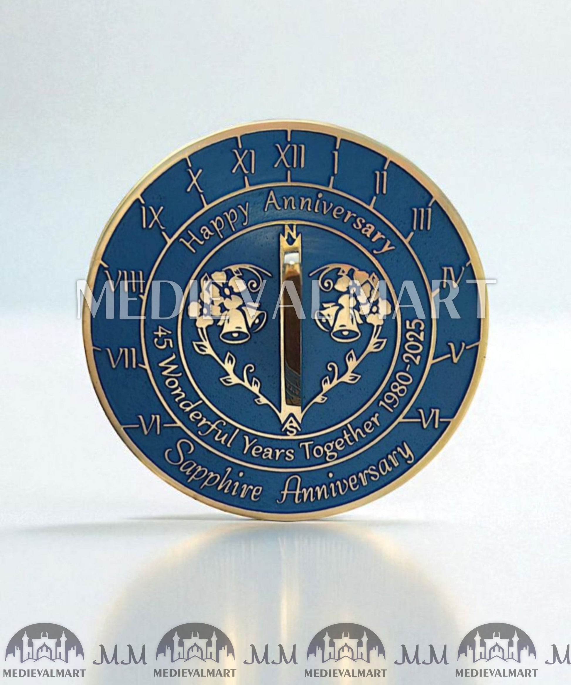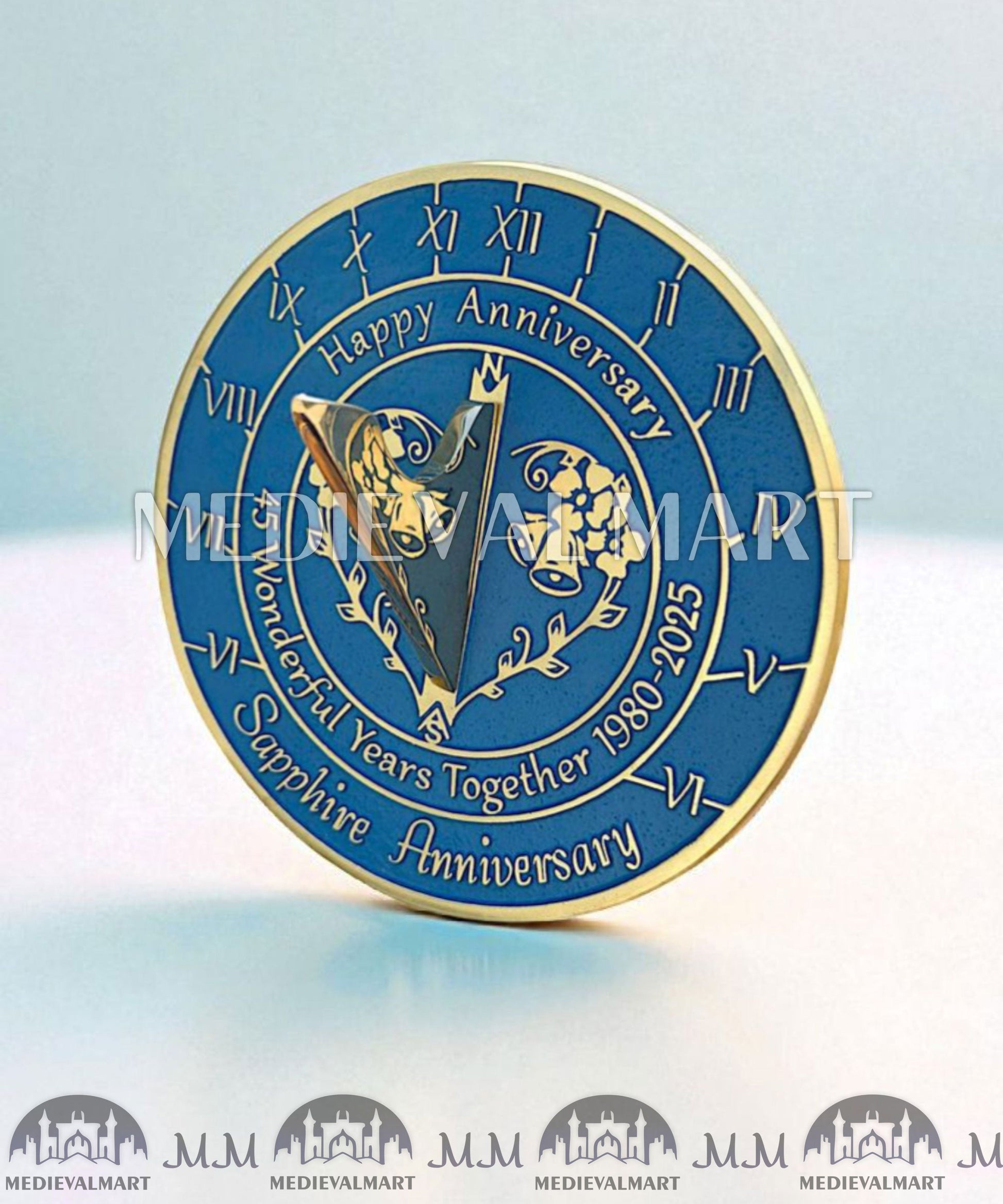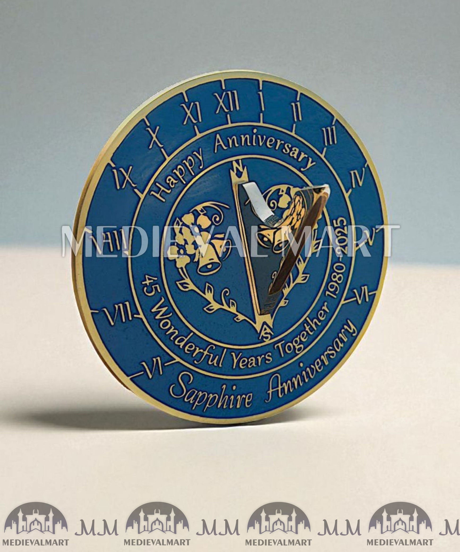 Célébrez quarante-cinq années d’amour, de dévouement et d’innombrables souvenirs précieux avec le cadran solaire horloge anniversaire saphir MEDIEVALMART 45ᵉ « Wonderful Years ». Conçu avec élégance et soin, ce cadran solaire exquis rend hommage au 45ᵉ anniversaire traditionnel, symbolisé par le saphirrare, éclatant et durable, tout comme une relation qui s’est renforcée au fil de près d’un demi-siècle passé ensemble.