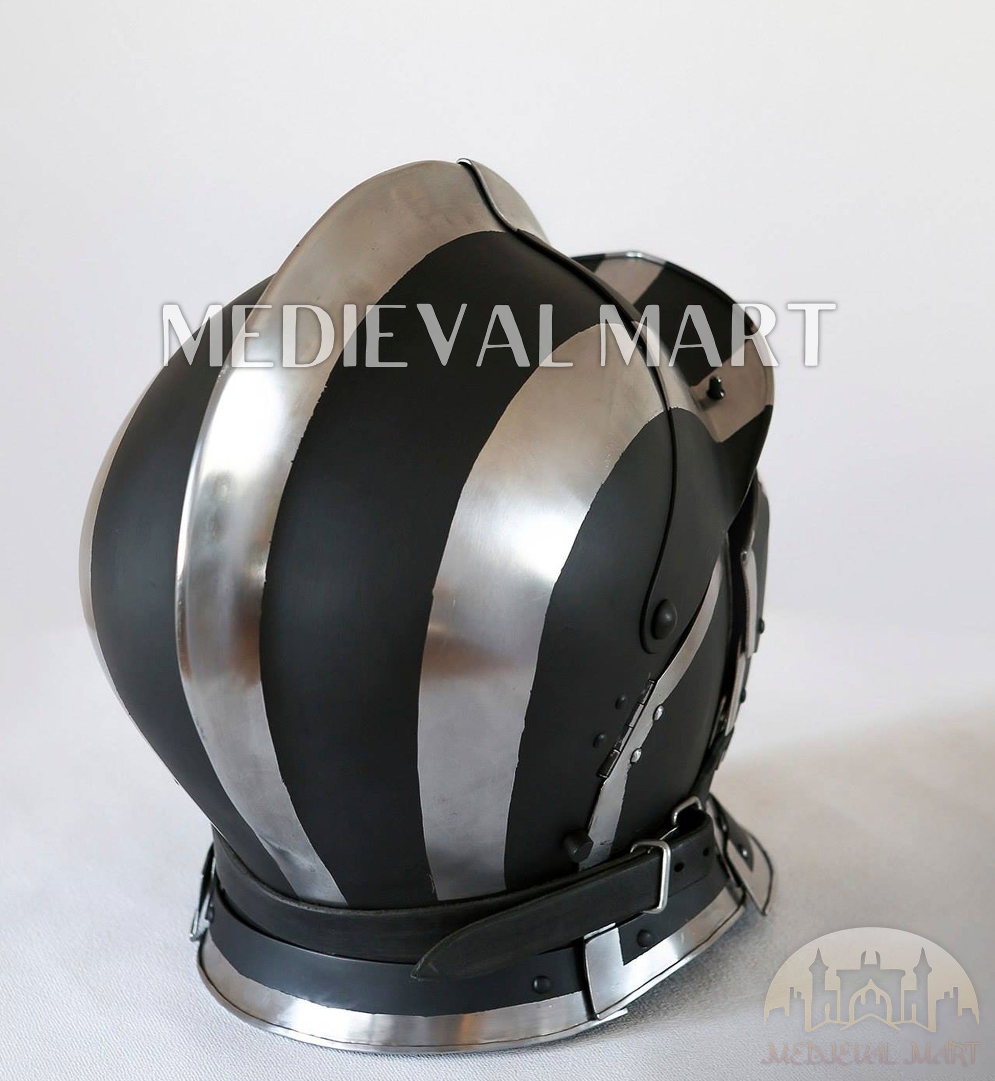 Inspiré À L’Origine Du Style Burgonet Du XVIe Siècle, Ce Modèle Réinterprète La Tradition Avec Une Finition Bicolore Audacieuse Noir Et Blanc, Représentant La Division Symbolique De Deux Guerriers Légendaires. Chaque Couleur Incarne Un Chevalier Différent — L’Un Juré De Défendre L’Honneur Du Roi, L’Autre Se Dressant Pour Venger Les Déchus. Ensemble, Ils Forment Un Casque Unique Conçu À La Fois Pour La Beauté Et Le Combat.