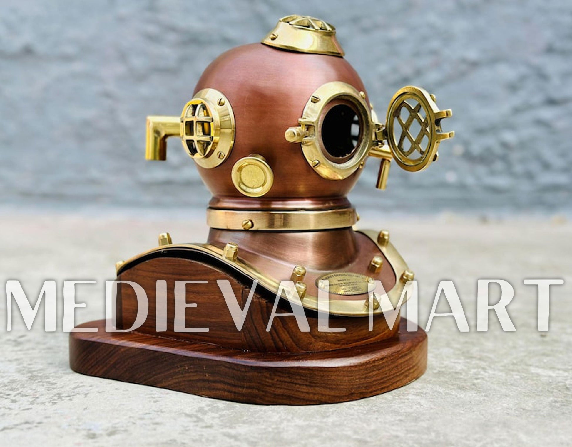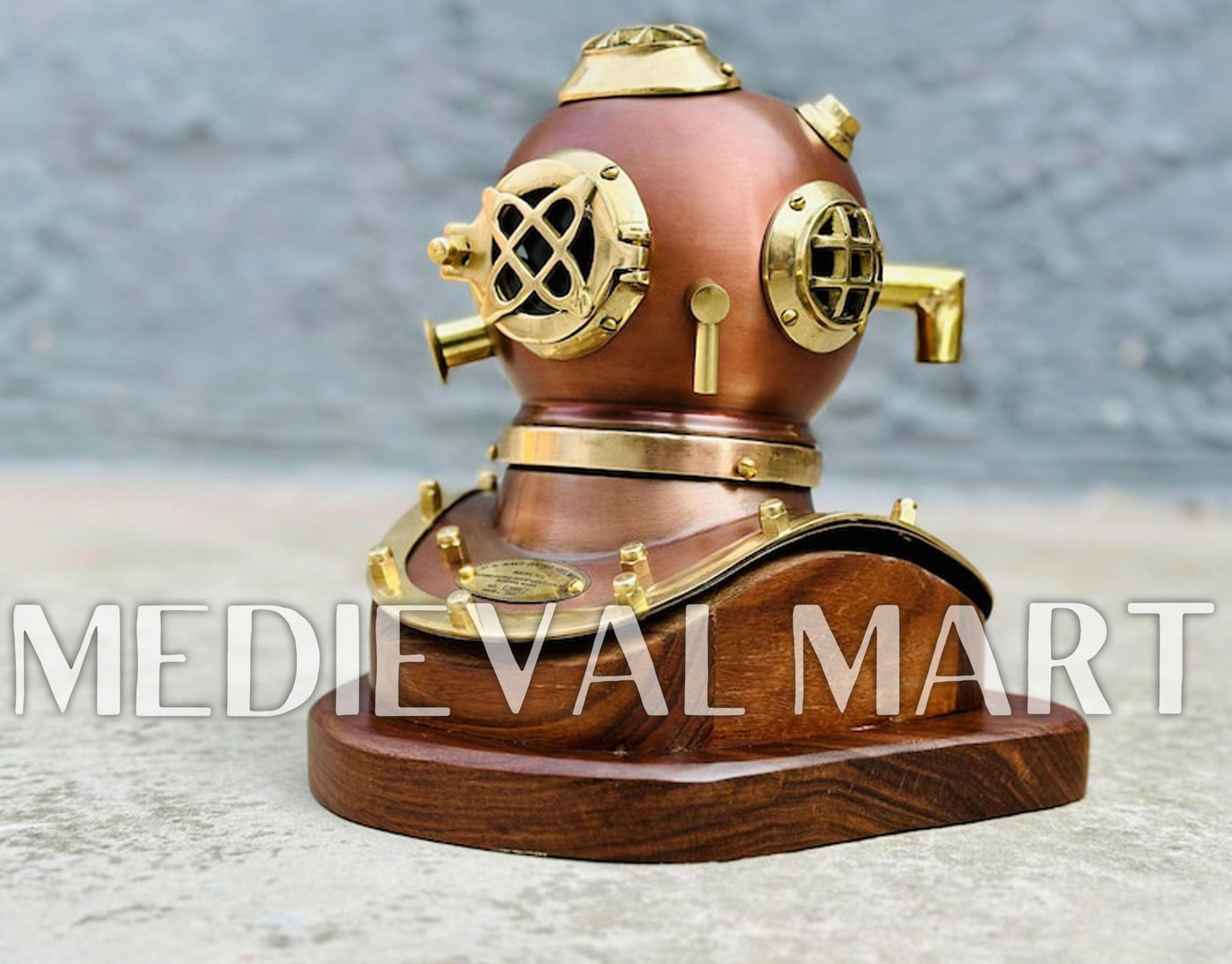 Le casque de plongée marron de 6 pouces est une réplique compacte et magnifiquement fabriquée de l’équipement de plongée sous-marine classique. Avec sa finition marron rustique et ses détails minutieux, ce casque miniature est idéal pour les passionnés de nautisme, les collectionneurs, ou comme pièce décorative unique pour un bureau ou une étagère. Sa petite taille en fait un cadeau parfait ou un élément décoratif pour tout intérieur à thème maritime.