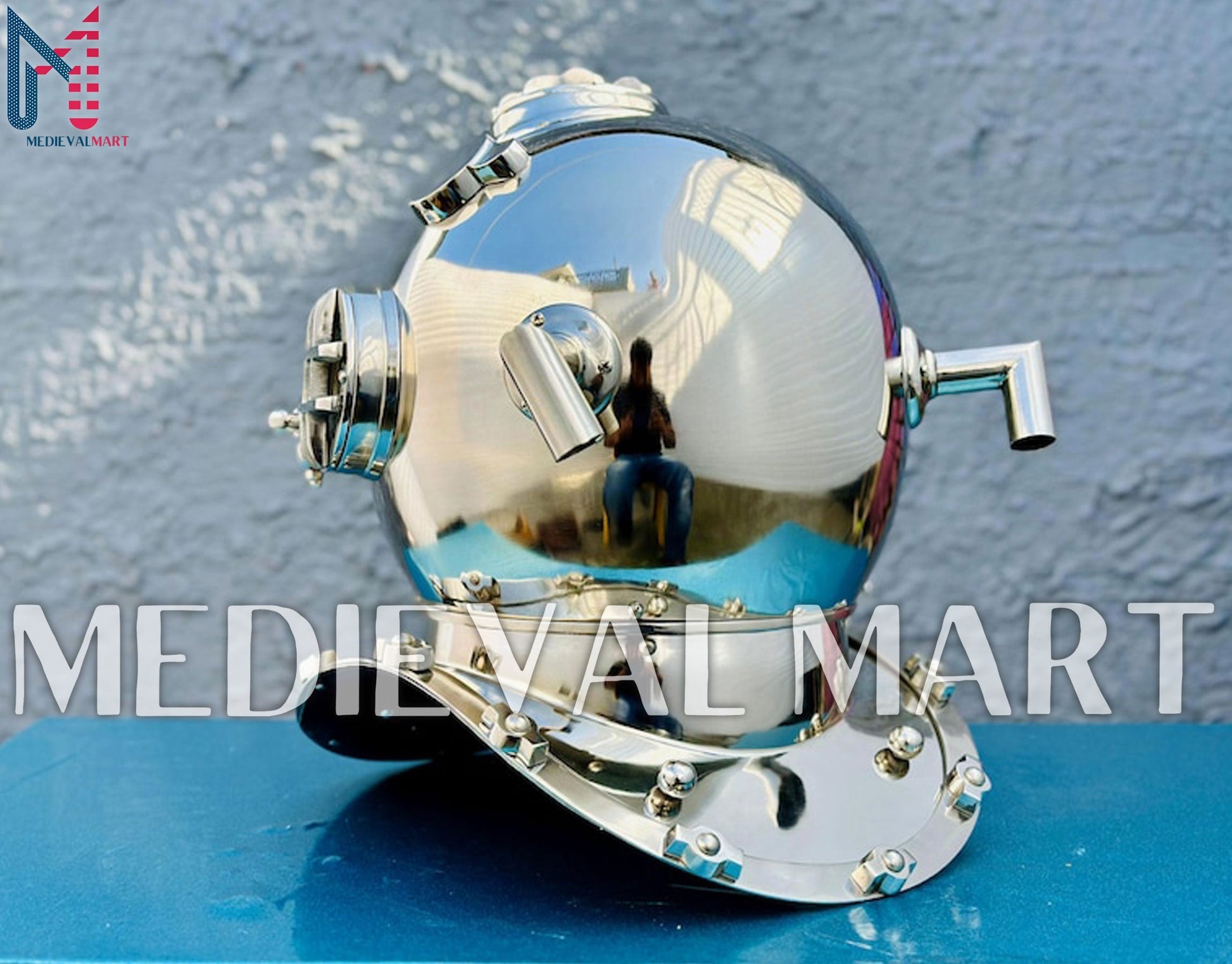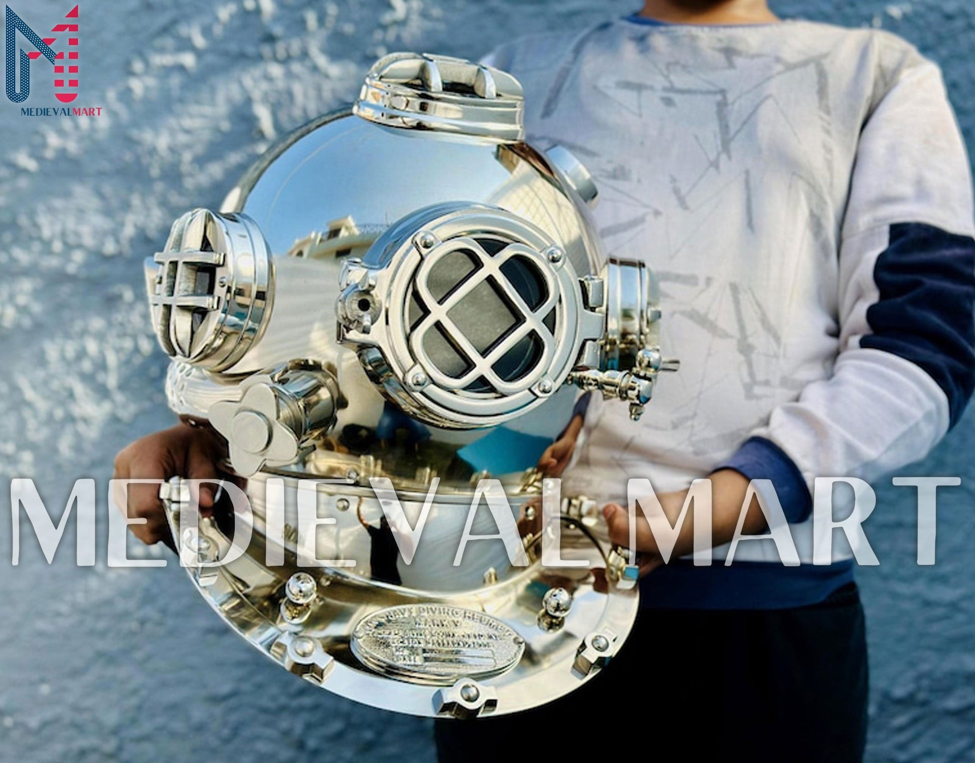 Le casque de plongée chromé MEDIEVALMART est une superbe reproduction d’équipement maritime vintage, idéale pour les collectionneurs, les passionnés de nautisme ou comme pièce décorative exceptionnelle.