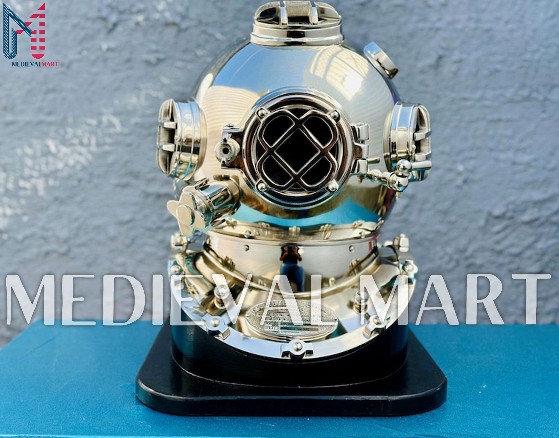 Fabriqué à la main avec une finition chromée brillante, ce casque capture parfaitement l’esprit et l’élégance des anciens casques de plongée en eaux profondes. Monté sur un socle en bois robuste, il devient un véritable objet d’art, parfait comme pièce maîtresse de décoration pour une maison, un bureau, un restaurant ou un espace à thème nautique.