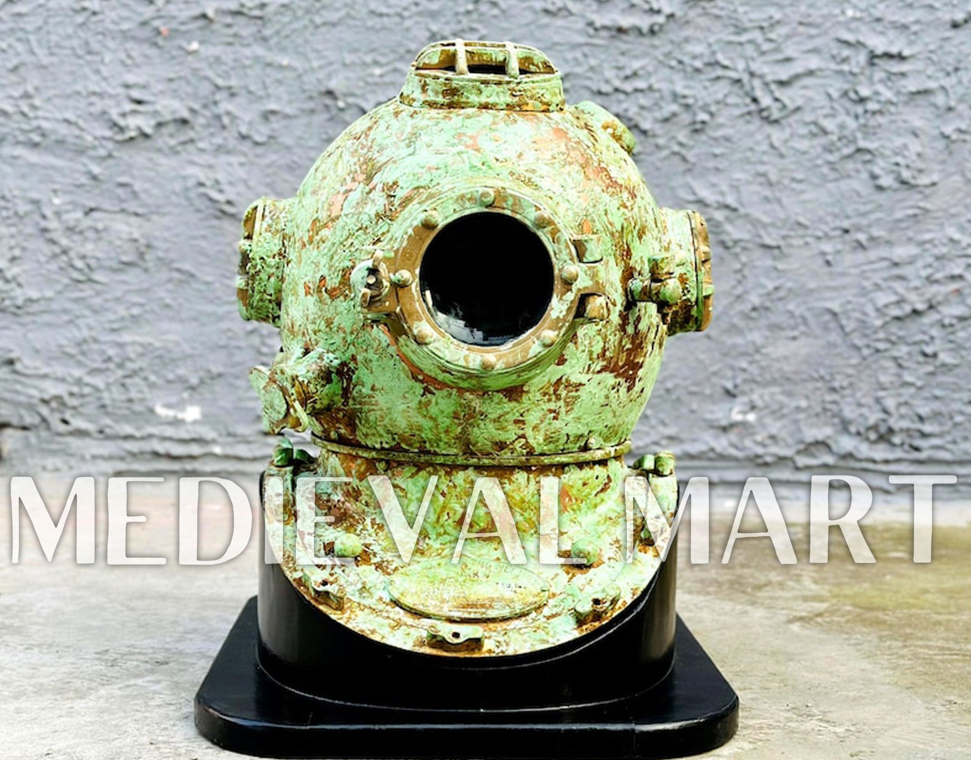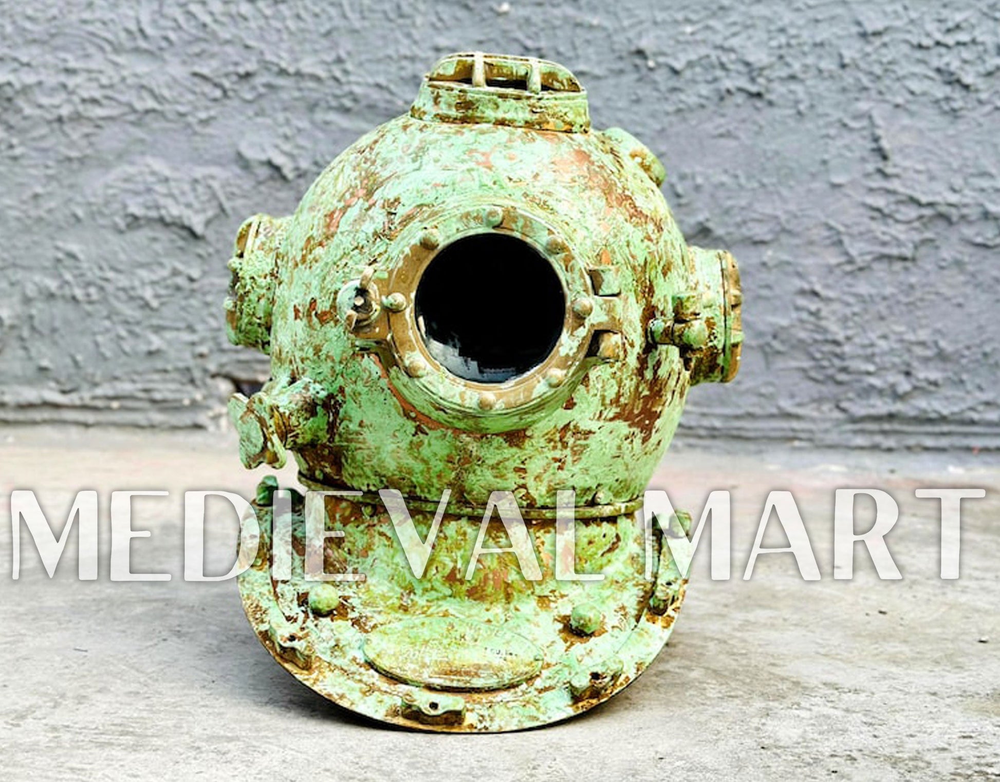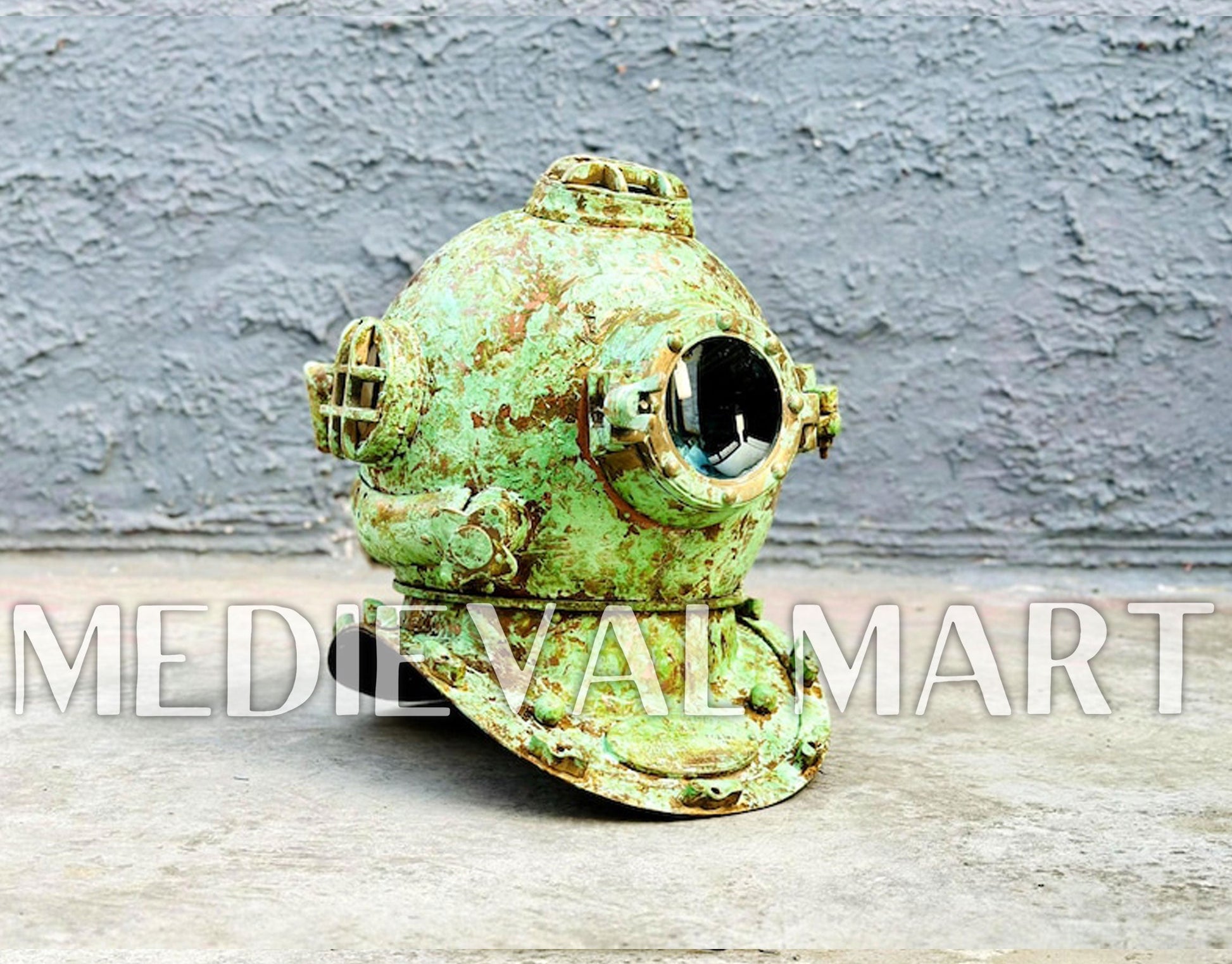 - Finish: Rusty Lite Green Finish Diving Helmet