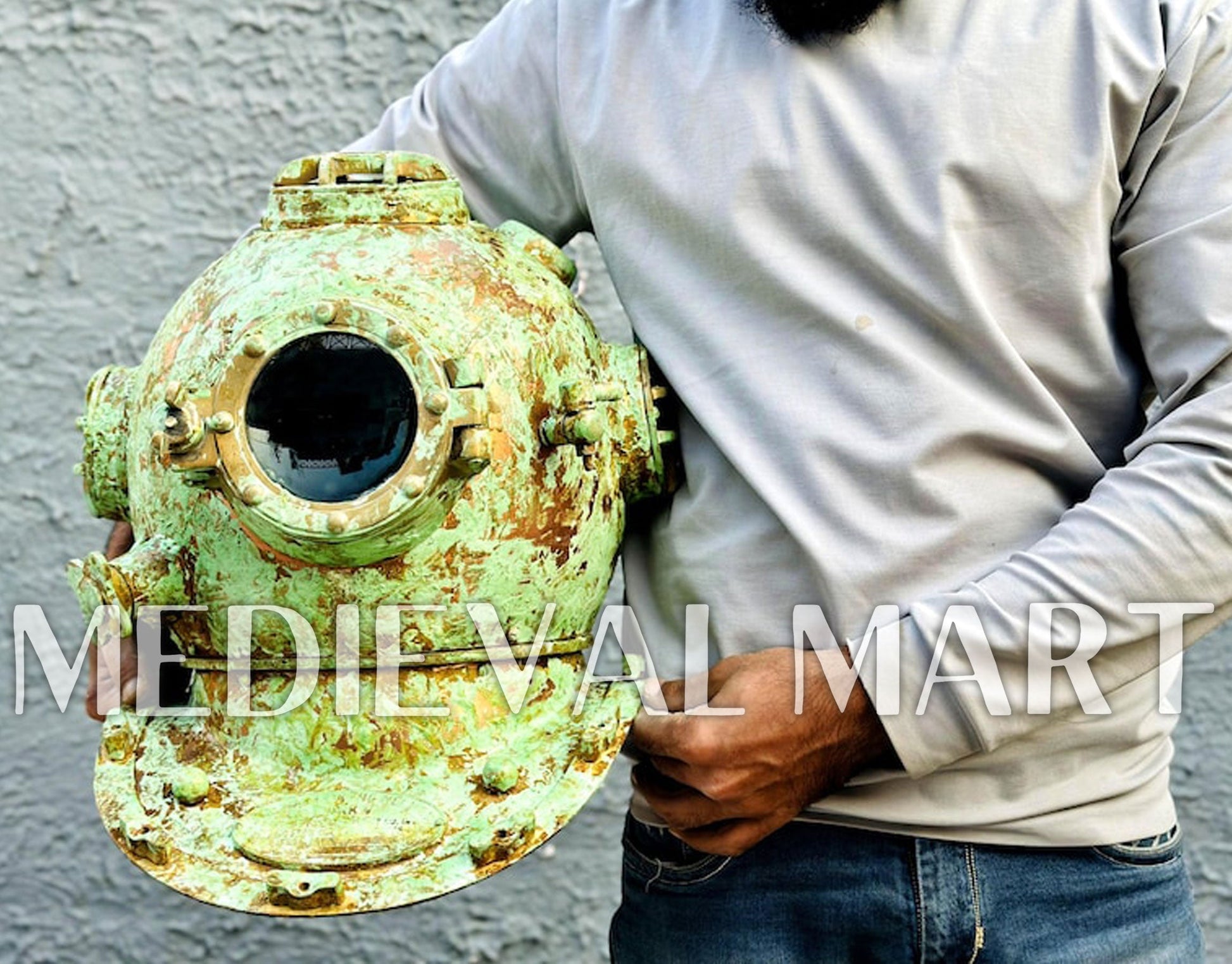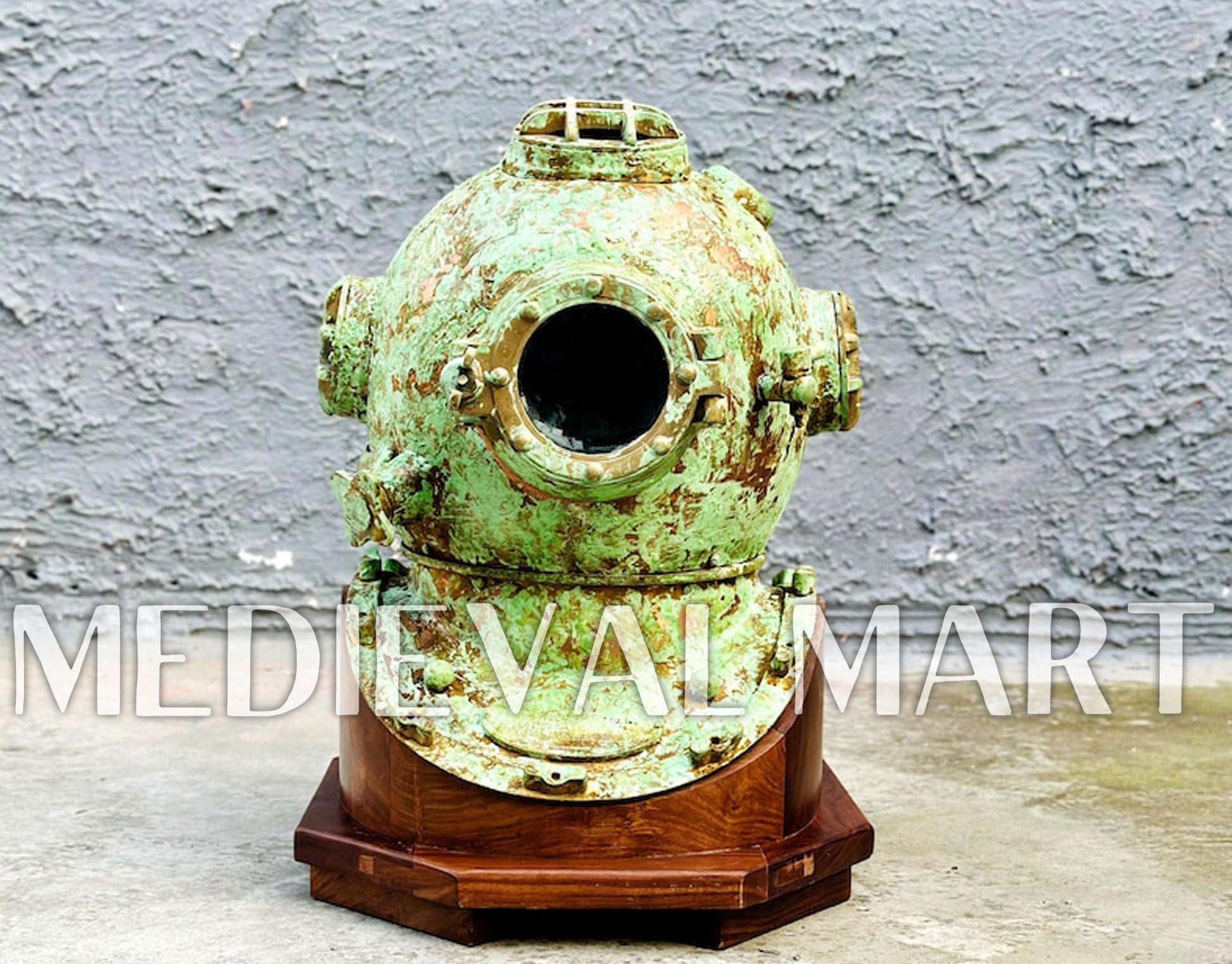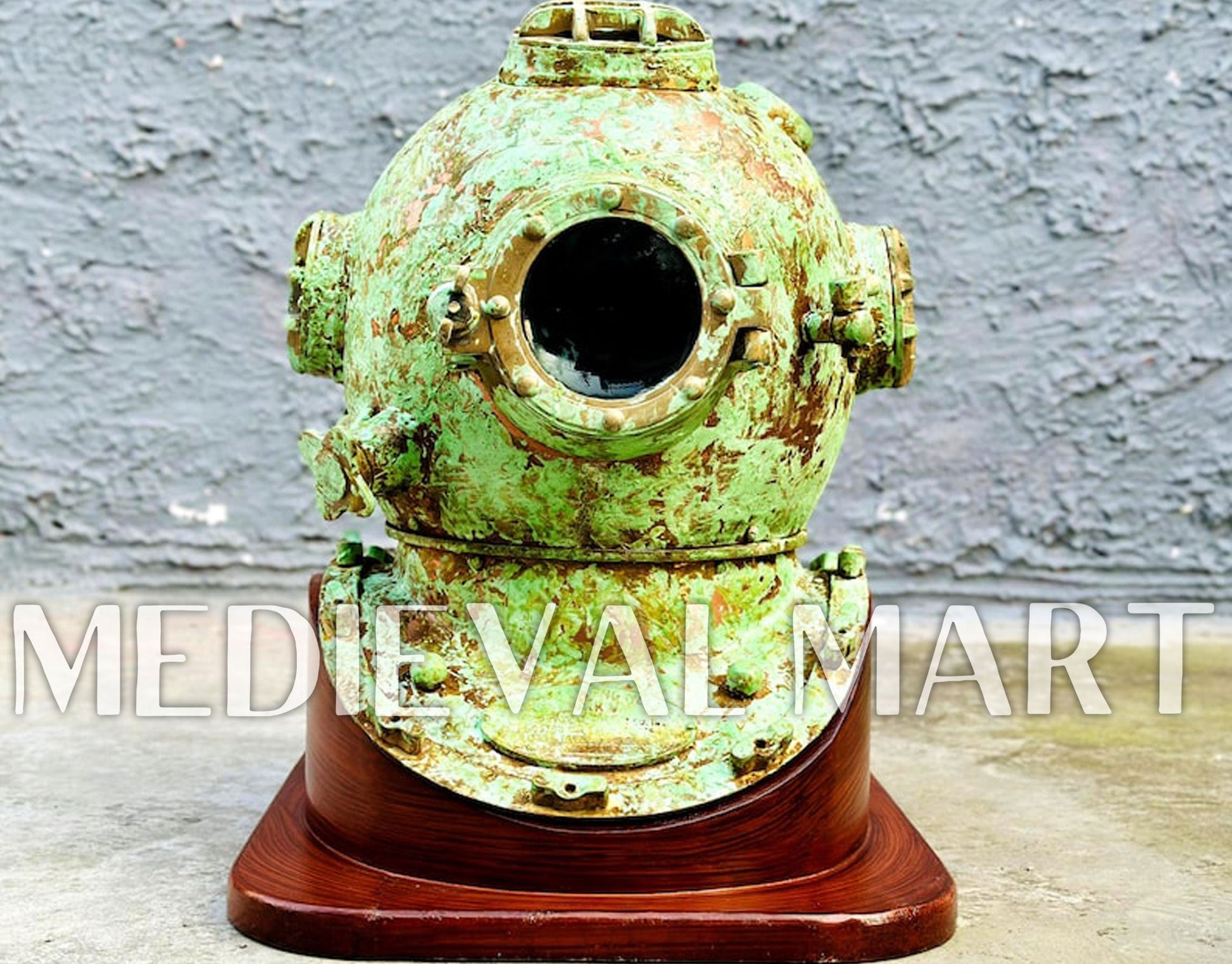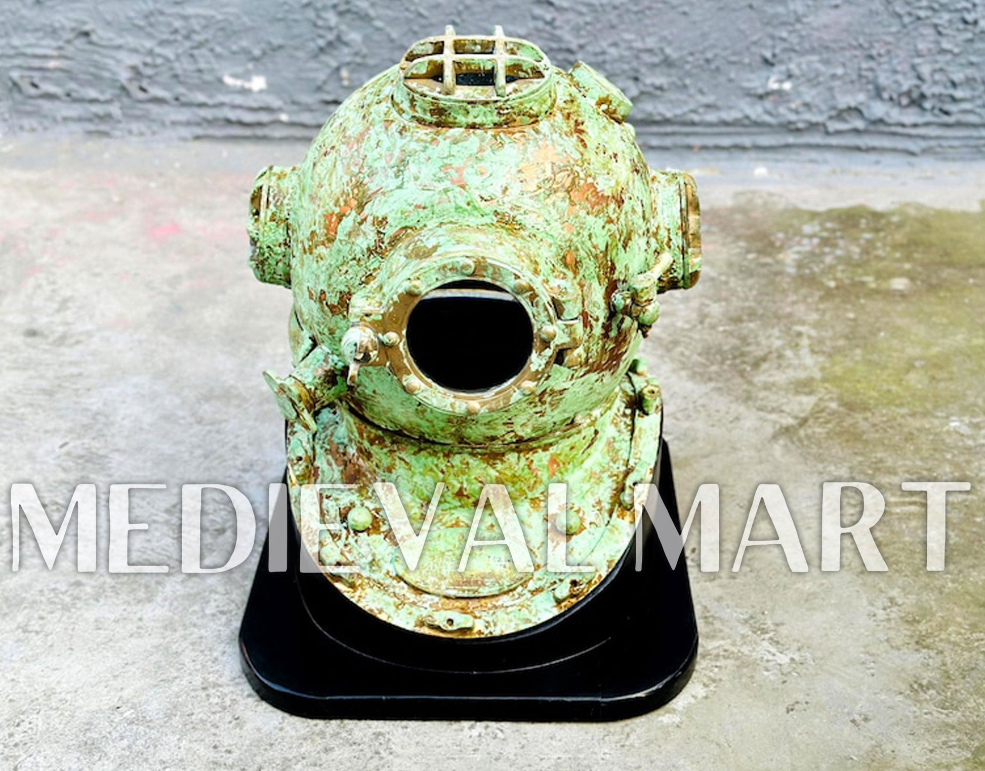 - Finish: Rusty Lite Green Finish Diving Helmet