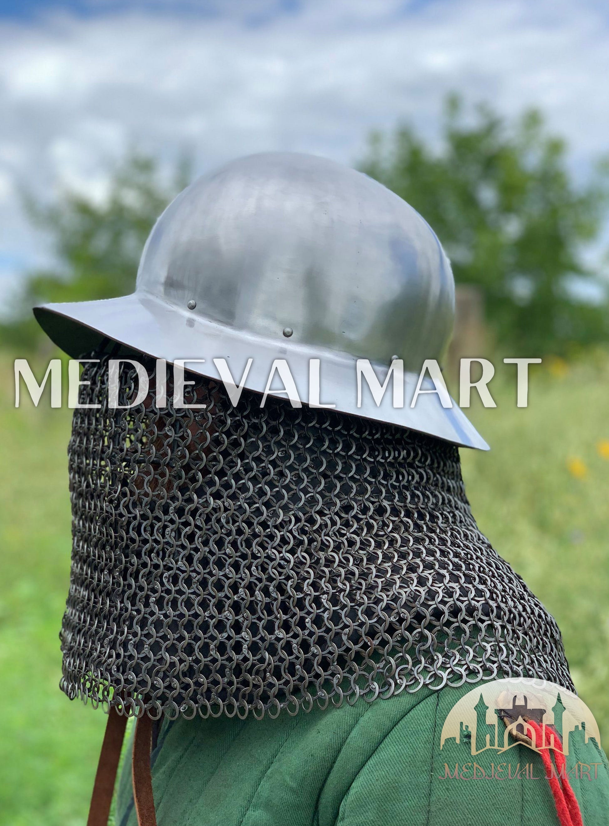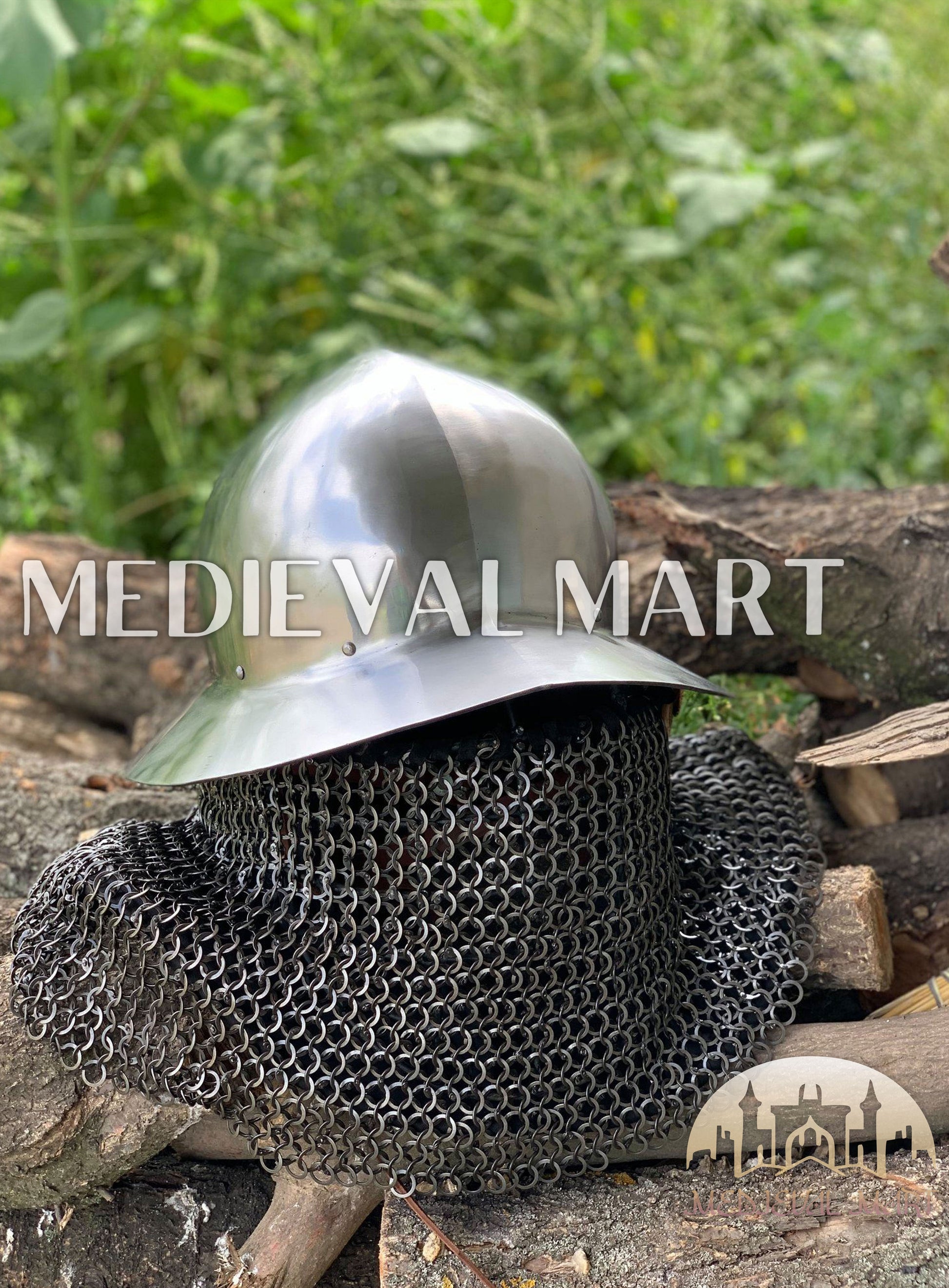 Tenez-Vous Droit Comme Les Fantassins D’Autrefois Avec Le Casque Celleta Kettle MEDIEVALMART, Une Icône Robuste De La Guerre Médiévale Réinventée Pour Le Guerrier Moderne. Forgé Pour Les Hommes D’Acier Et De Courage, Ce Casque De Combat Associe La Large Protection À Large Bord Du Style Kettle À La Défense Redoutable De La Cotte De Mailles Retombante — Protégeant La Tête Et Le Cou Contre La Lame Et Le Feu.