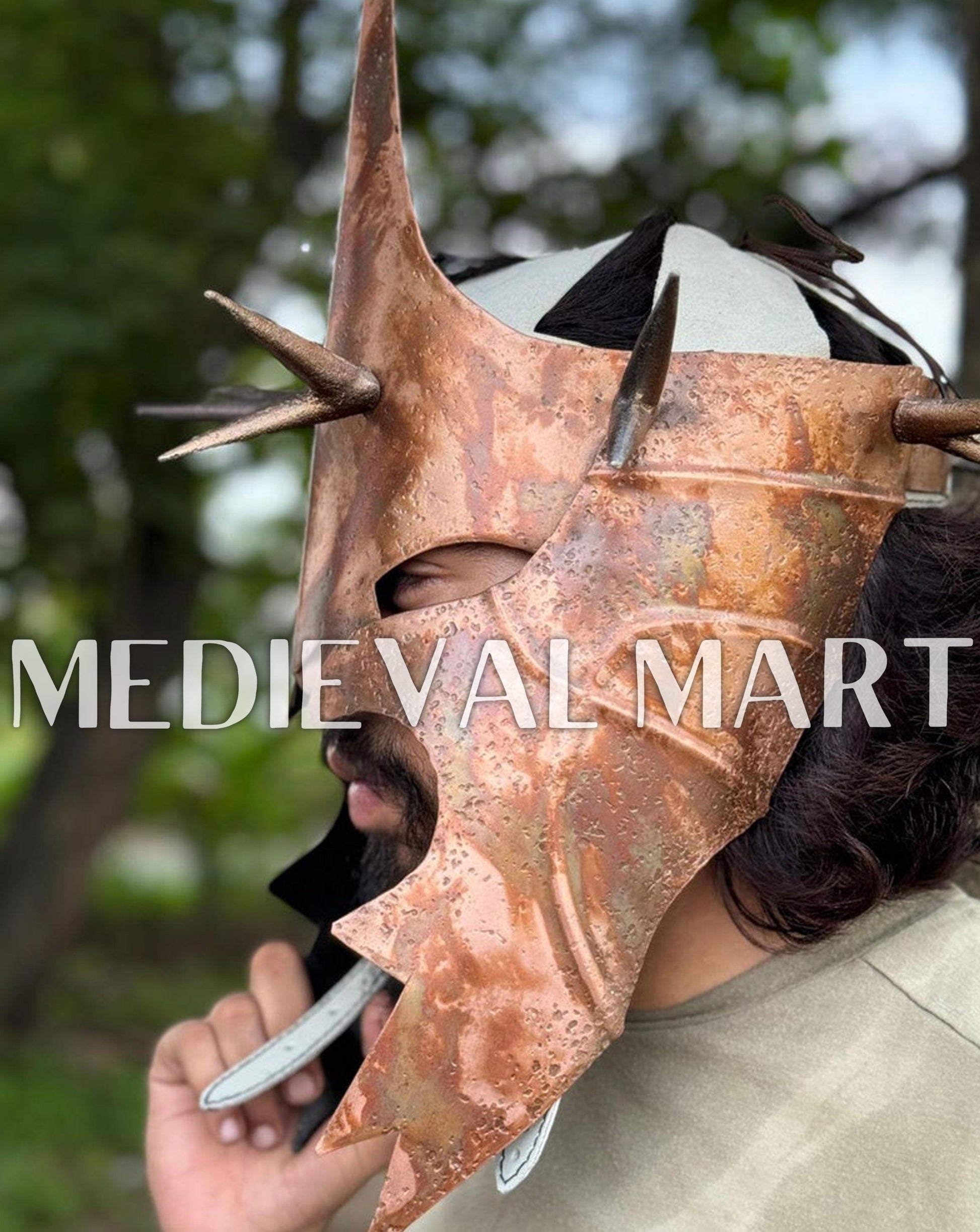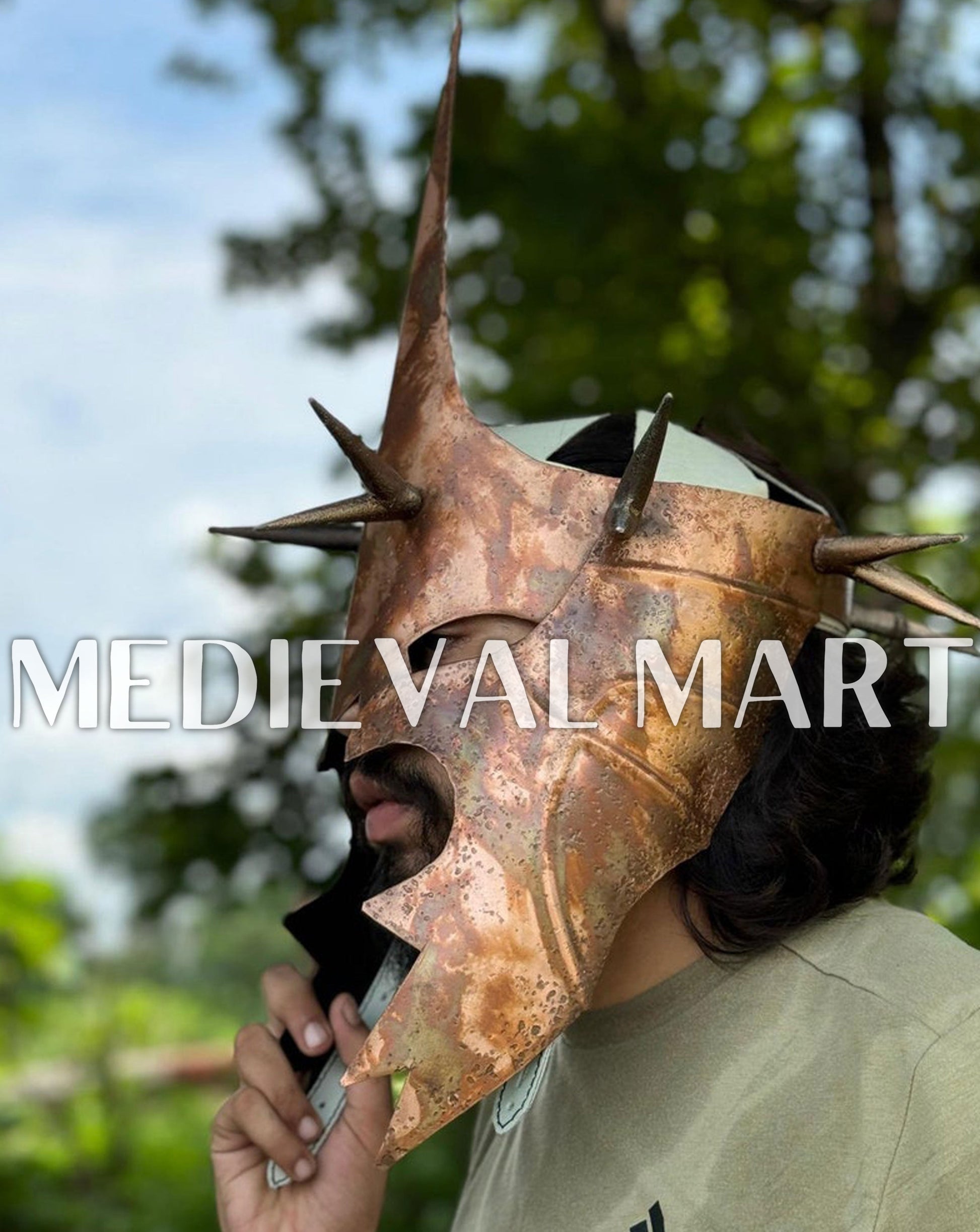 Révélez la majesté sombre des Spectres de l’Anneau avec ce casque Nazgûl à finition bronze antique, inspiré des serviteurs spectraux de Sauron dans Le Seigneur des Anneaux. Doté d’une finition bronze vieillie envoûtante, ce casque dégage une présence menaçante et intemporelle. Parfait pour les fans, les cosplayers ou les collectionneurs, il constitue une pièce remarquable pour recréer l’aura terrifiante des Nazgûl.