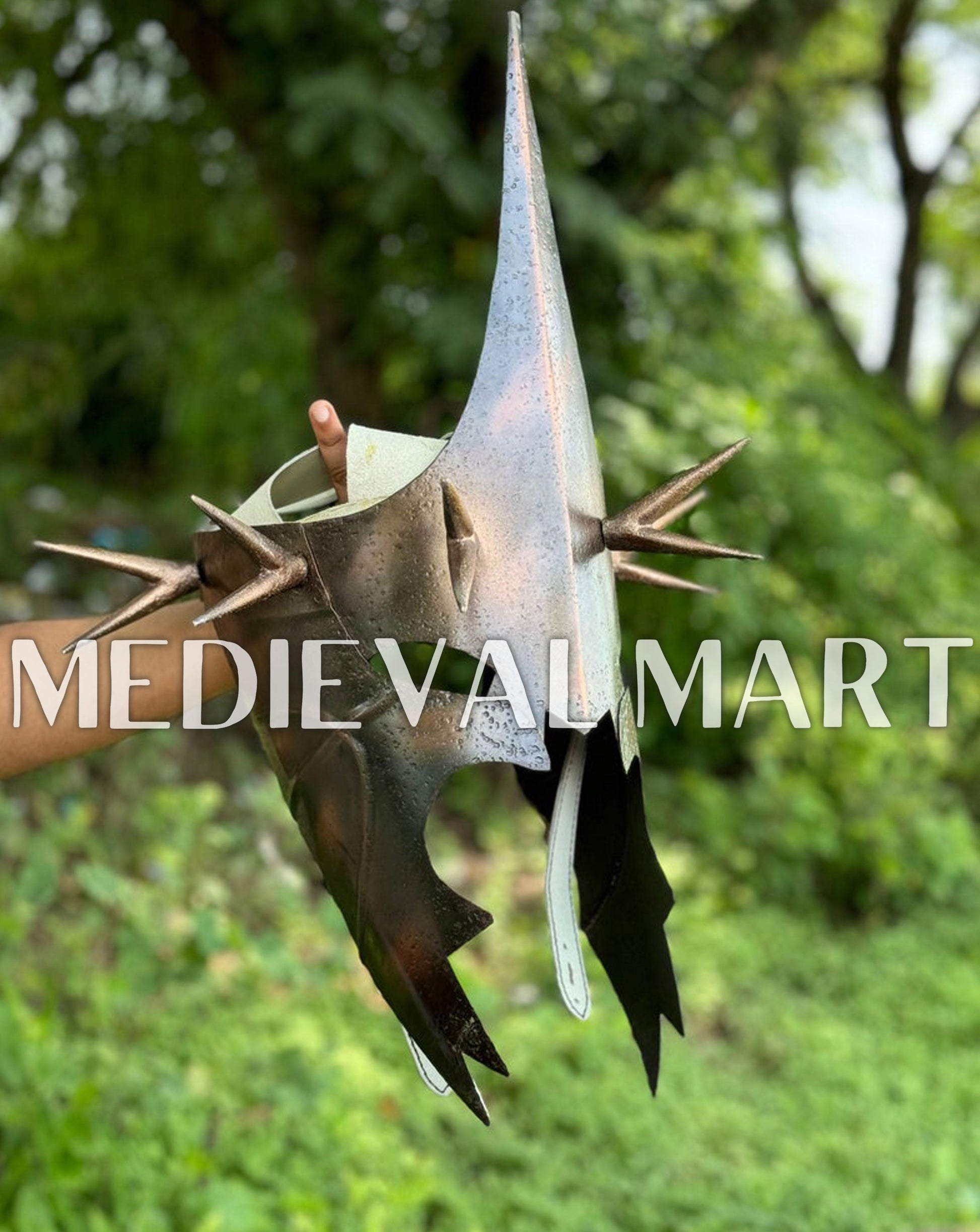 Incarnez la présence terrifiante des Spectres de l’Anneau avec ce casque Nazgûl à finition noire antique, inspiré des serviteurs les plus redoutés de Sauron dans Le Seigneur des Anneaux. Doté de détails finement travaillés et d’une finition noire vieillie, ce casque dégage une aura sombre et menaçante. Idéal pour les collectionneurs, les fans ou les cosplayers, il constitue une pièce incontournable pour recréer la puissance inquiétante des Nazgûl.