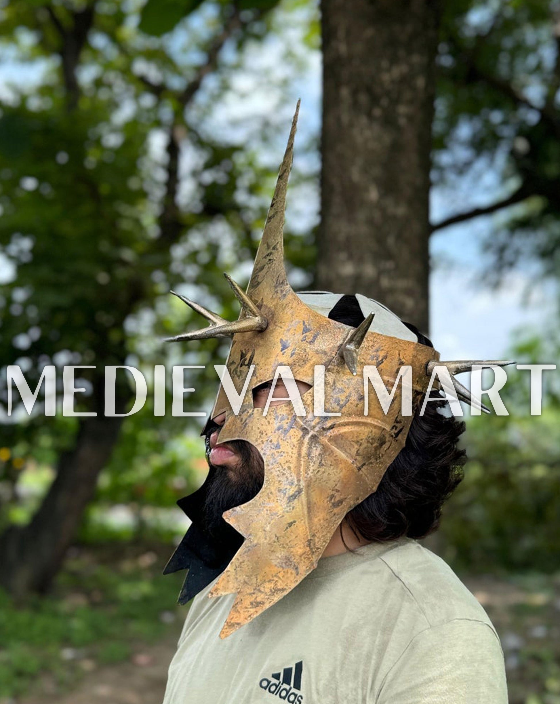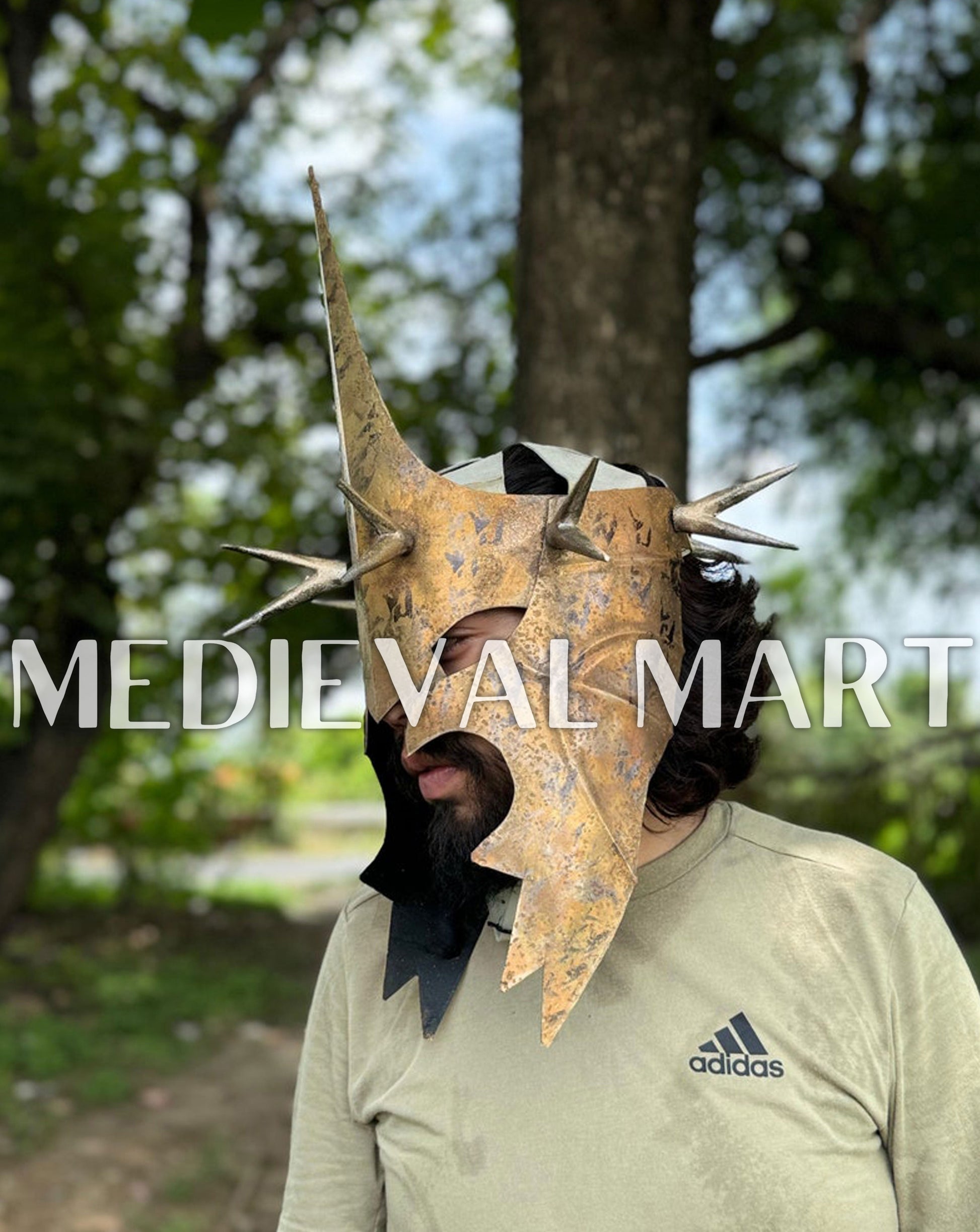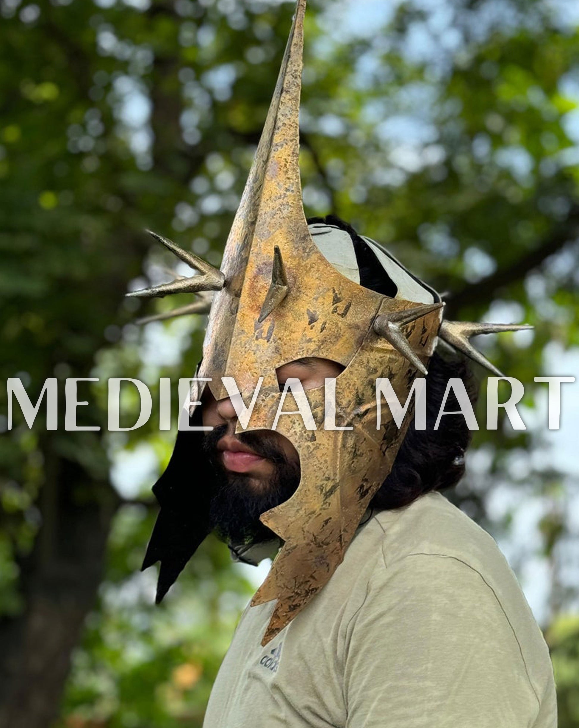 Incarnez l’élégance sombre et la puissance terrifiante des serviteurs les plus redoutés de la Terre du Milieu avec ce casque Nazgûl à finition or antique, inspiré des Spectres de l’Anneau du Seigneur des Anneaux. Doté d’un travail artisanal détaillé et d’une finition dorée majestueuse, ce casque allie mystère, autorité et présence imposante. Une pièce incontournable pour les collectionneurs, les cosplayers et les passionnés de l’univers épique de Tolkien.