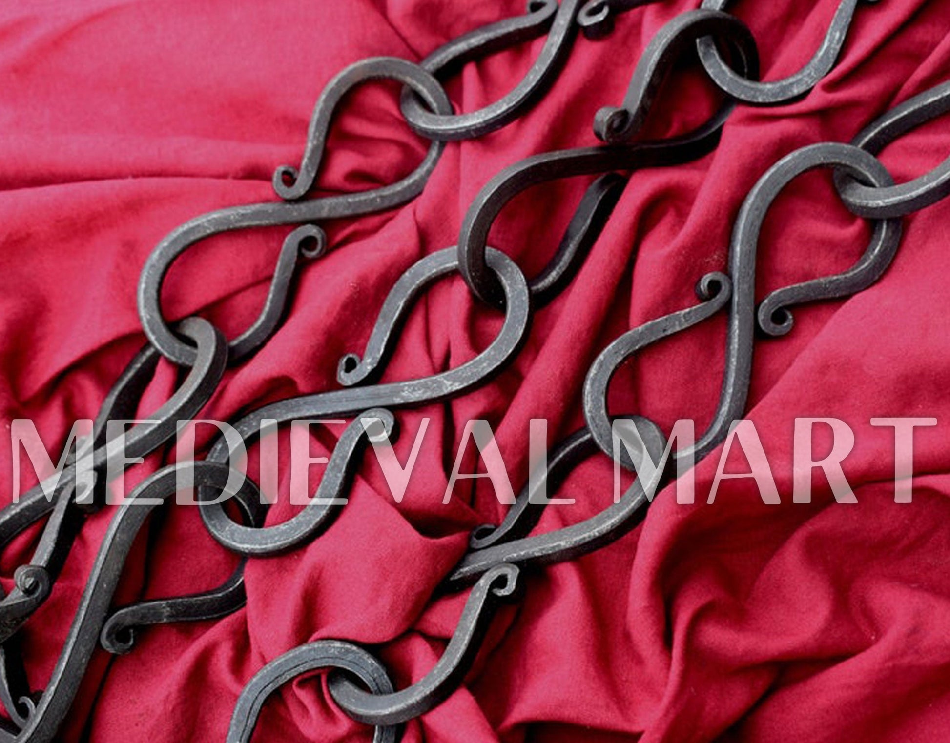 Chaque maillon est façonné en fer forgé, offrant une résistance exceptionnelle et un aspect historique fidèle. Le crochet en forme de S, typique des usages médiévaux, permet une utilisation polyvalente : suspension d’équipements, accessoires de camp, éléments de costume ou décoration d’inspiration historique.
