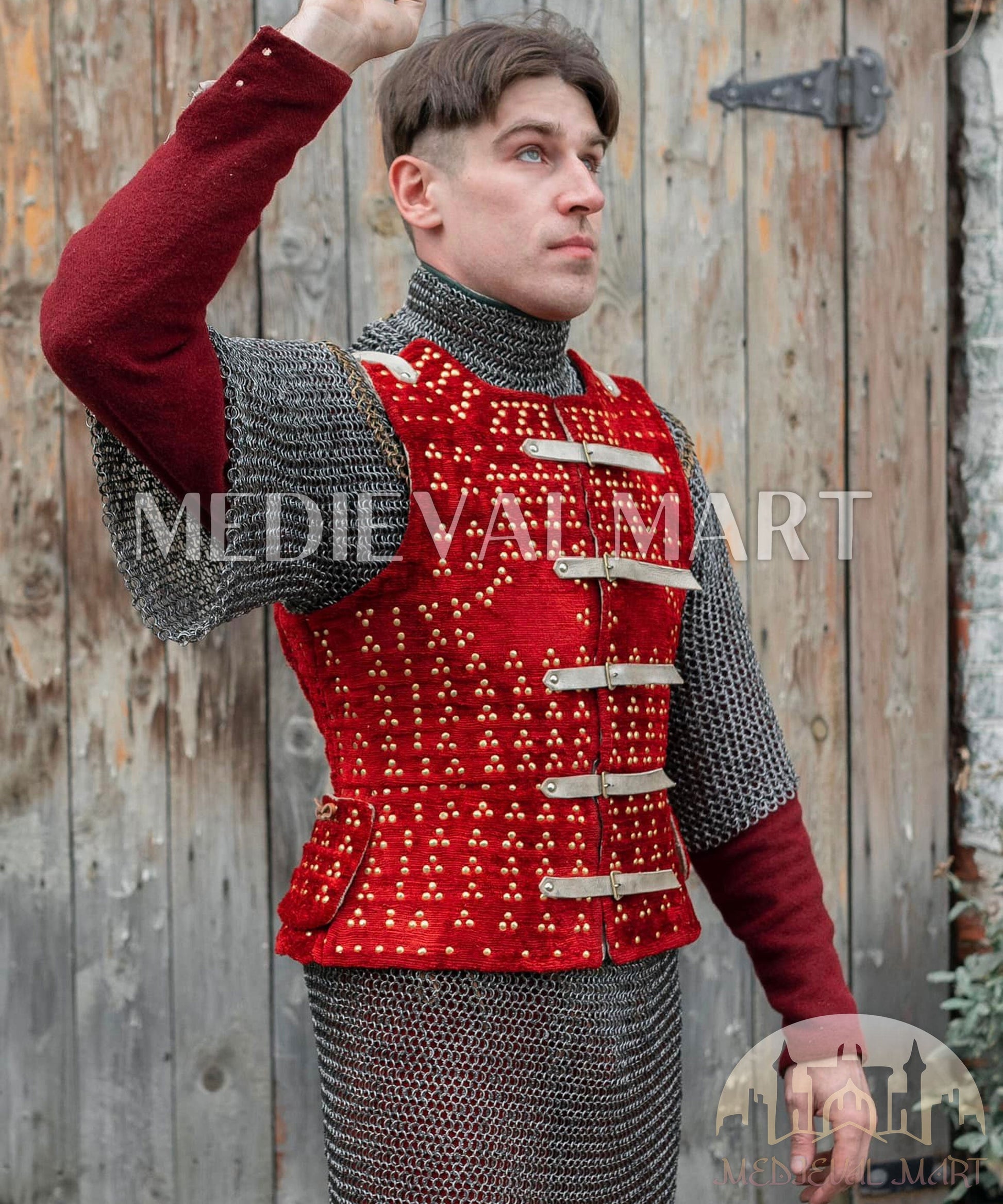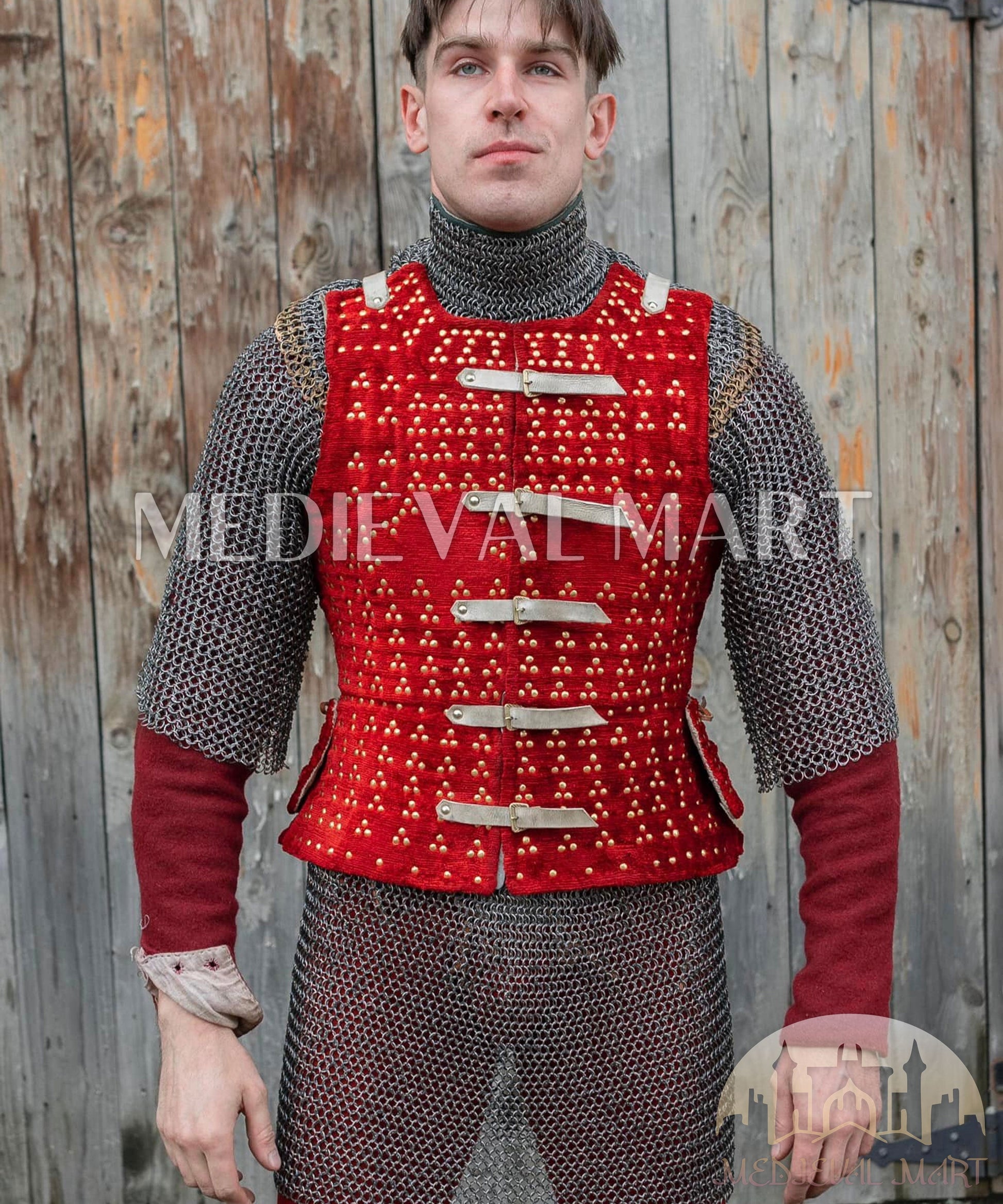 MEDIEVALMART Édition Combo Renaissance – Brigandine PREMIUM Rouge “MOAB” avec Chemise de Mailles Rivetées