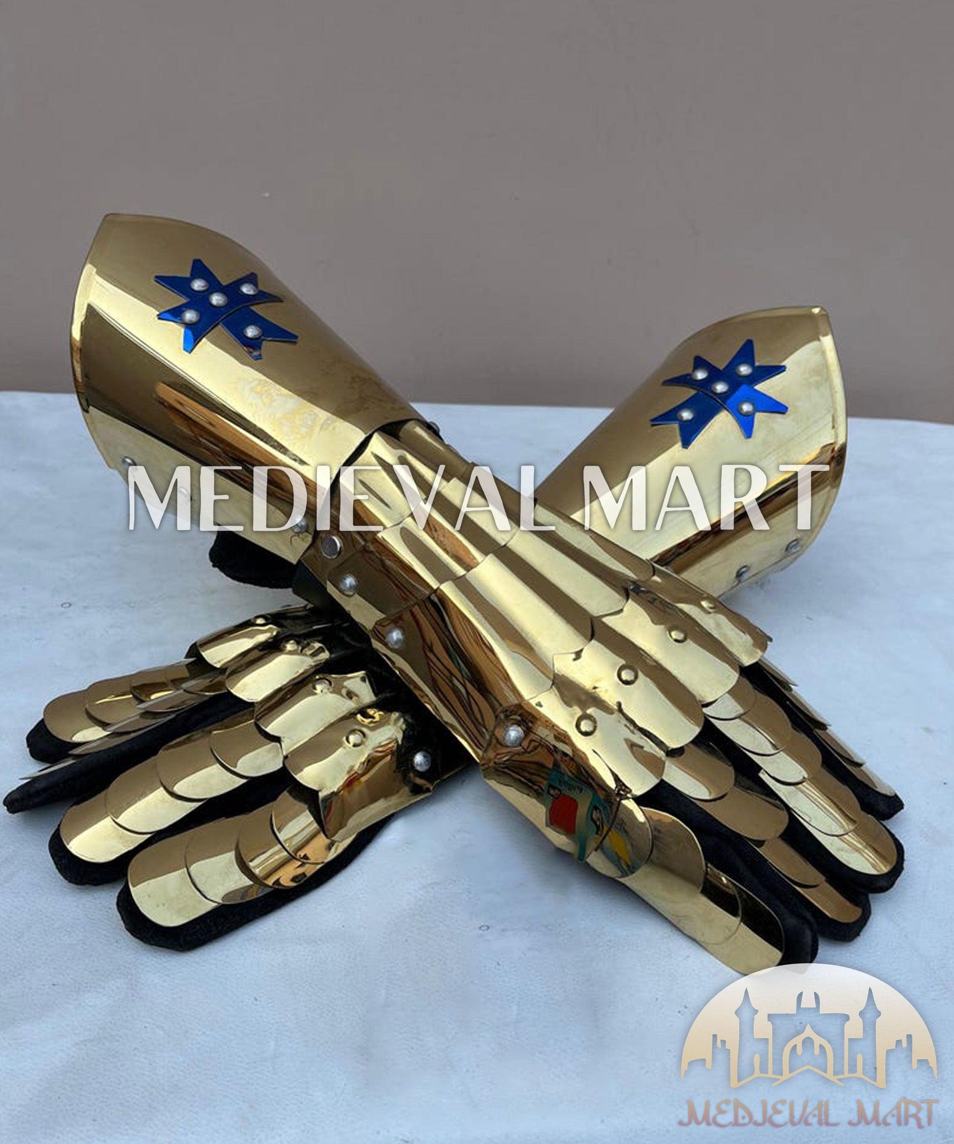 MEDIEVALMART FR Ensemble De Gantelets Dorés Inspirés De Sauron Witcher LOTR Avec Étoile Bleue – Gants D’Armure Cosplay