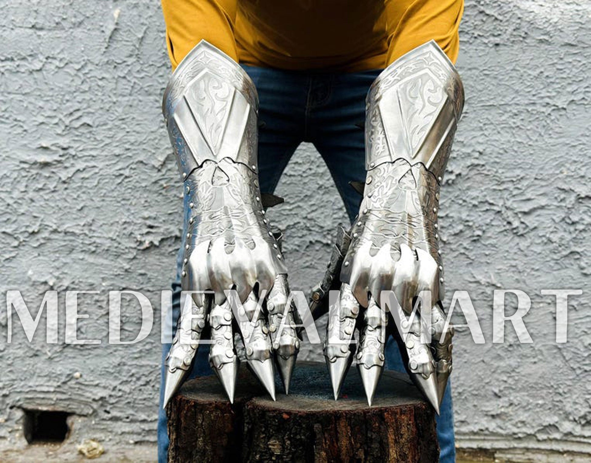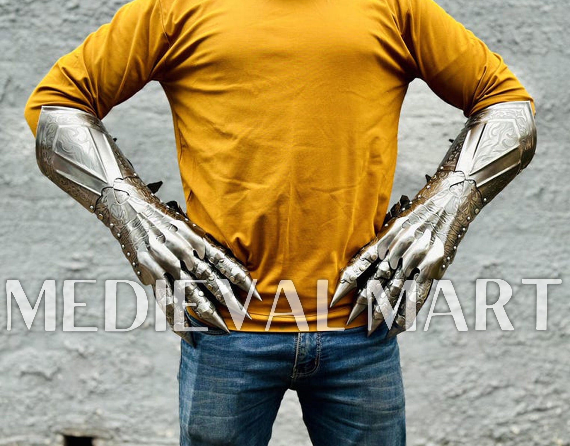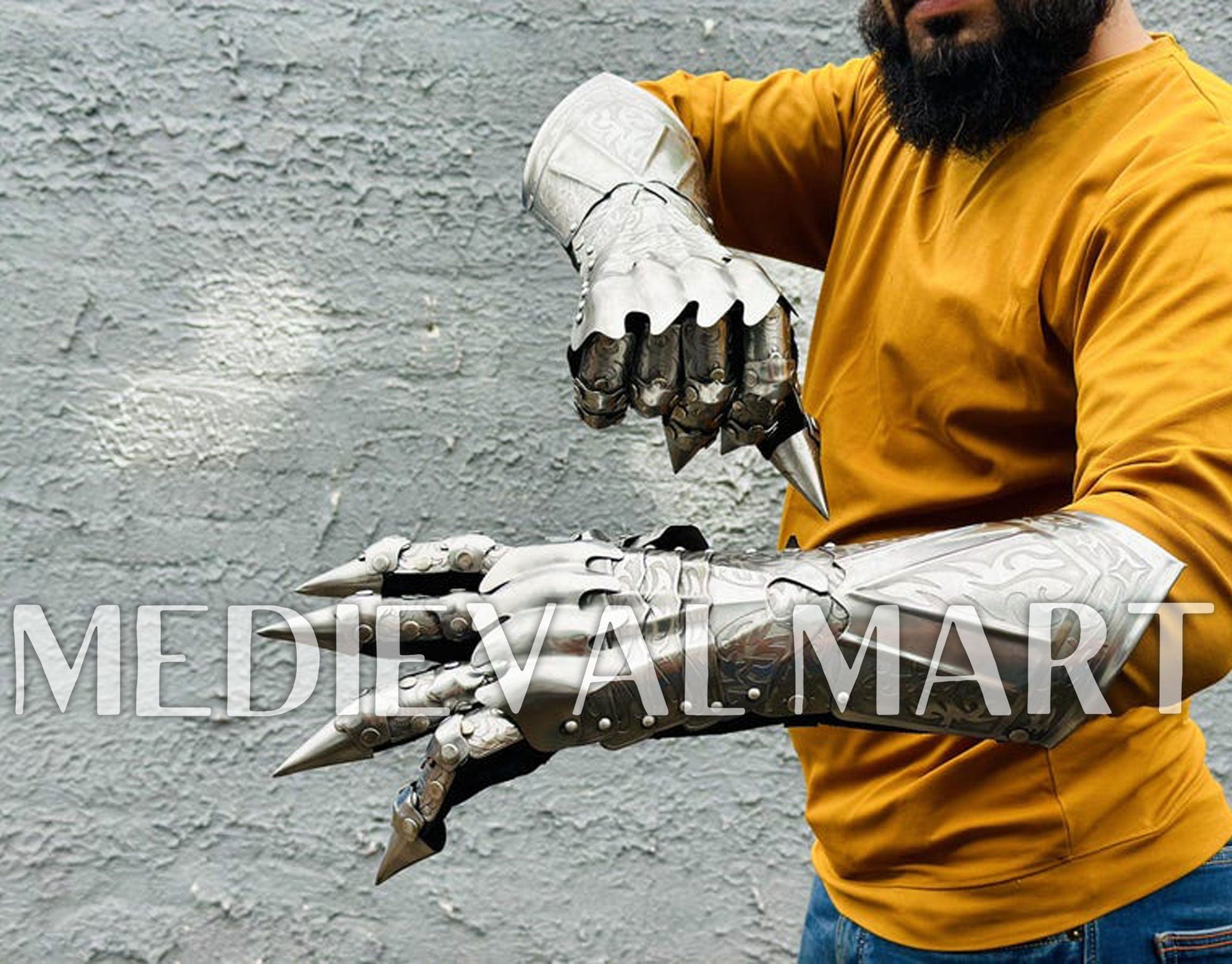Améliorez Votre Collection D’Armures Médiévales Avec L’Ensemble De Gants D’Armure Gothiques En Acier De Chevalier Médiéval De Medieval Mart. Fabriqués Avec Expertise En Acier De Haute Qualité, Ces Gants Offrent Une Protection Supérieure Des Mains Tout En Conservant La Flexibilité Nécessaire Pour Le Combat Ou L’Exposition. Le Design Inspiré Du Style Gothique Présente Des Détails Complexes Et Des Plaques Articulées, Garantissant Un Équilibre Parfait Entre Résistance Et Mobilité. Idéal Pour Les Reconstitutions Historiques, Le LARP, Le Cosplay Ou Les Collectionneurs, Cet Ensemble D’Armure Incarnent La Puissance Et L’Élégance Des Chevaliers Médiévaux. Que Vous Maniiez Une Épée Ou Présentiez Votre Collection, Ces Gants En Acier Sont Un Indispensable Pour Tout Guerrier. Élevez Votre Équipement Médiéval Avec Cet Ensemble D’Armure Authentique Et Durable !