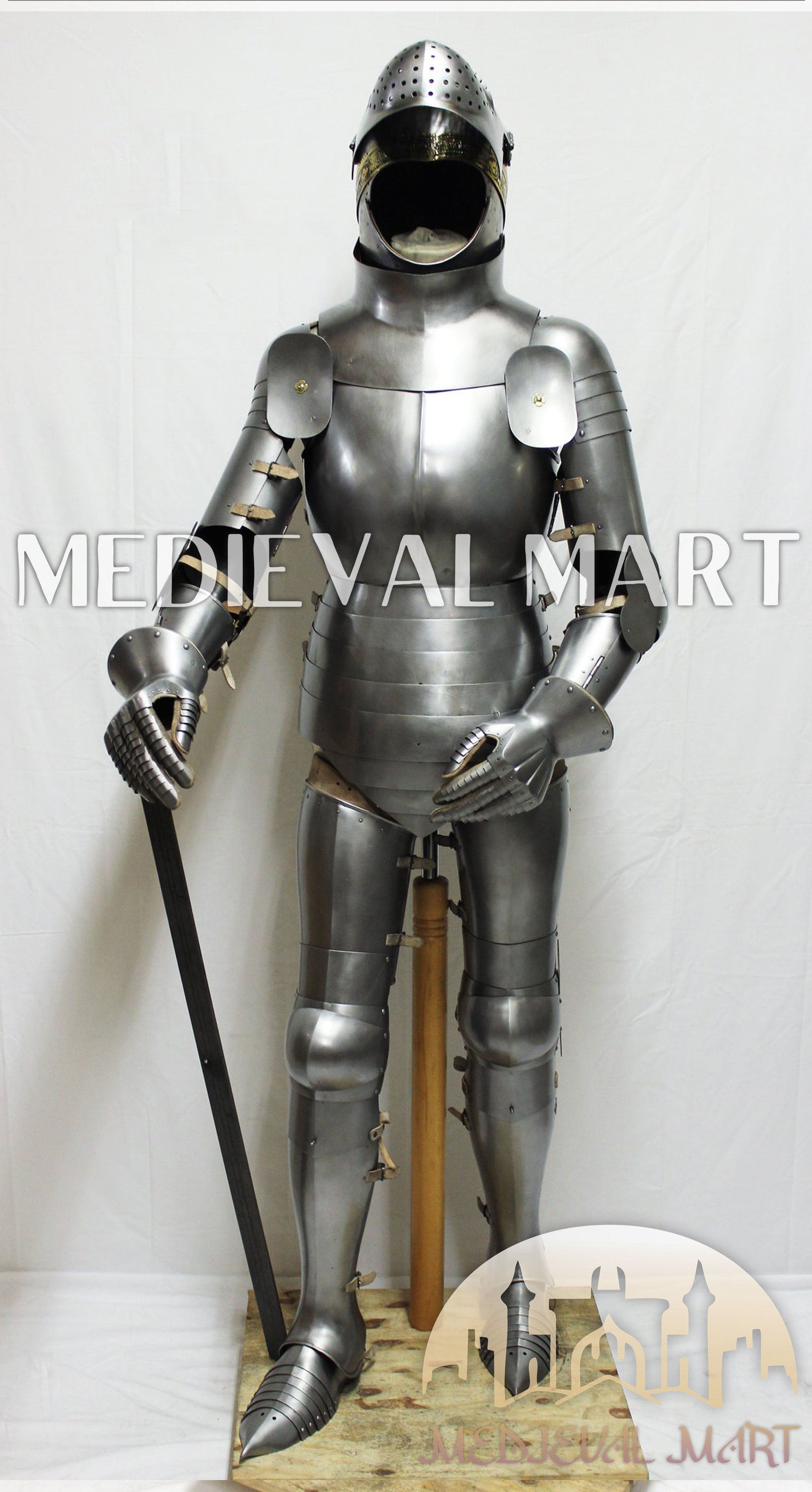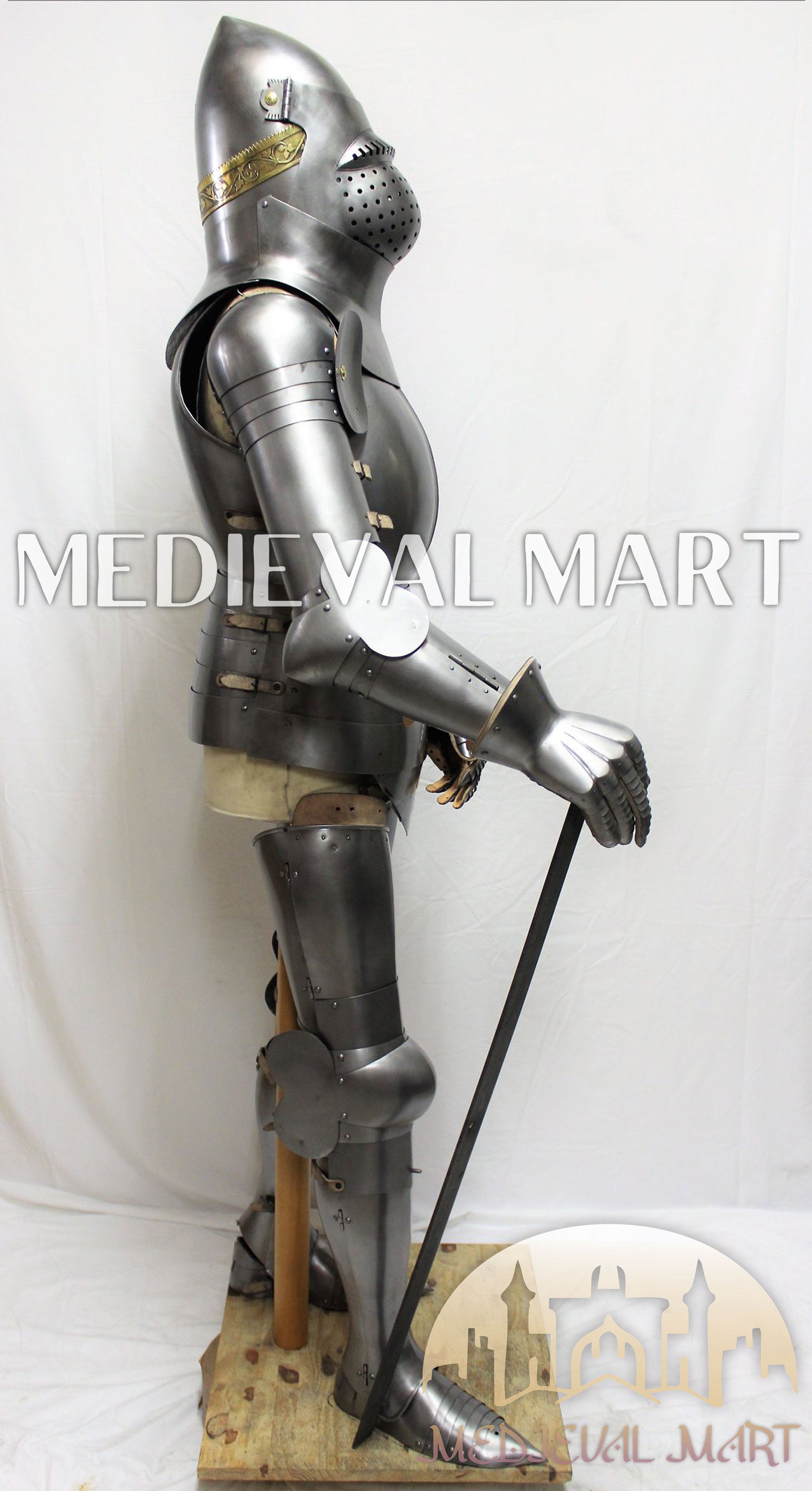 MEDIEVALMART FR Armure de Combat du XIVe Siècle – Ensemble Complet d’Armure de Buhurt avec Bassinet Klappvisor & Épée