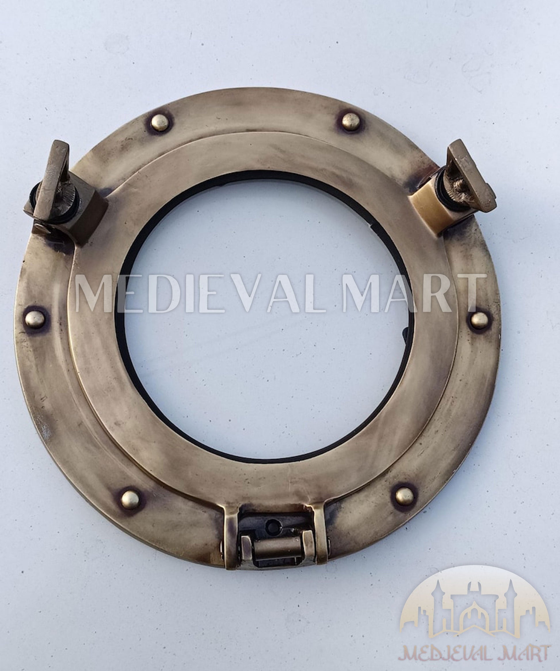 Apportez une touche authentique de charme maritime à votre intérieur avec le hublot de navire MEDIEVALMART à finition laiton antique. Fabriqué avec soin à partir d’aluminium robuste et de verre de qualité, ce hublot reflète parfaitement le design nautique traditionnel des navires anciens.