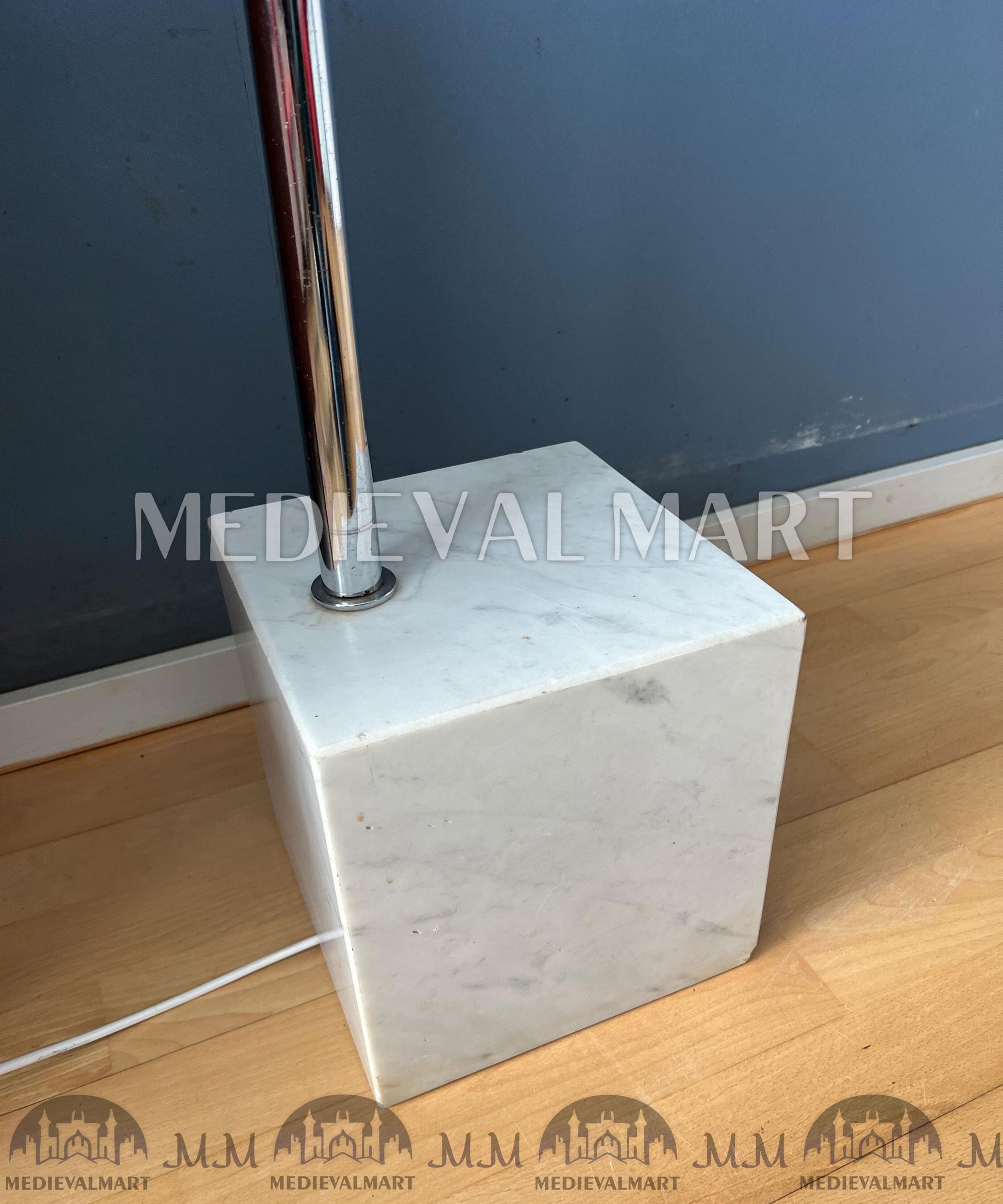 Apportez une élégance italienne intemporelle à votre intérieur avec le lampadaire arc vintage Guzzini Space Age MEDIEVALMART, une parfaite fusion entre l’innovation mid-century et l’esthétique futuriste des années 1970. Inspiré du célèbre mouvement du design italien Space Age, ce luminaire se distingue par son arc chromé élancé, son abat-jour champignon blanc en acrylique et sa base en marbre luxueuse assurant stabilité et raffinement.