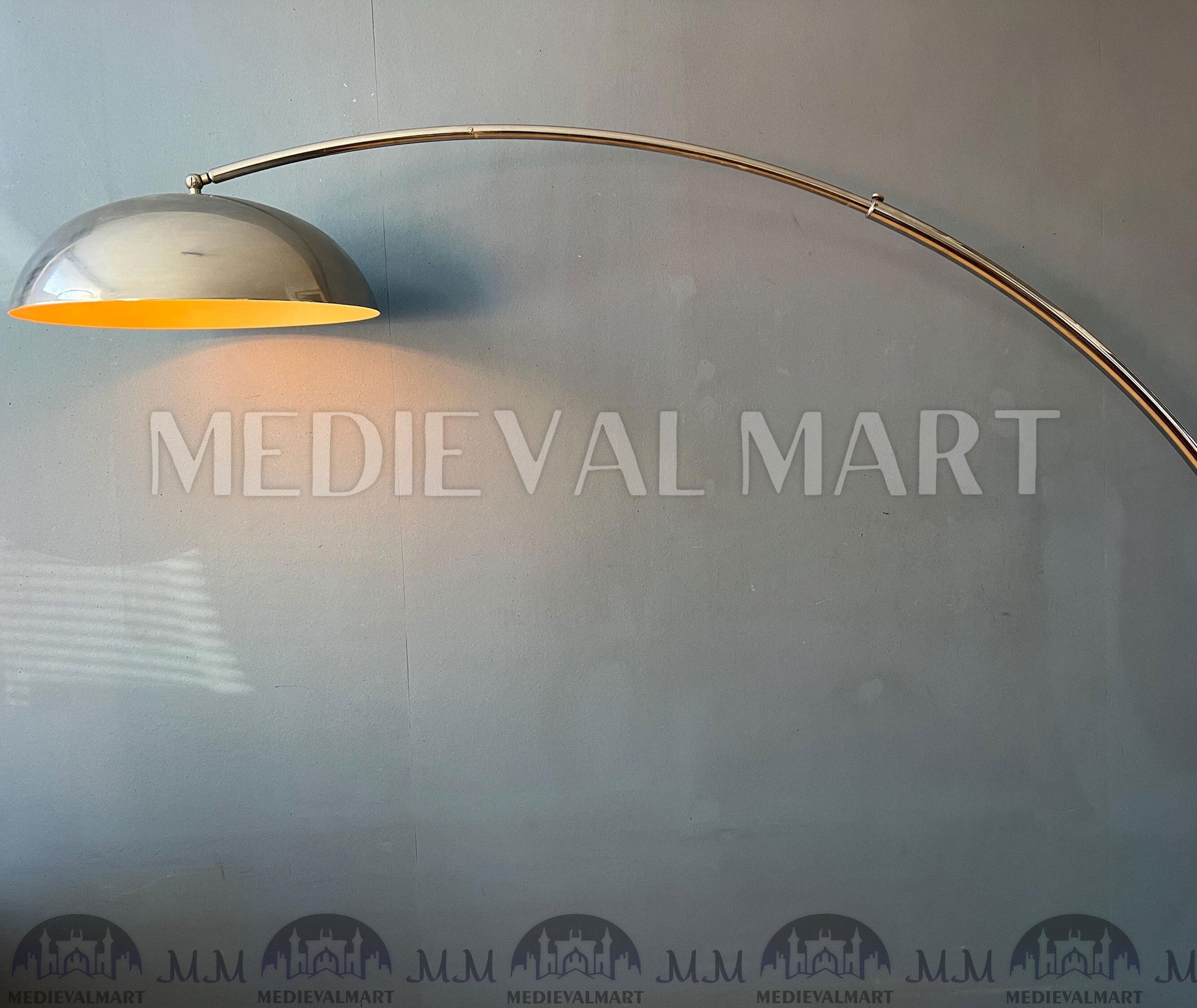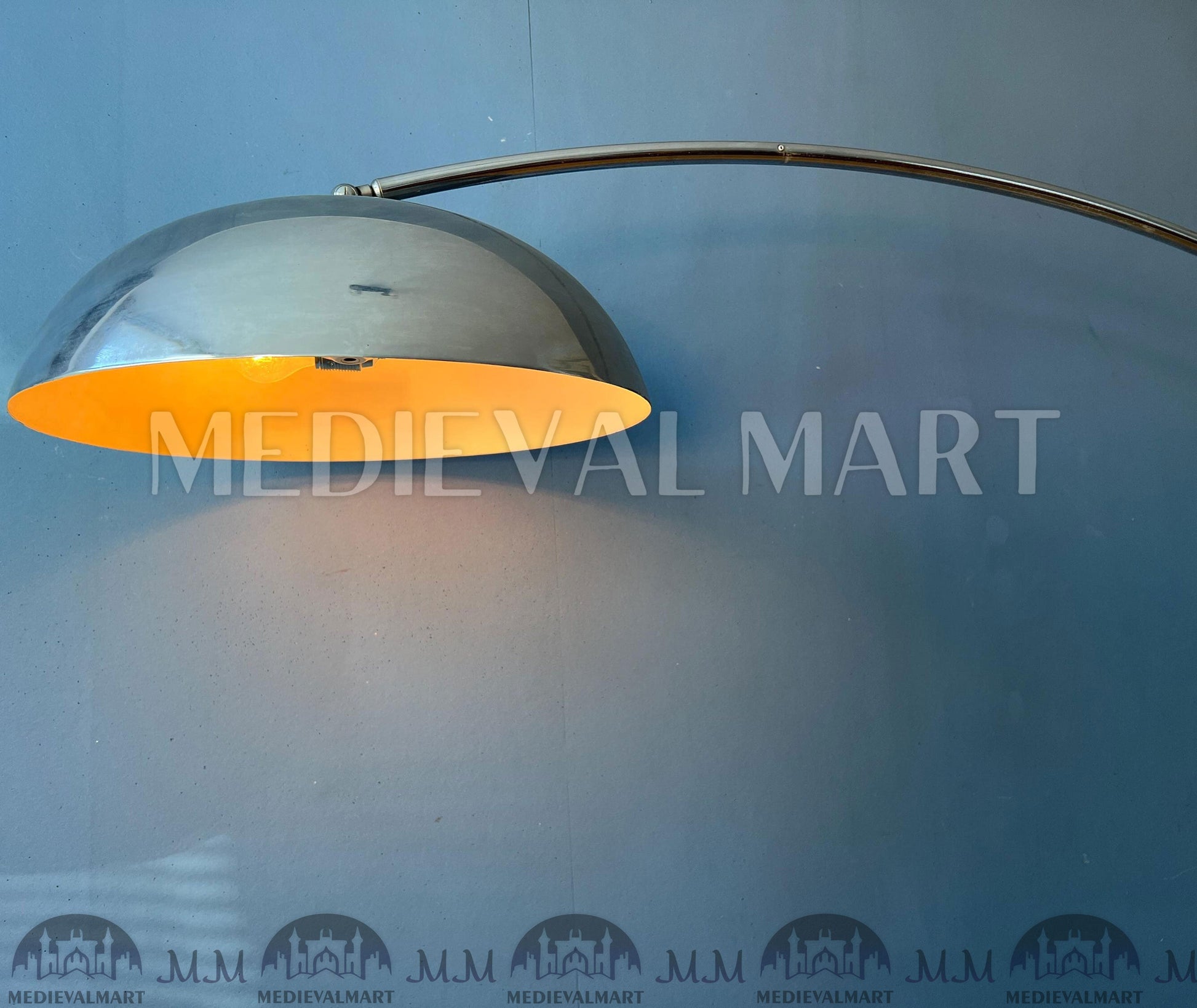 Sublimez votre intérieur avec le lampadaire arc vintage italien Space Age MEDIEVALMART, un remarquable exemple du design moderniste des années 1970. Ce luminaire se distingue par sa structure arquée en chrome associée à un élégant abat-jour métallique en forme de dôme, incarnant parfaitement l’esprit innovant de l’éclairage italien Space Age.