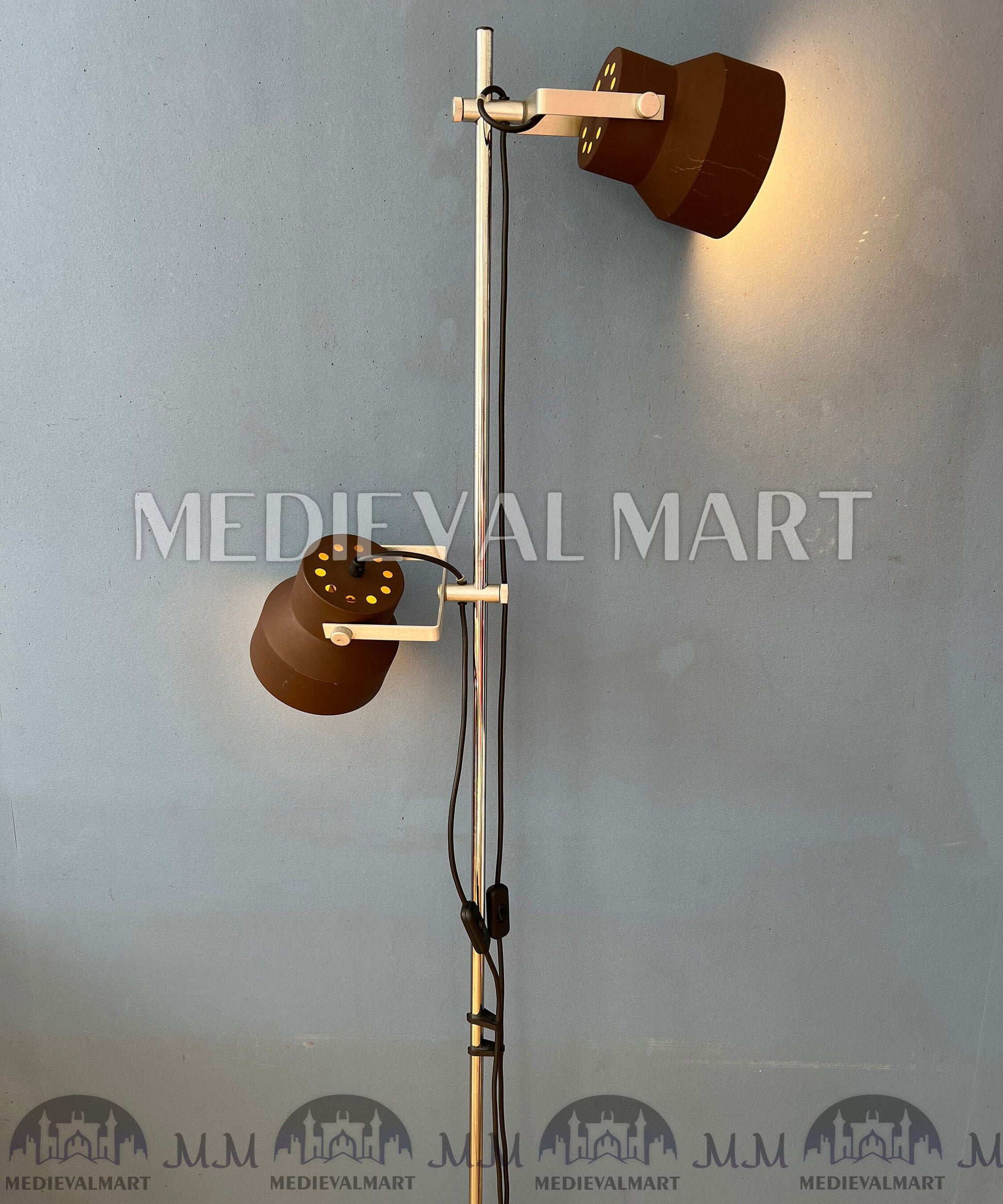 Plongez dans l’élégance futuriste des années 1970 avec le lampadaire vintage Space Age marron Dijkstra MEDIEVALMART, un véritable classique du design moderne néerlandais. Doté d’un abat-jour en forme de dôme marron brillant, d’une tige chromée réglable et d’une base circulaire lestée, ce lampadaire incarne parfaitement l’esthétique minimaliste et avant-gardiste emblématique du style Dijkstra.