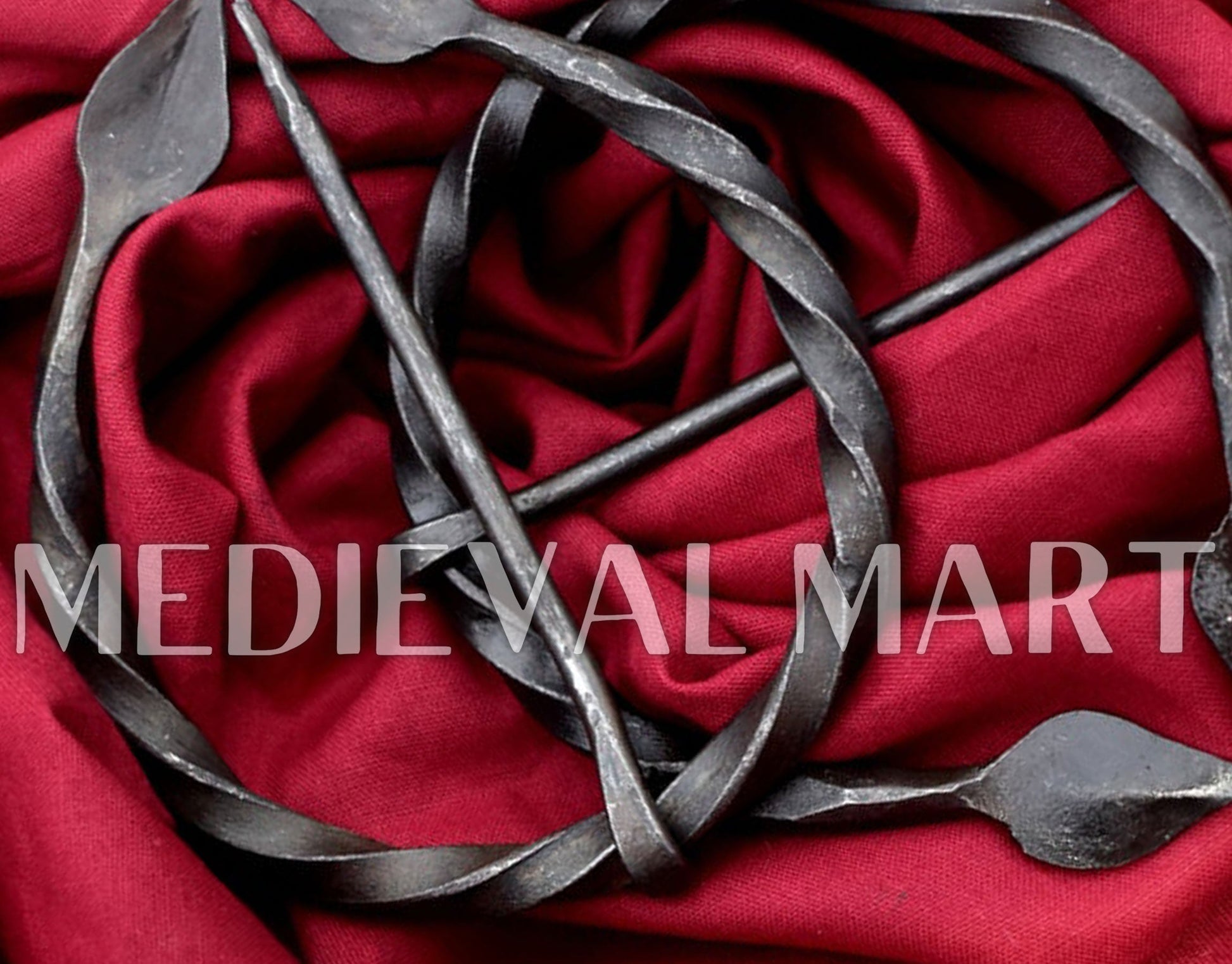 Le lot de 2 broches vikings médiévales MEDIEVALMART, au motif feuille, est une création artisanale inspirée de l’esthétique nordique et des traditions scandinaves anciennes. Forgées à la main selon des techniques de forge traditionnelles, ces broches reflètent la force, la nature et l’élégance symbolique propres à l’art viking.