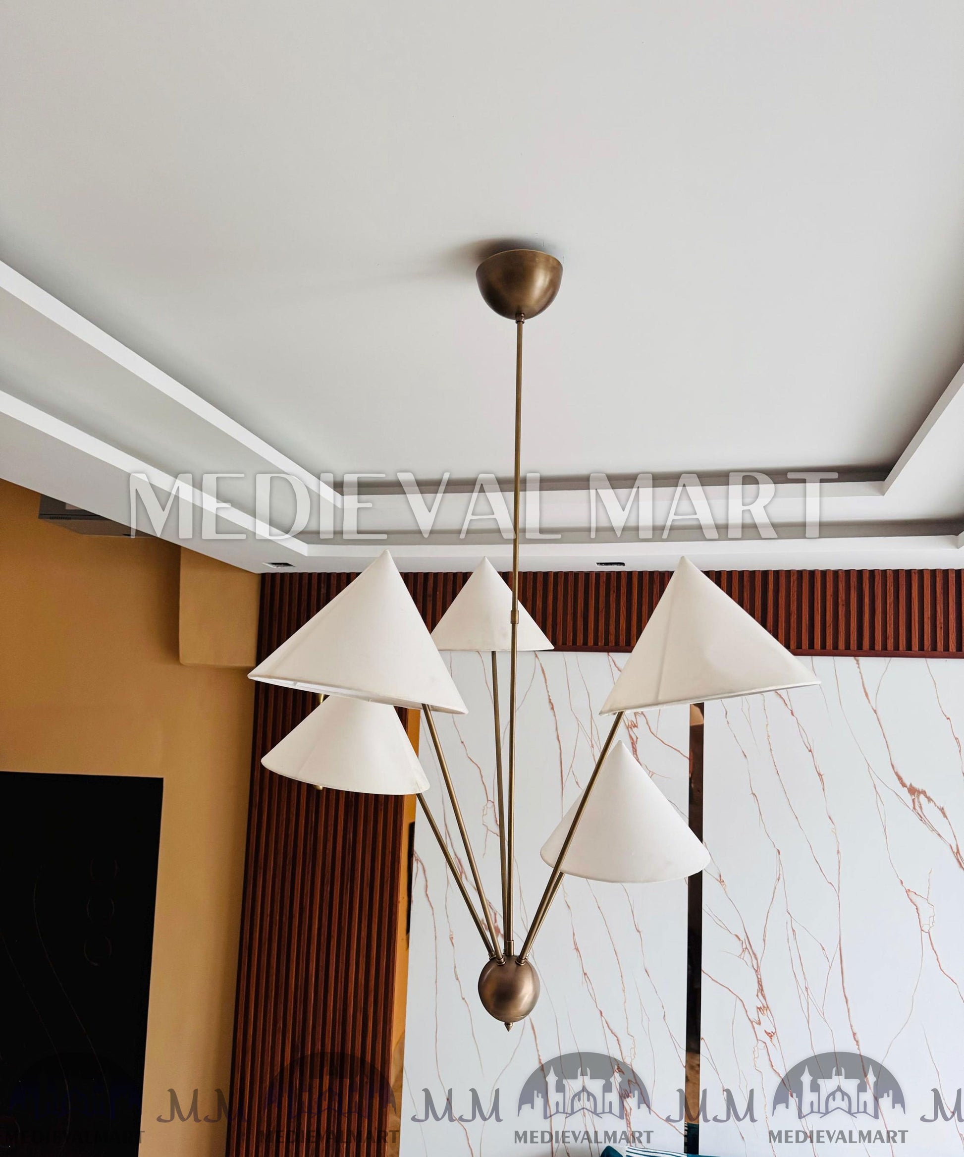 Apportez une sophistication intemporelle à votre intérieur avec le lustre Sputnik en laiton fabriqué à la main MEDIEVALMART. Inspiré par la géométrie audacieuse du design mid-century modern, ce remarquable lustre à 5 bras associe un savoir-faire en laiton massif à des abat-jour en lin raffinés, créant un équilibre parfait entre chaleur et élégance contemporaine.