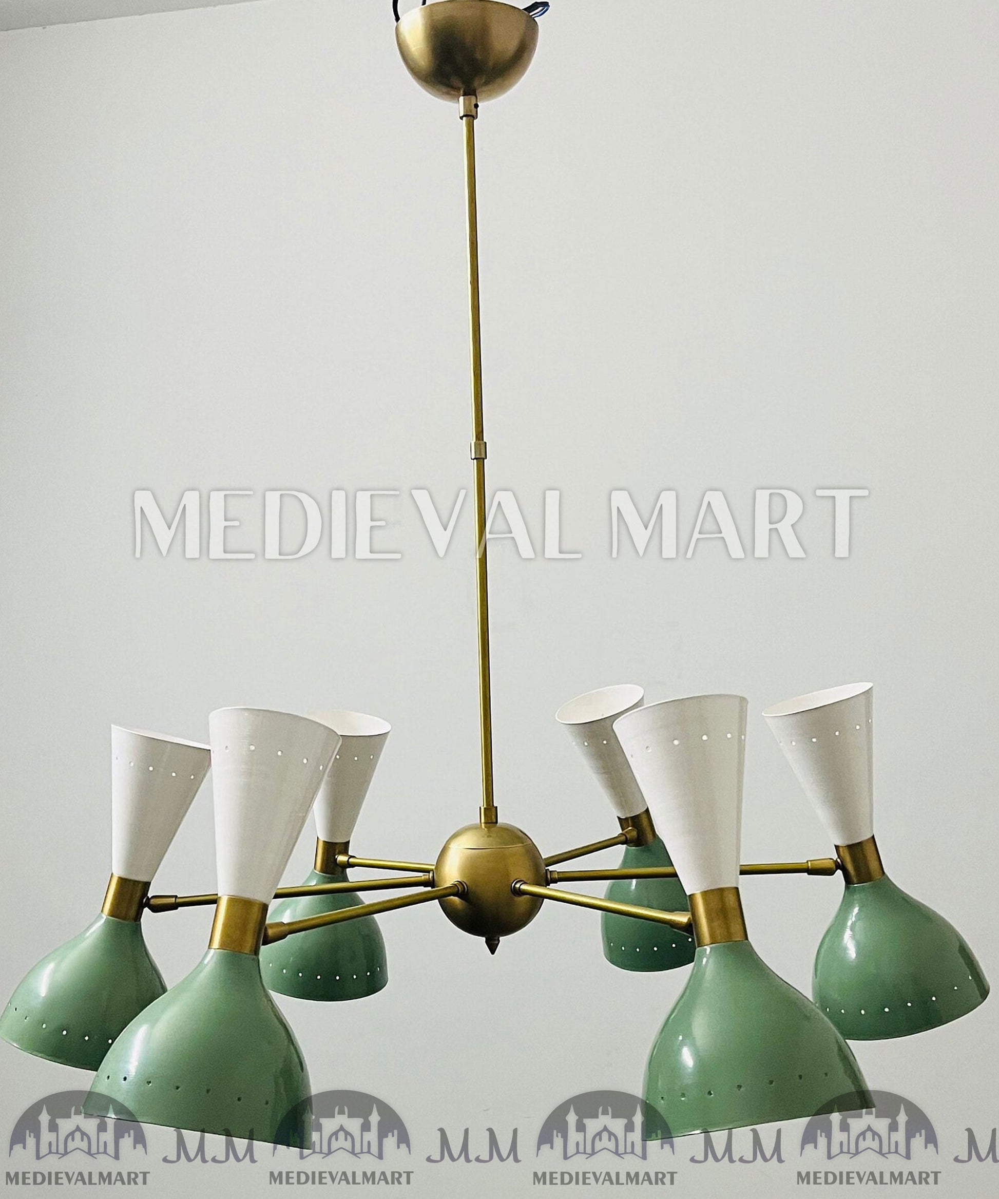 Illuminez vos intérieurs avec une élégance intemporelle grâce au lustre Sputnik en laiton style Stilnovo MEDIEVALMART. Conçu dans le pur esprit Mid-Century Modern, ce chef-d’œuvre fabriqué à la main se compose de 6 bras sculpturaux en laiton supportant 12 points lumineux, offrant une composition audacieuse et parfaitement équilibrée de symétrie et de sophistication.